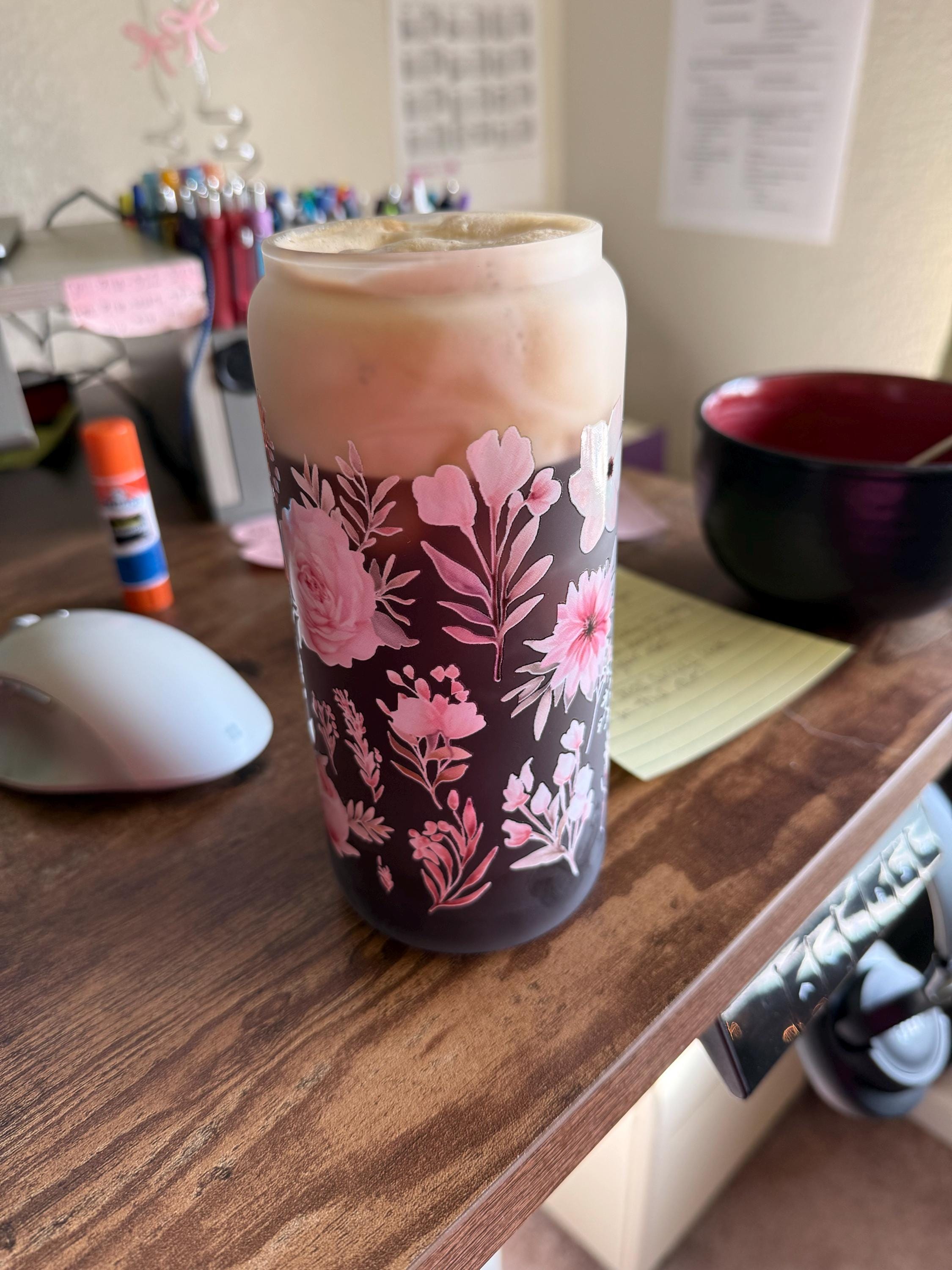This design is so beautiful in person. I bought it hoping to help me drink more water and so far I drink everything from it. I love looking at it on me desk! 💕