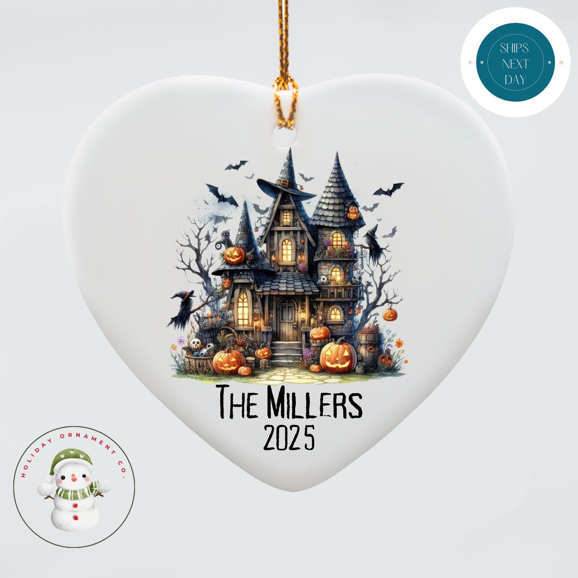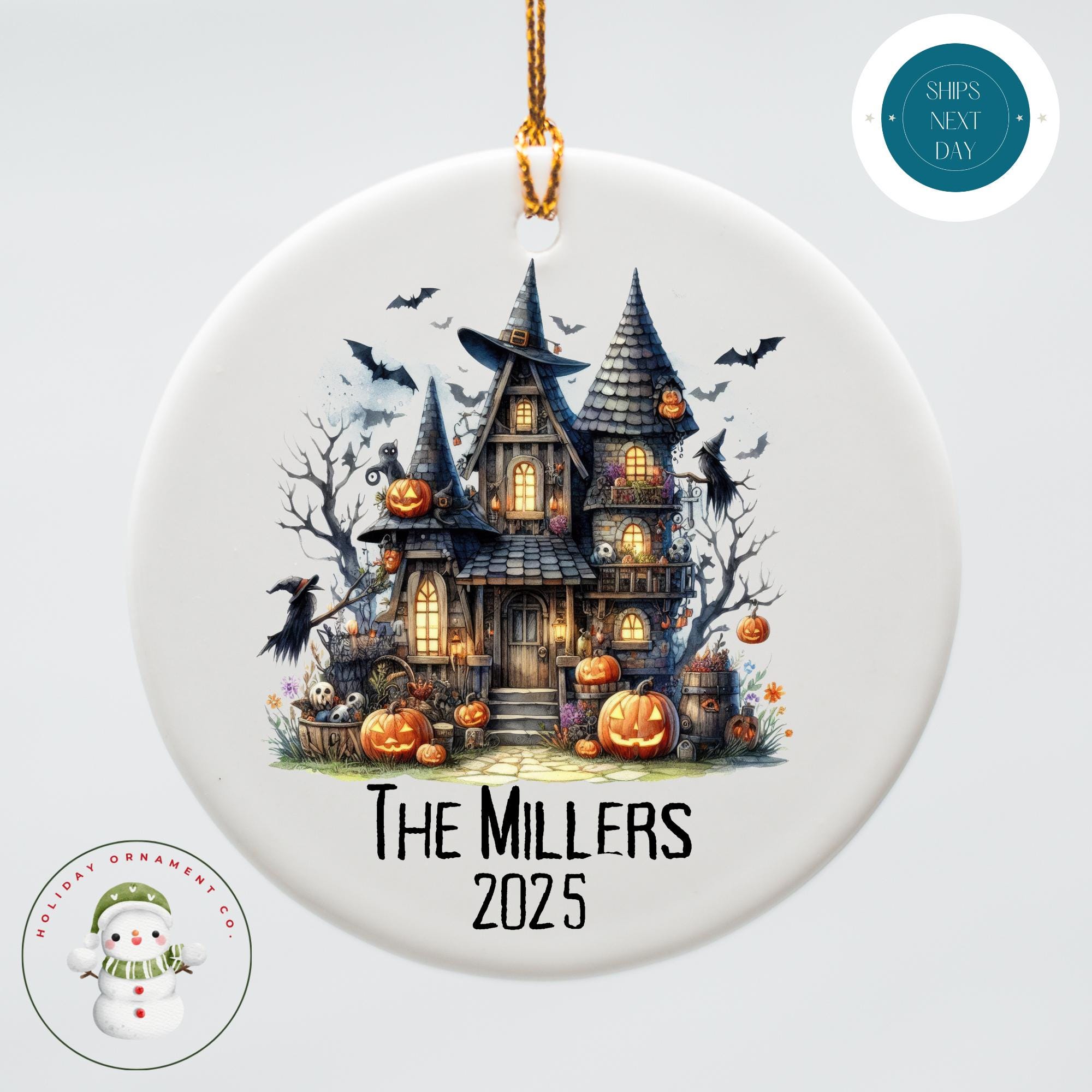 Personalized Family Name Halloween Ceramic Ornament | Haunted House