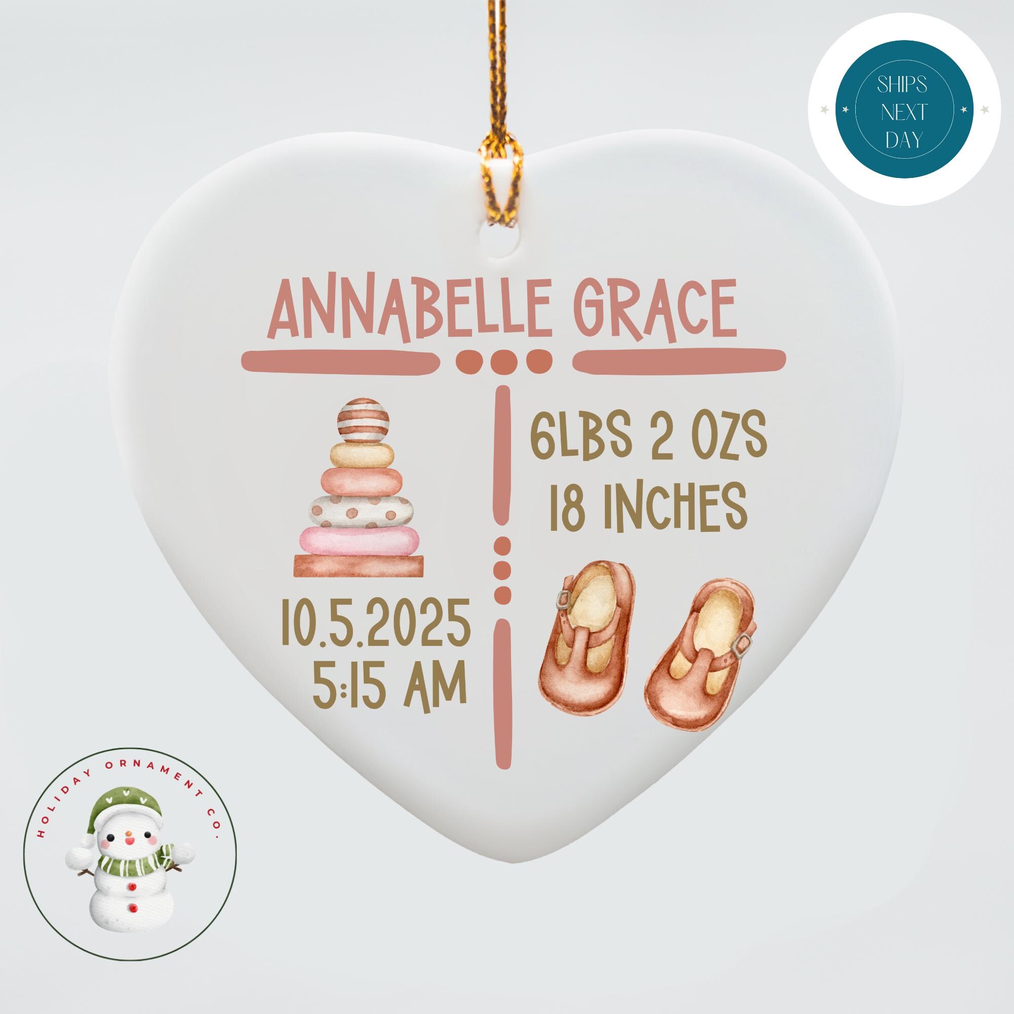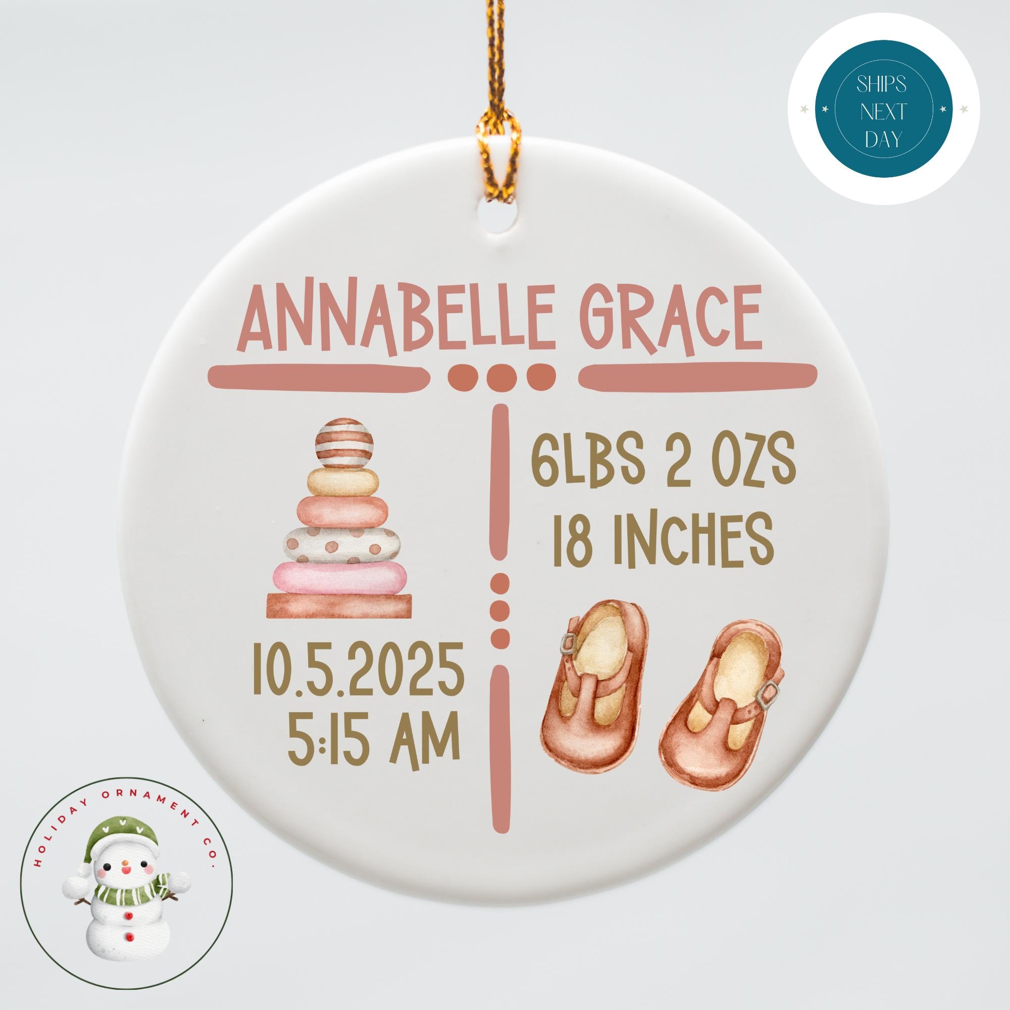 Watercolor Baby Birth Announcement Ornament: Personalized New Parent Gift