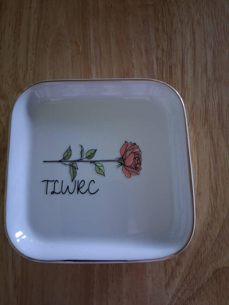 🎄This Custom designed trinket ceramic dish is beautifully crafted and personalized. It will arrive safely wrapped in its own white box. Choose from square, round or heart, each has a gold edge.