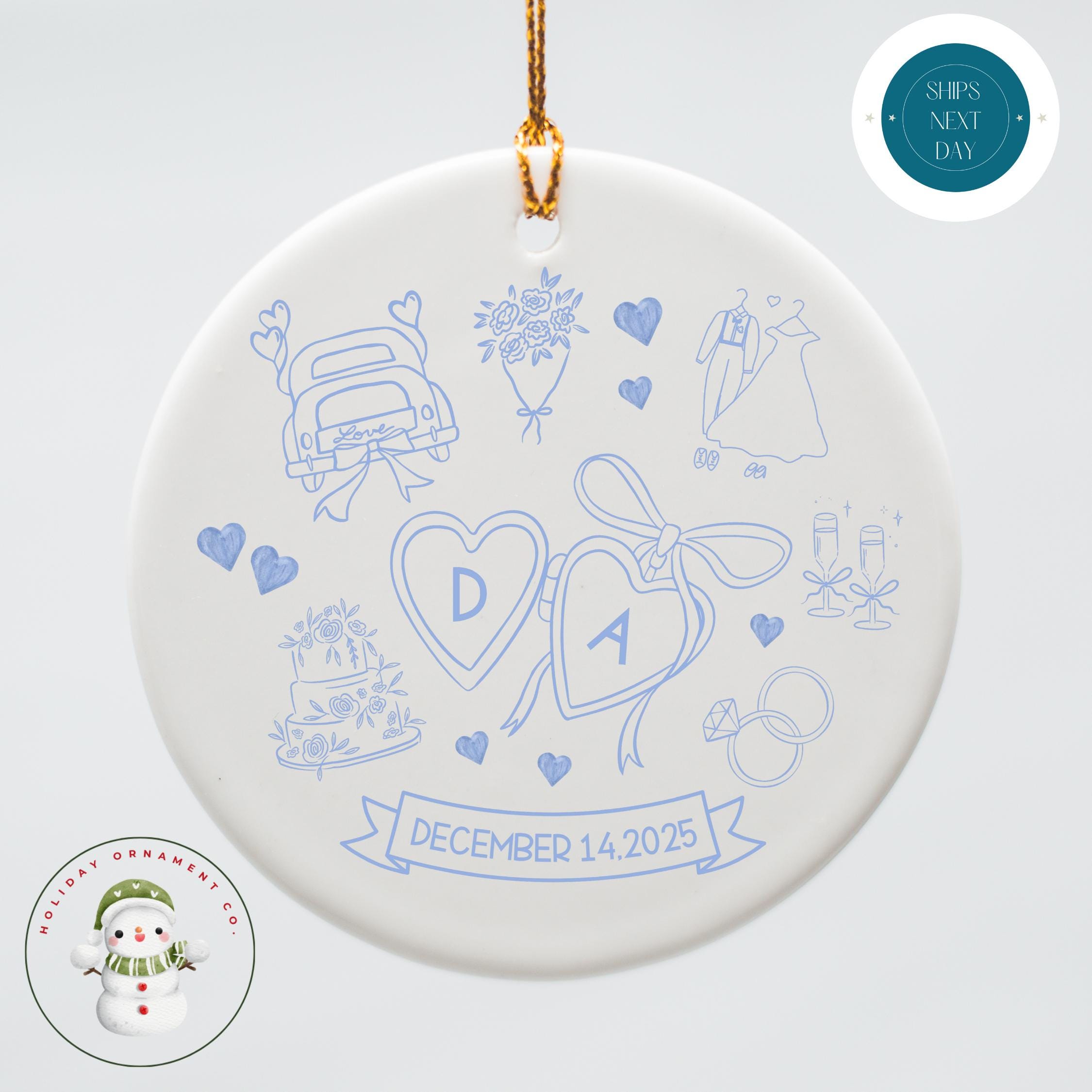 Personalized Wedding Christmas Ornament: Something Blue Ceramic Gift