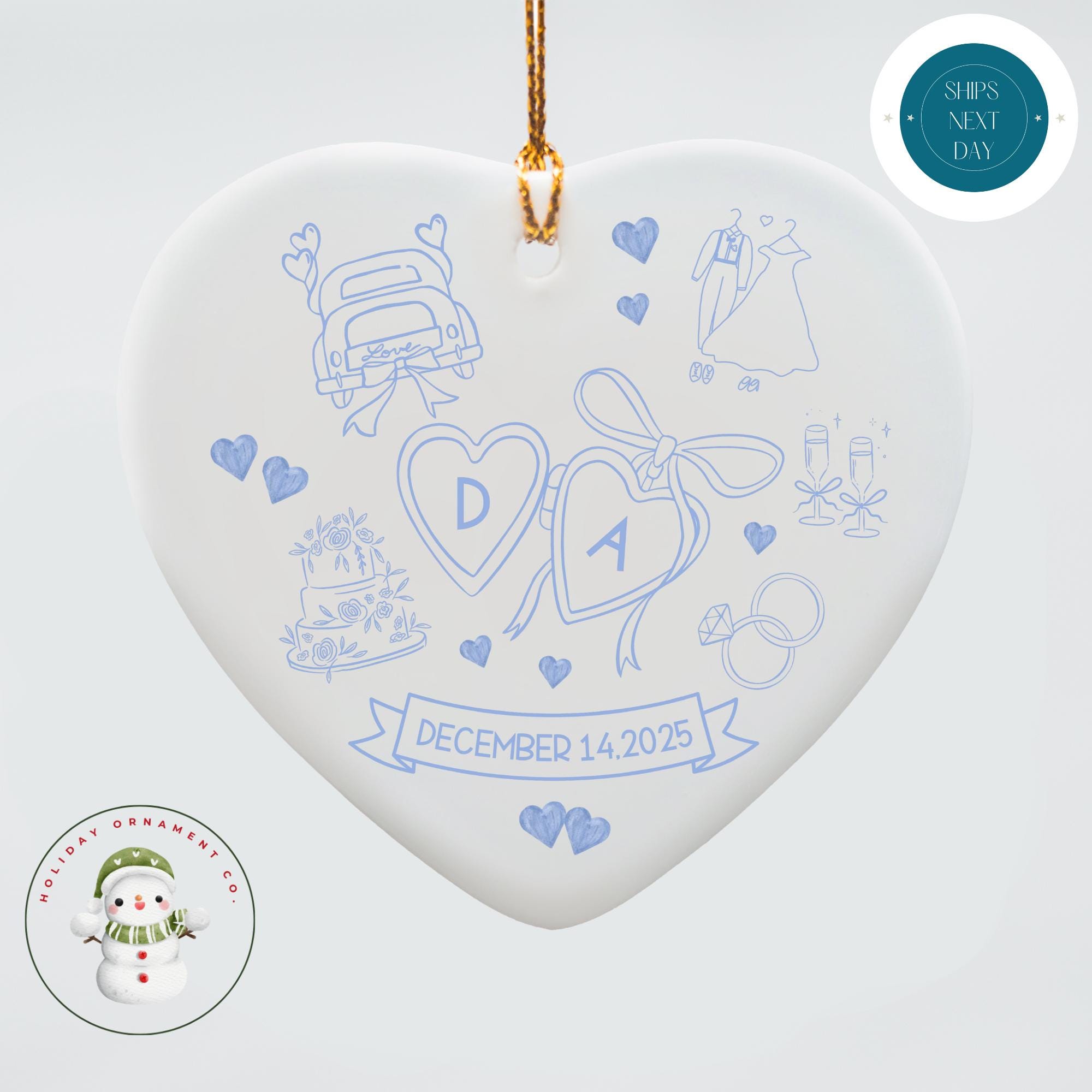 Personalized Wedding Ornament: Ceramic Heart, Something Blue, Couples Gift