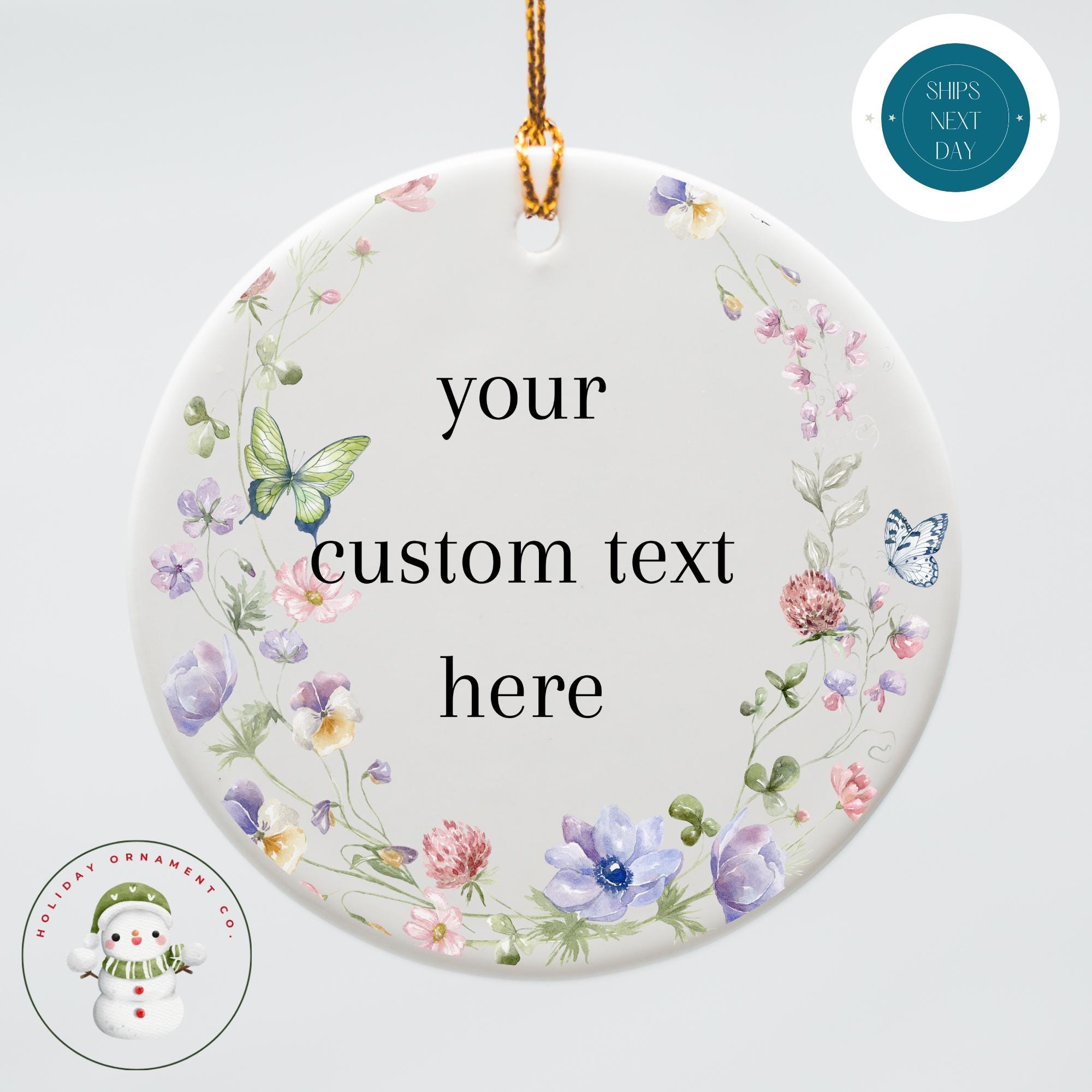 Custom Wildflower Ceramic Christmas Ornament: Personalized Text