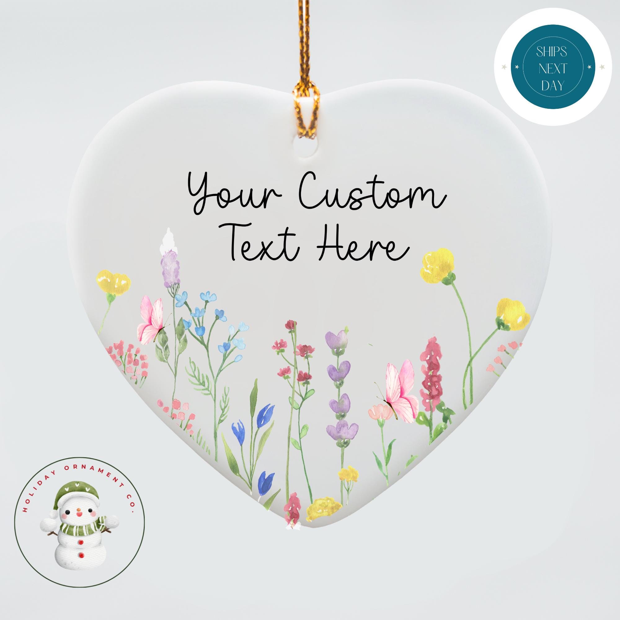 Personalized Your Custom Text Wildflower Butterfly Heart Ornament: Custom Ceramic Ornament Gift