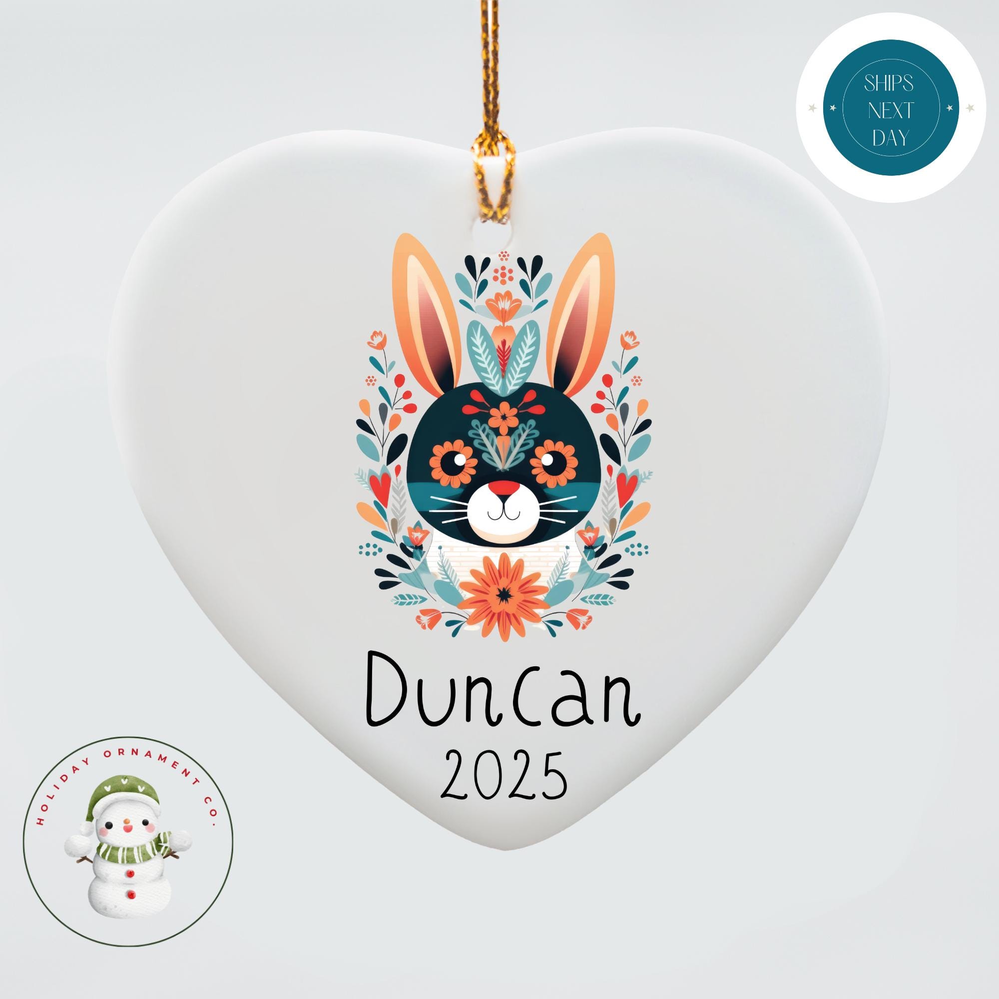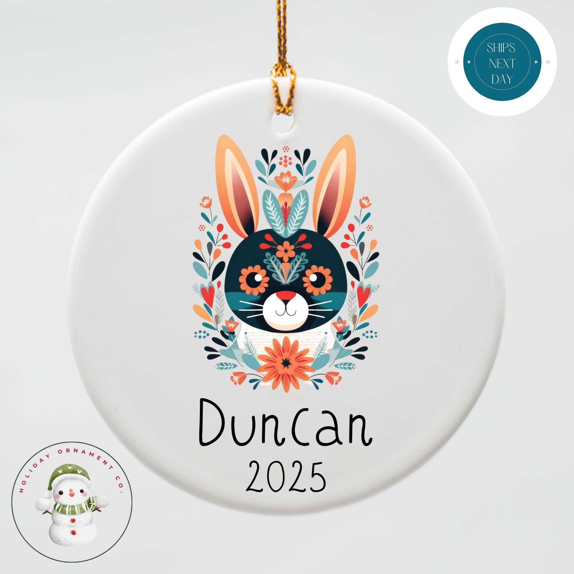 Personalized Scandinavian Bunny Christmas Ornament | Boho Holiday Ornament
