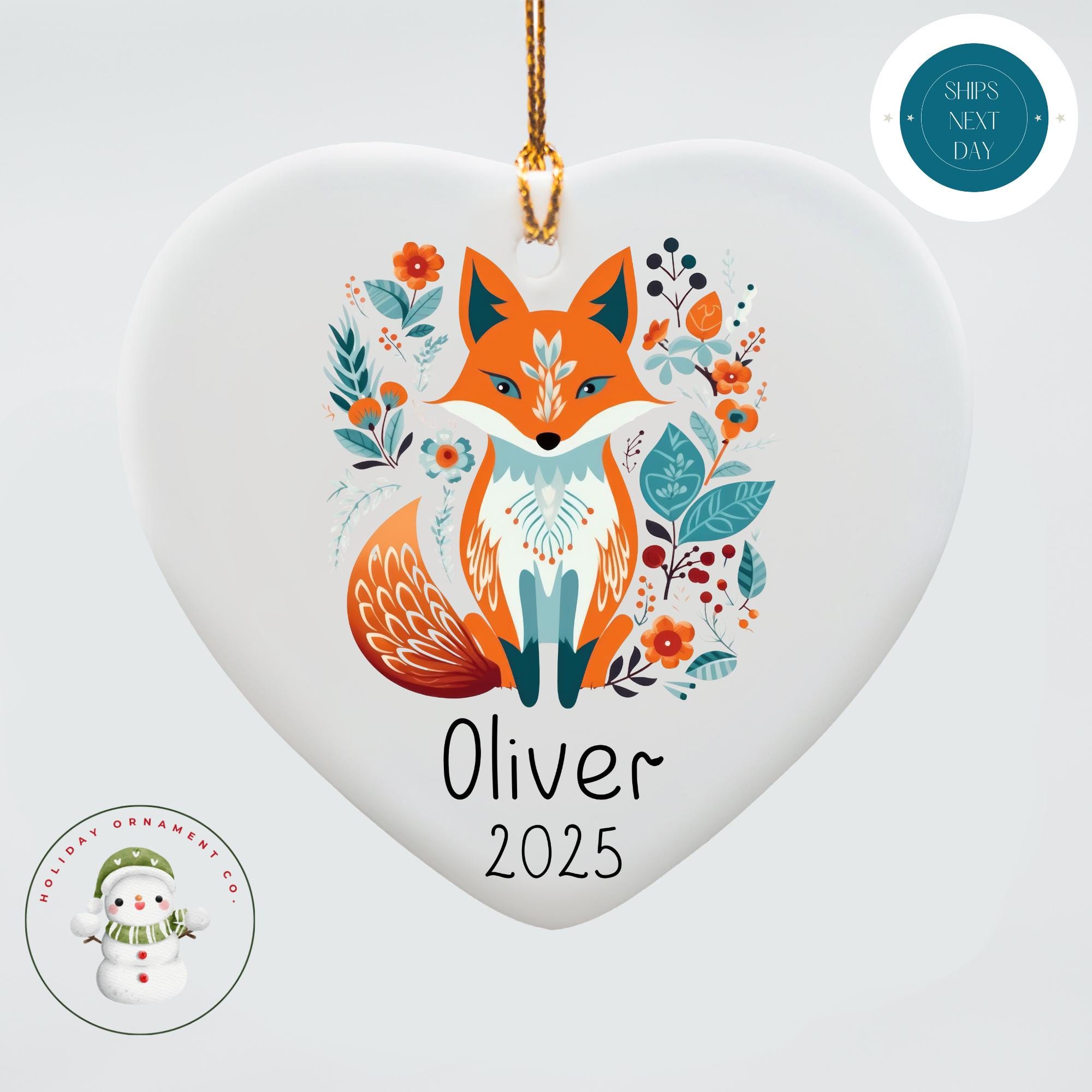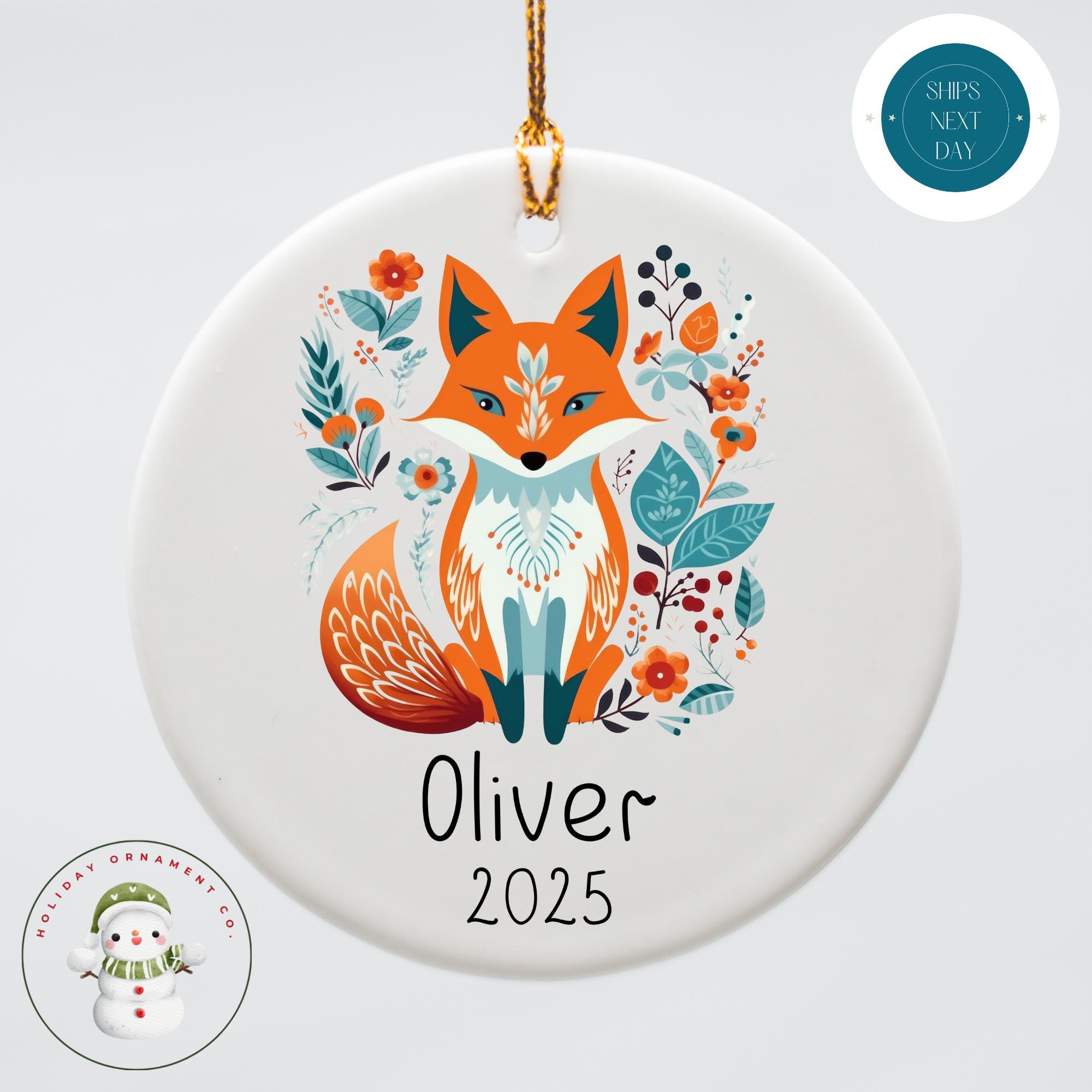 Personalized Scandinavian Fox Christmas Ornament | Boho Holiday Ornament
