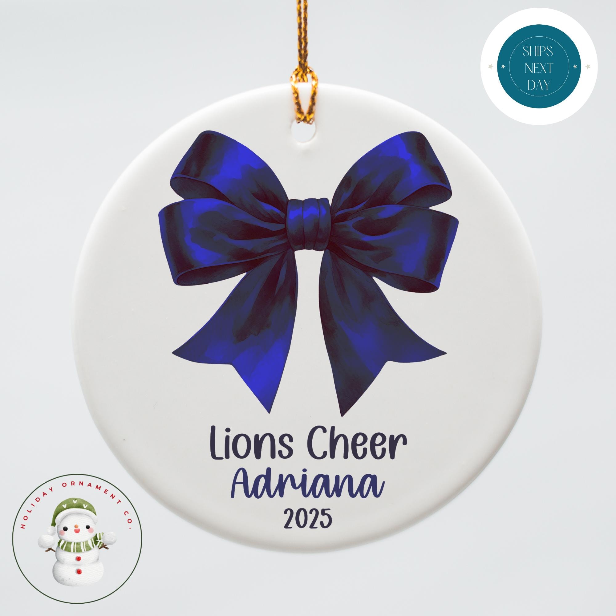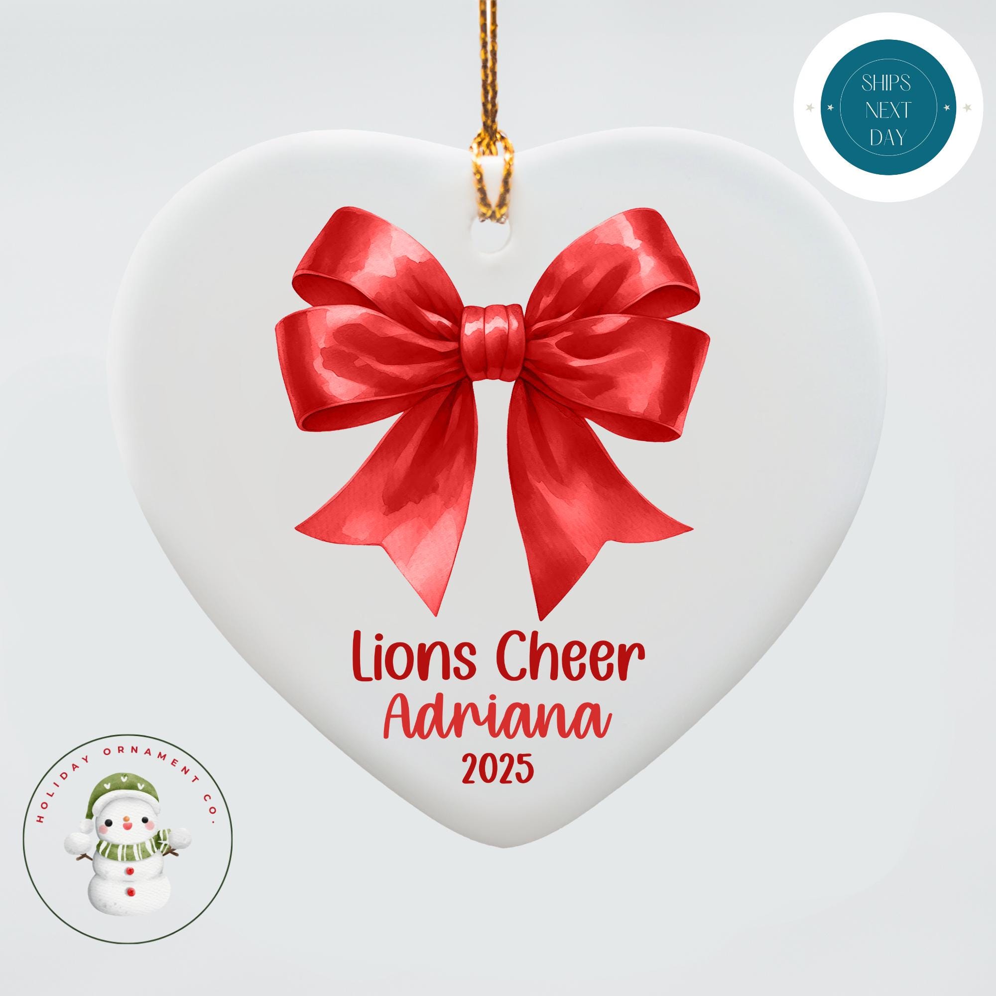 Personalized Cheer Bow Christmas Ornament | Cheerleading Team Ceramic Ornament
