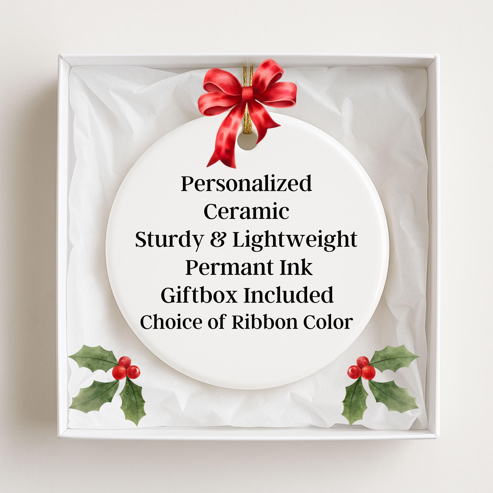 🎄This adorable Custom Made Holiday Ornament is made from ceramic and measures 3" in diameter.