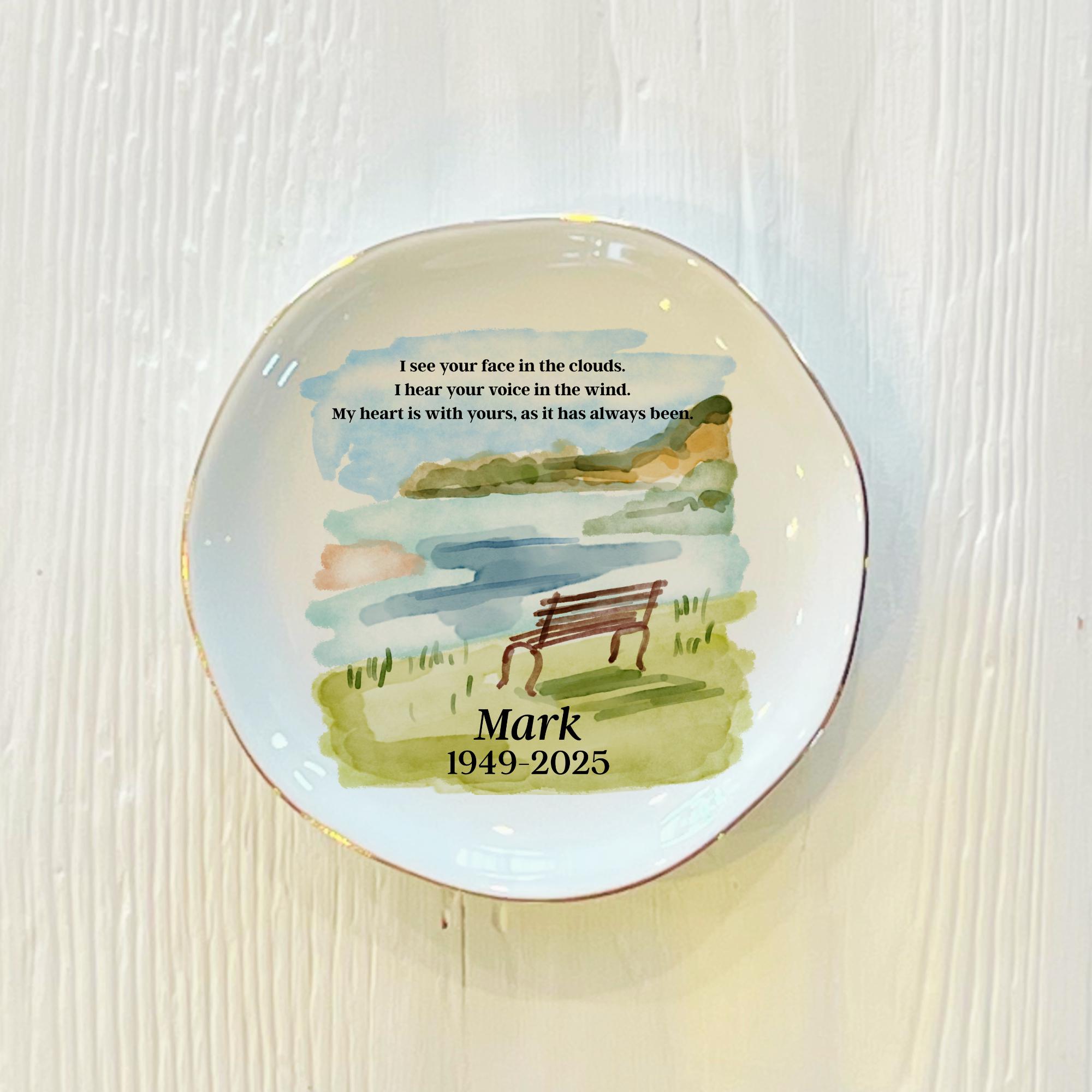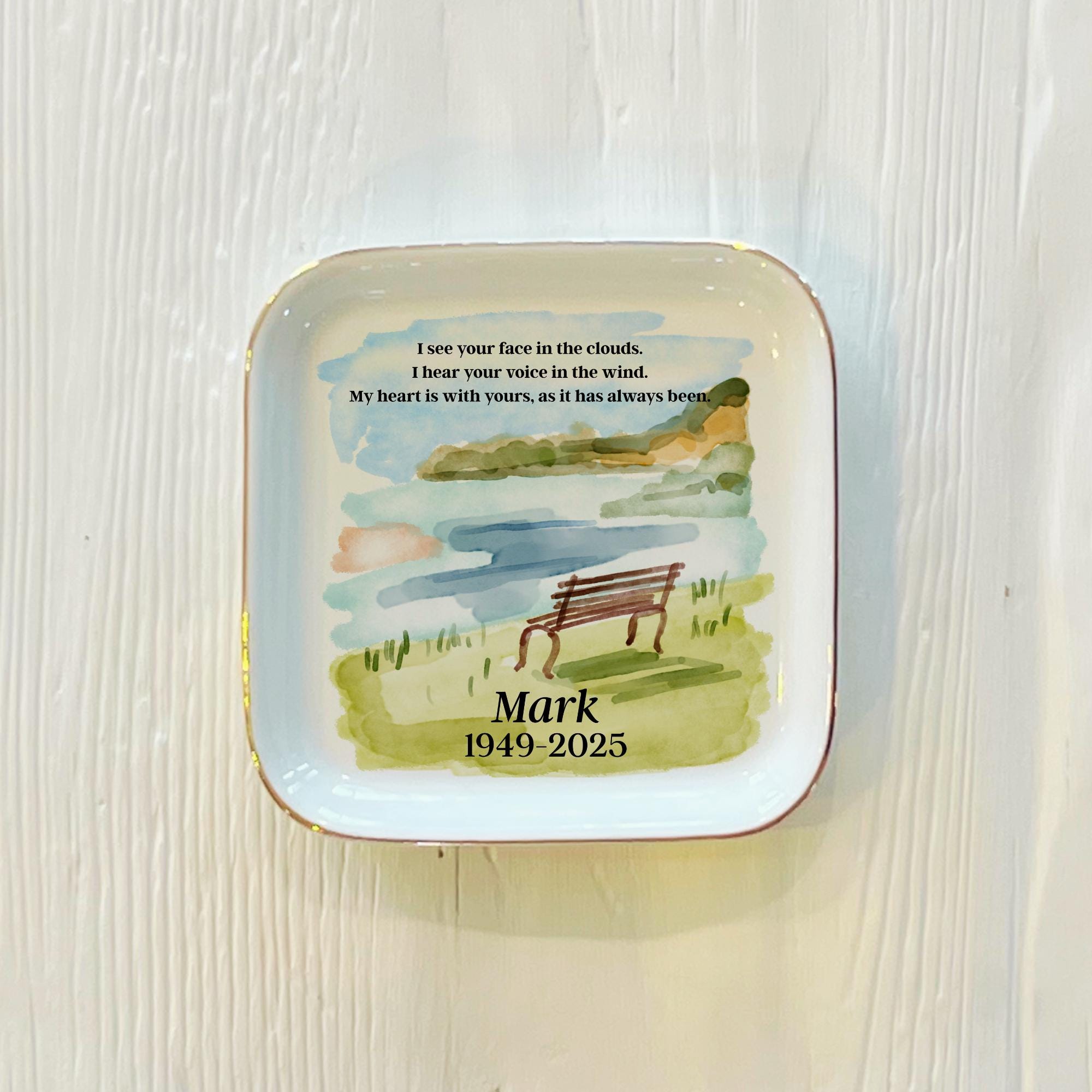 Personalized Watercolor Memorial Trinket Dish: Custom Name & Date Keepsake
