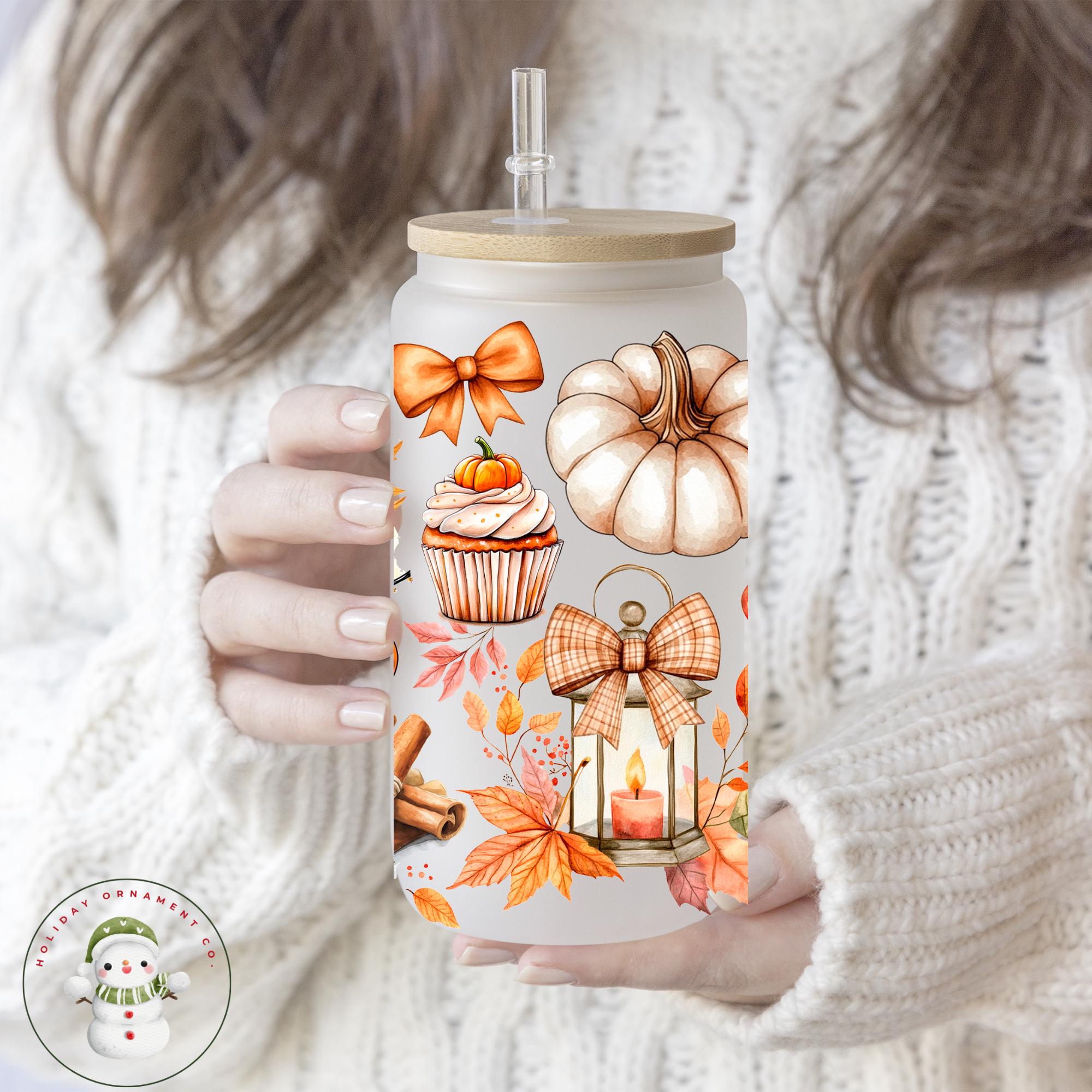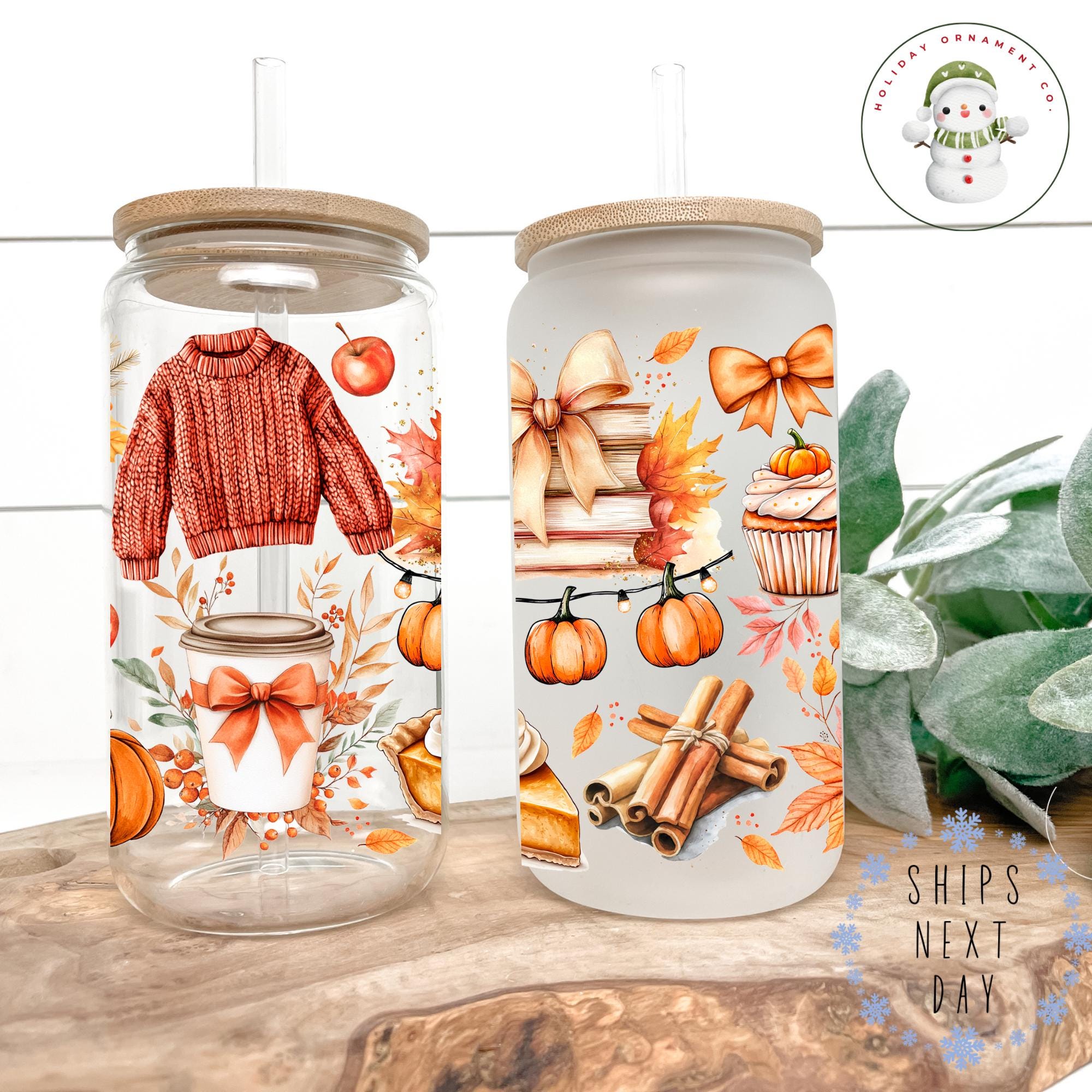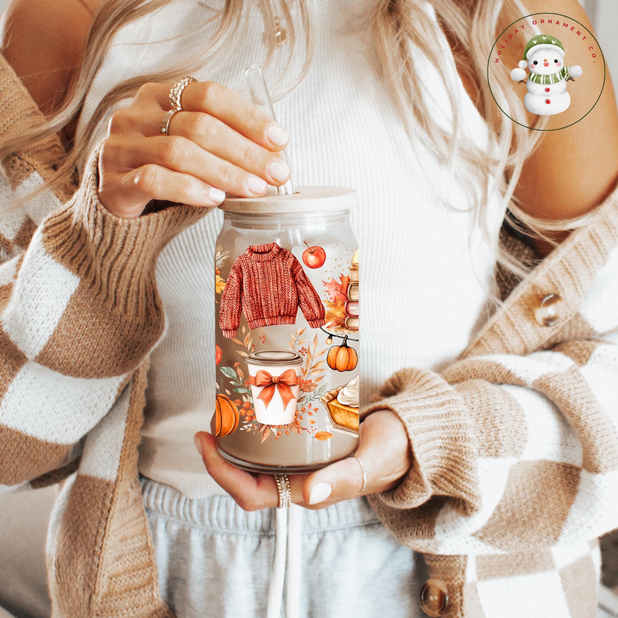 Sweater Weather Libbey Coffee Glass Tumbler: Fall Girly Iced Coffee Cup (16 oz/20 oz)
