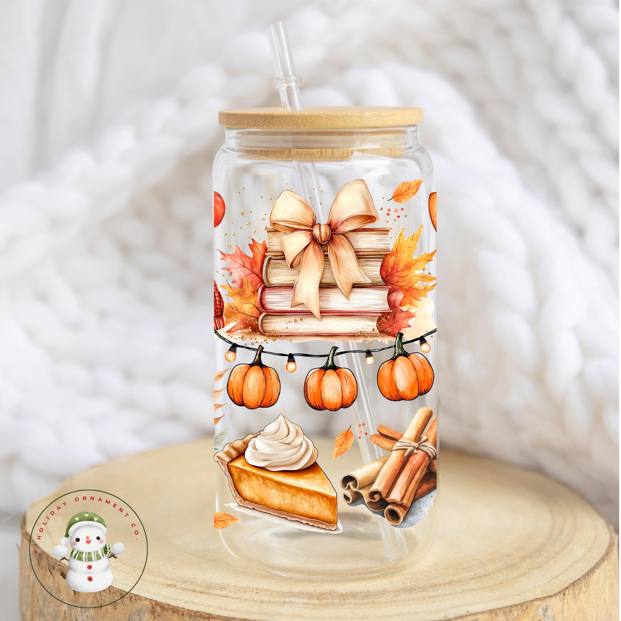🎄This Custom designed glass tumbler cups come in 16 oz and 20 oz and have a bamboo lid and reusable glass straw.
