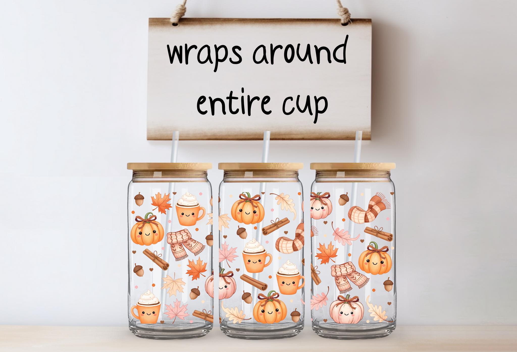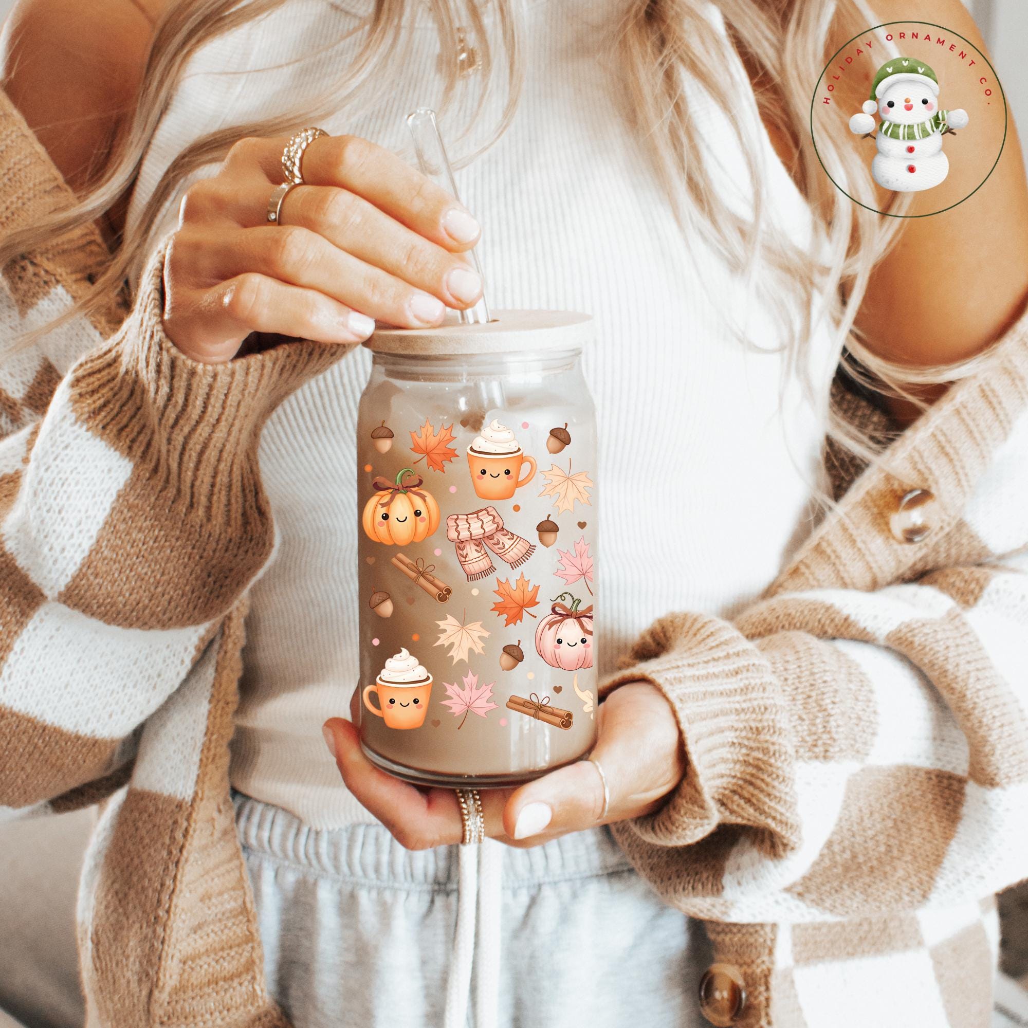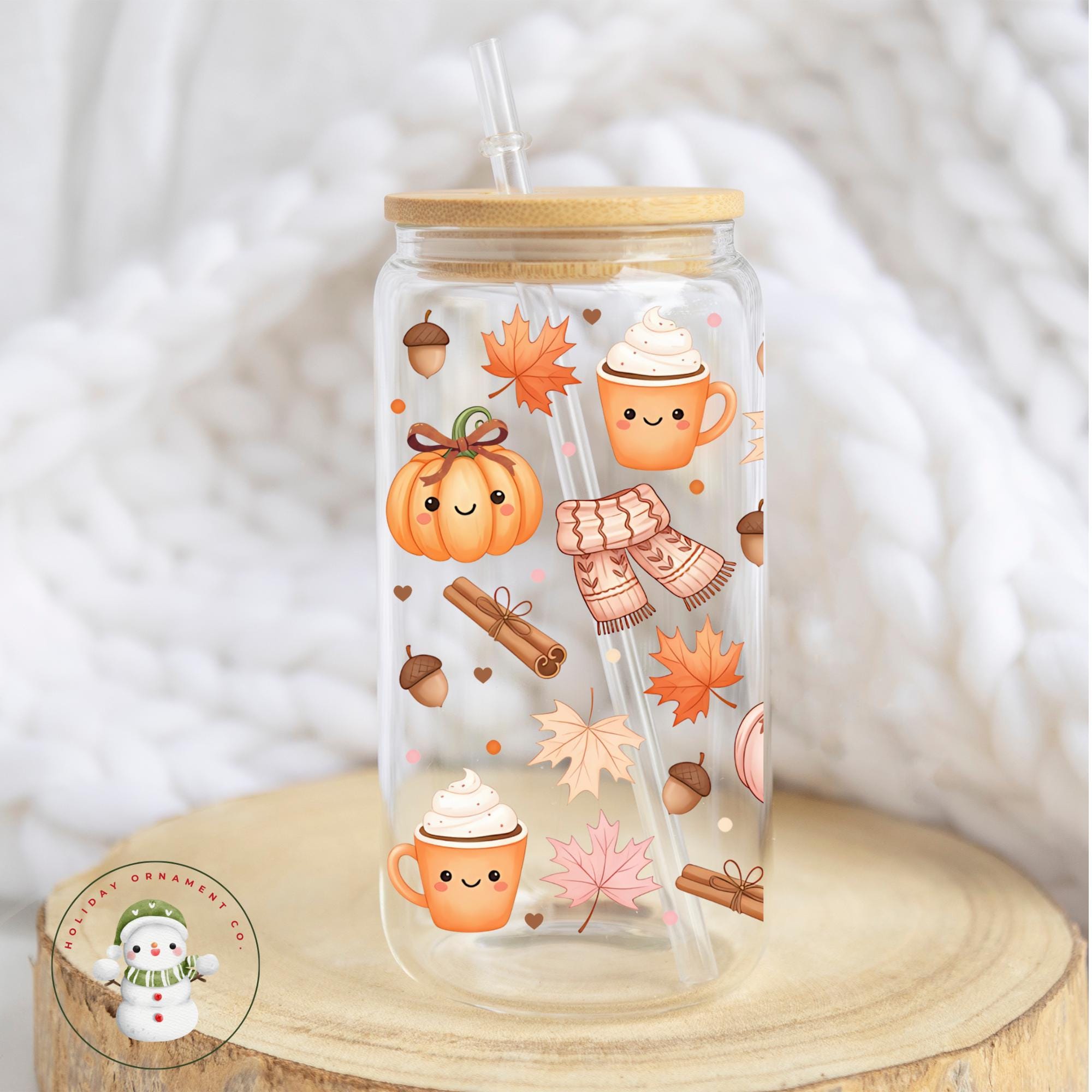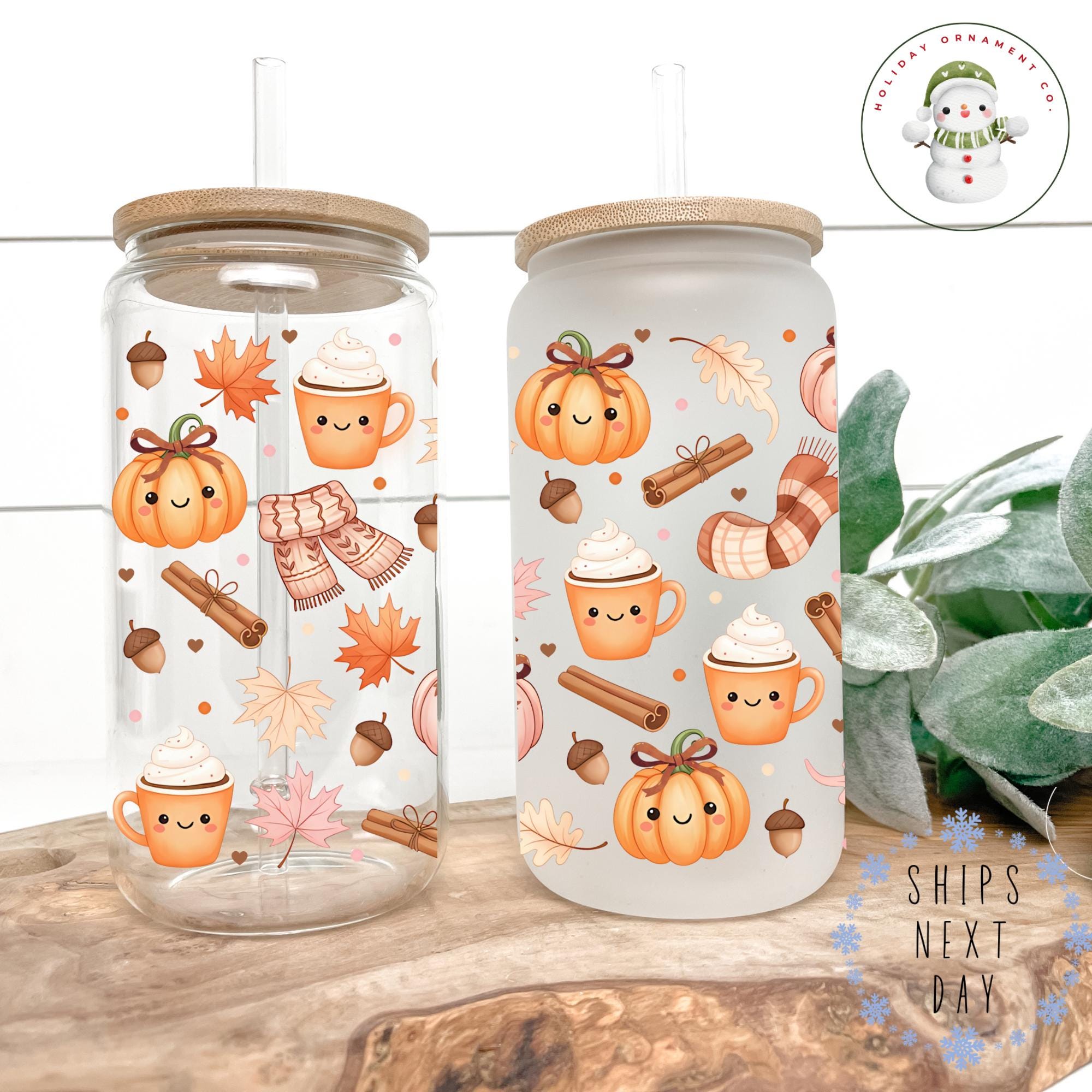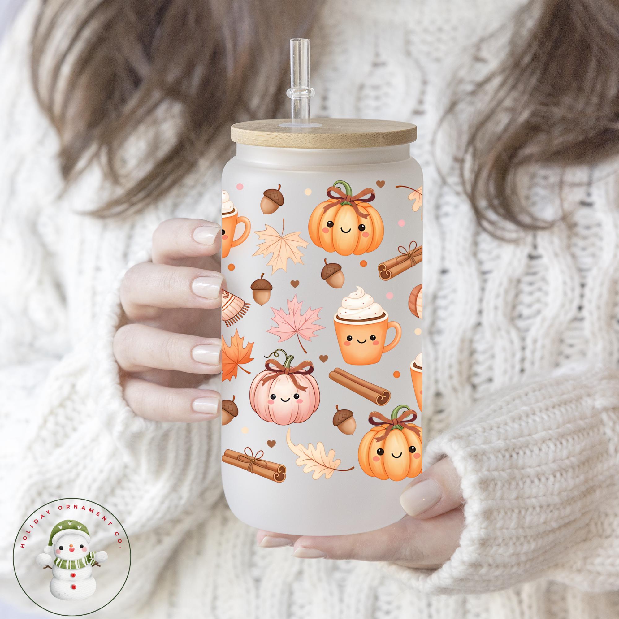 Pumpkin Latte Coffee Glass Tumbler: Kawaii Fall Iced Cup (16oz/20oz)