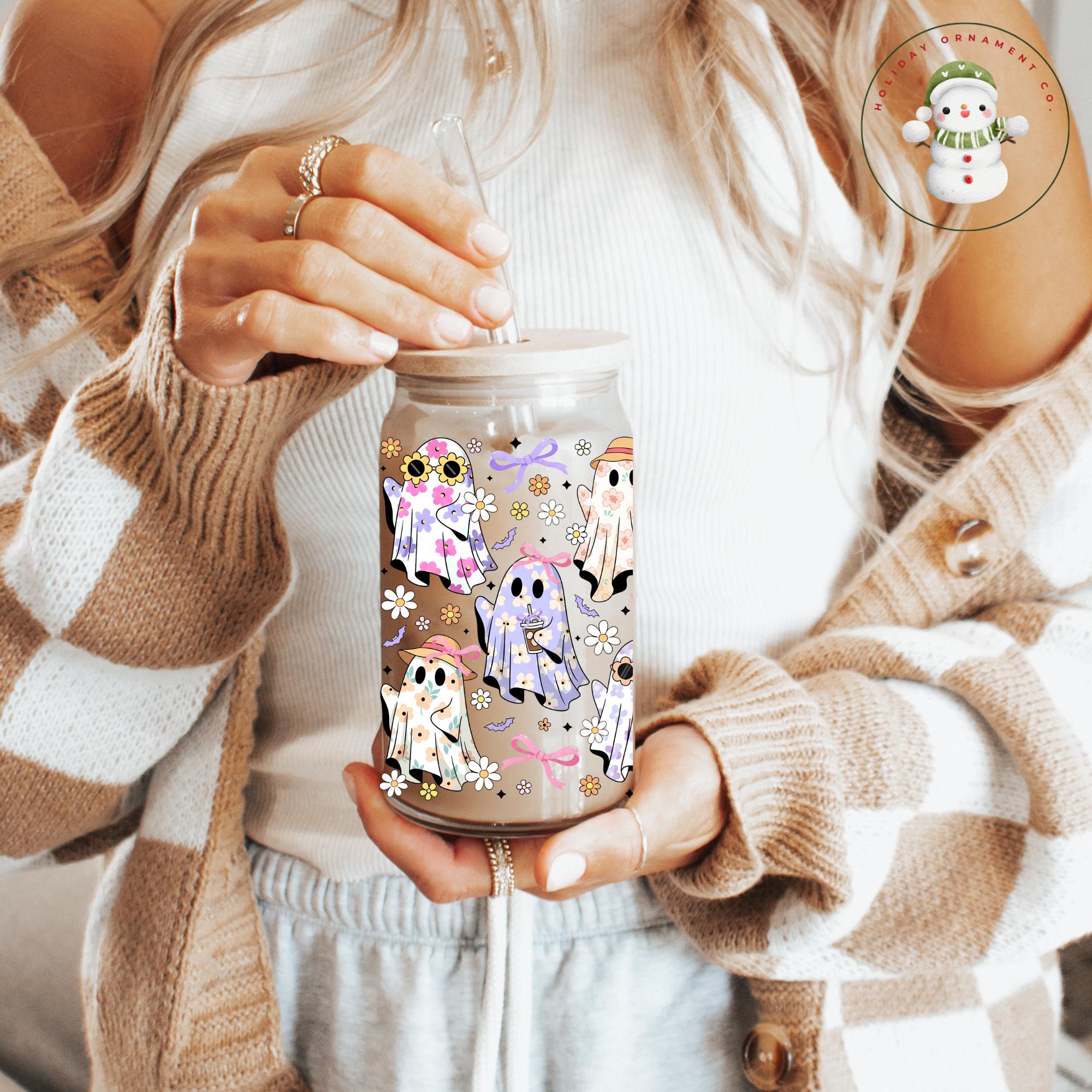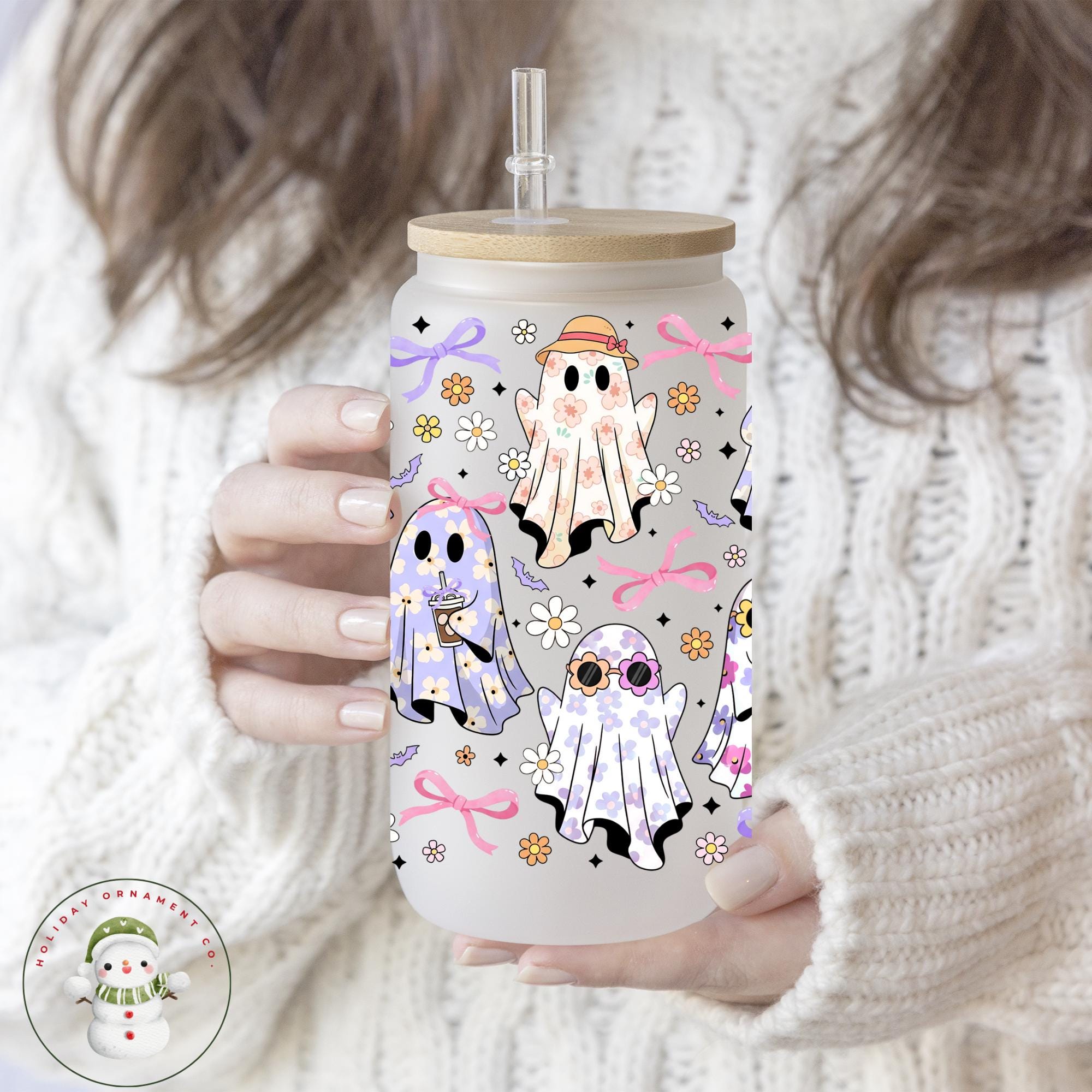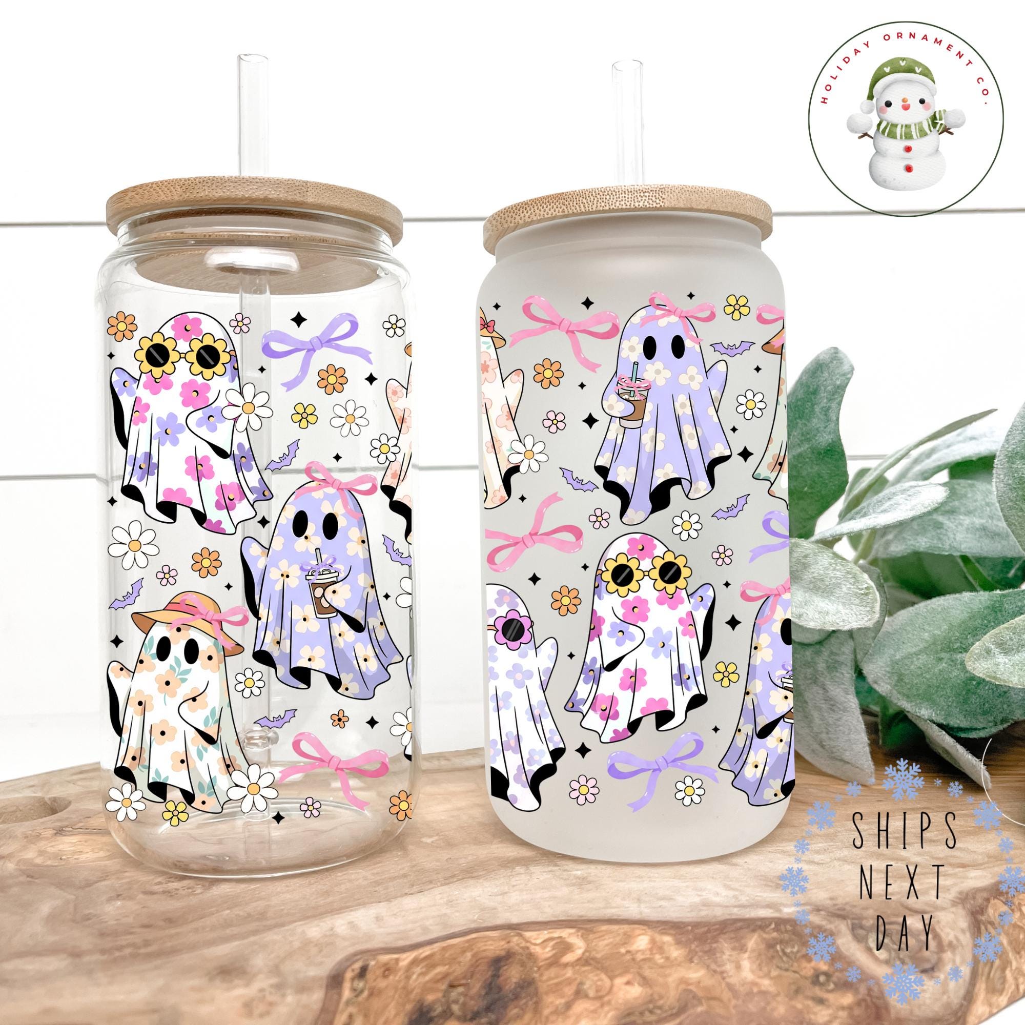 🎄This Custom designed glass tumbler cups come in 16 oz and 20 oz and have a bamboo lid and reusable glass straw.