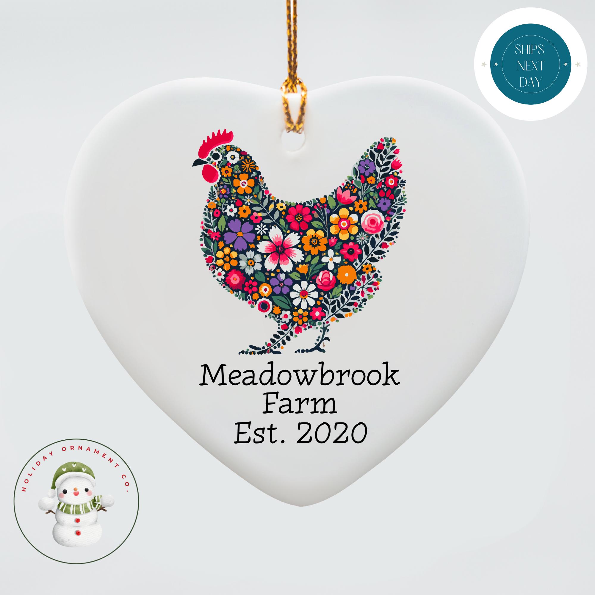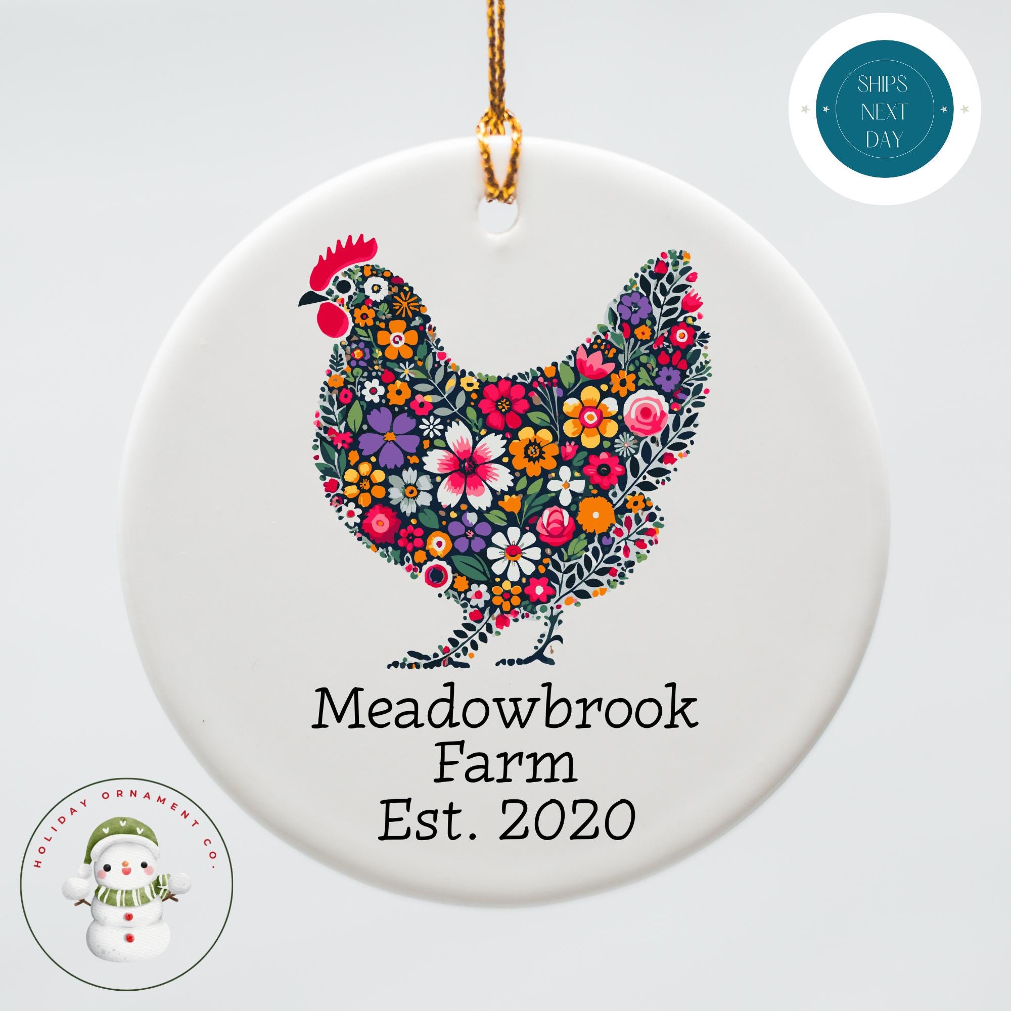 Farm Est Year Chicken Christmas Ornament: Custom Ceramic Keepsake