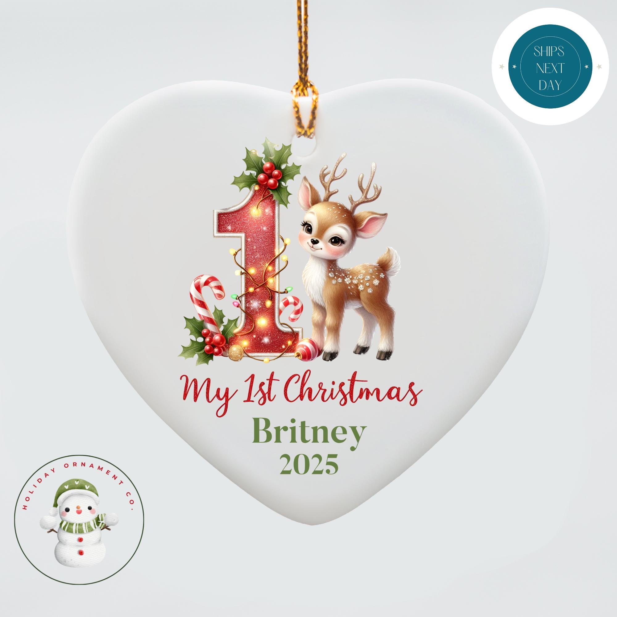 Reindeer Baby's First Christmas Ornament: Custom Ceramic Ornament