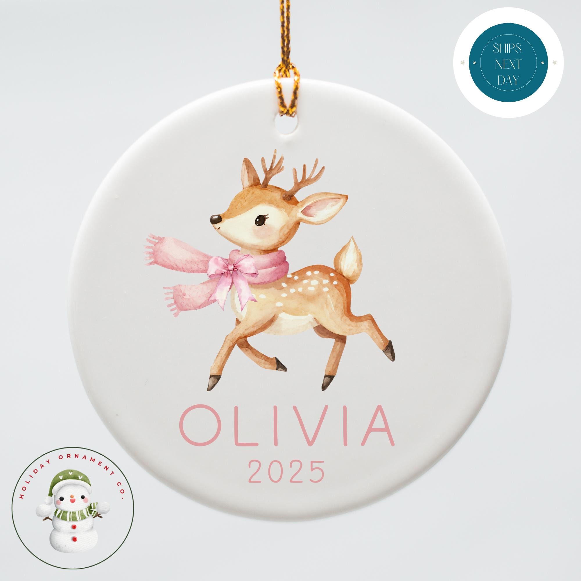 Personalized Reindeer Christmas Ornament: New Baby Keepsake Gift