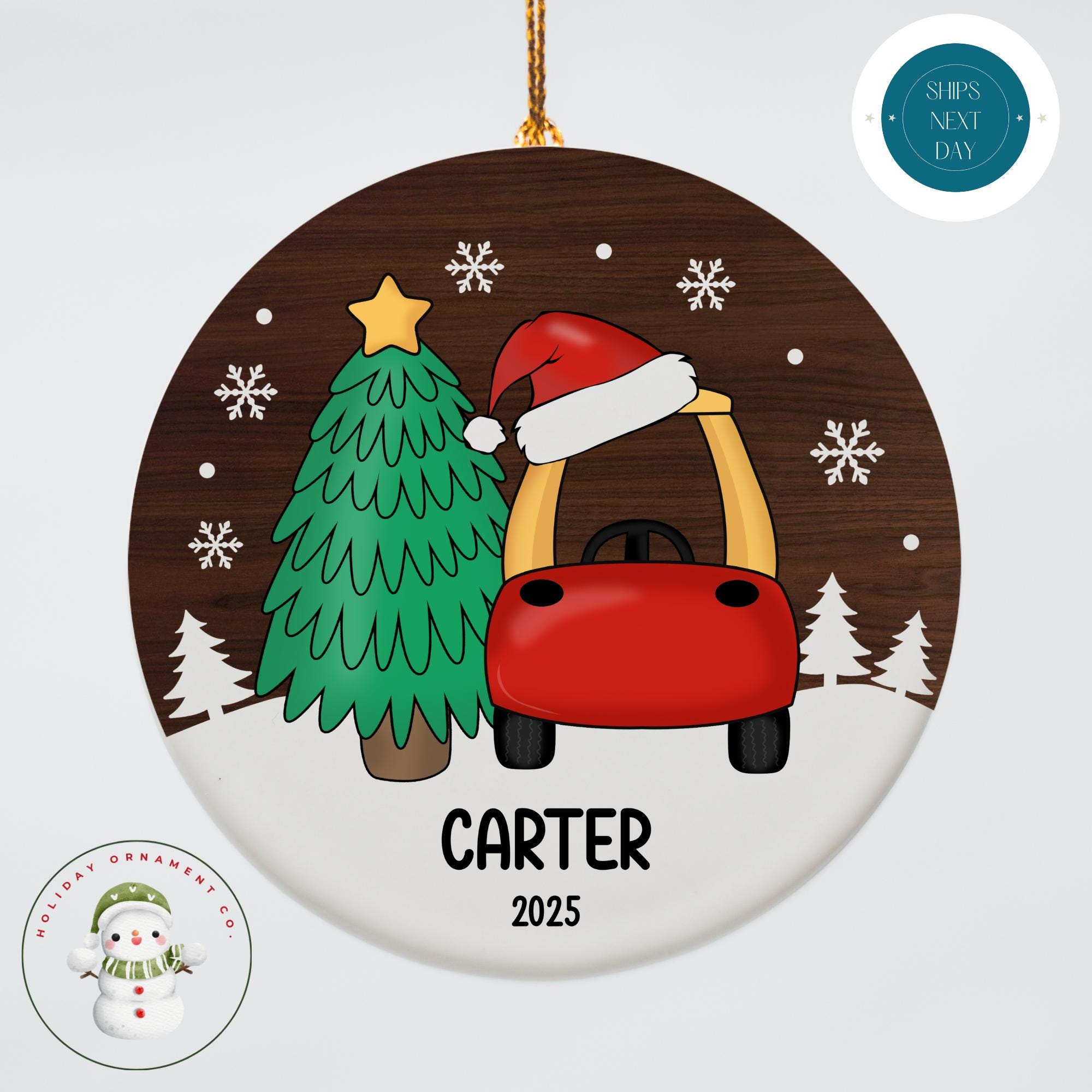 Personalized Cozy Coupe Boys Christmas Ornament | Keepsake Ceramic Holiday Ornament