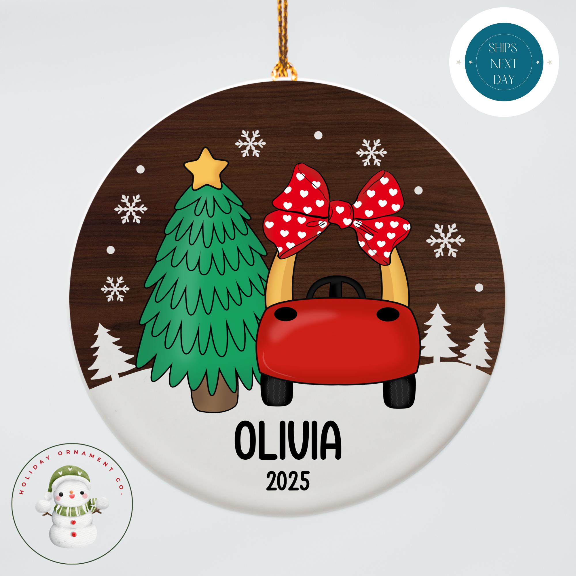 Personalized Cozy Coupe Girls Christmas Ornament | Keepsake Ceramic Holiday Ornament