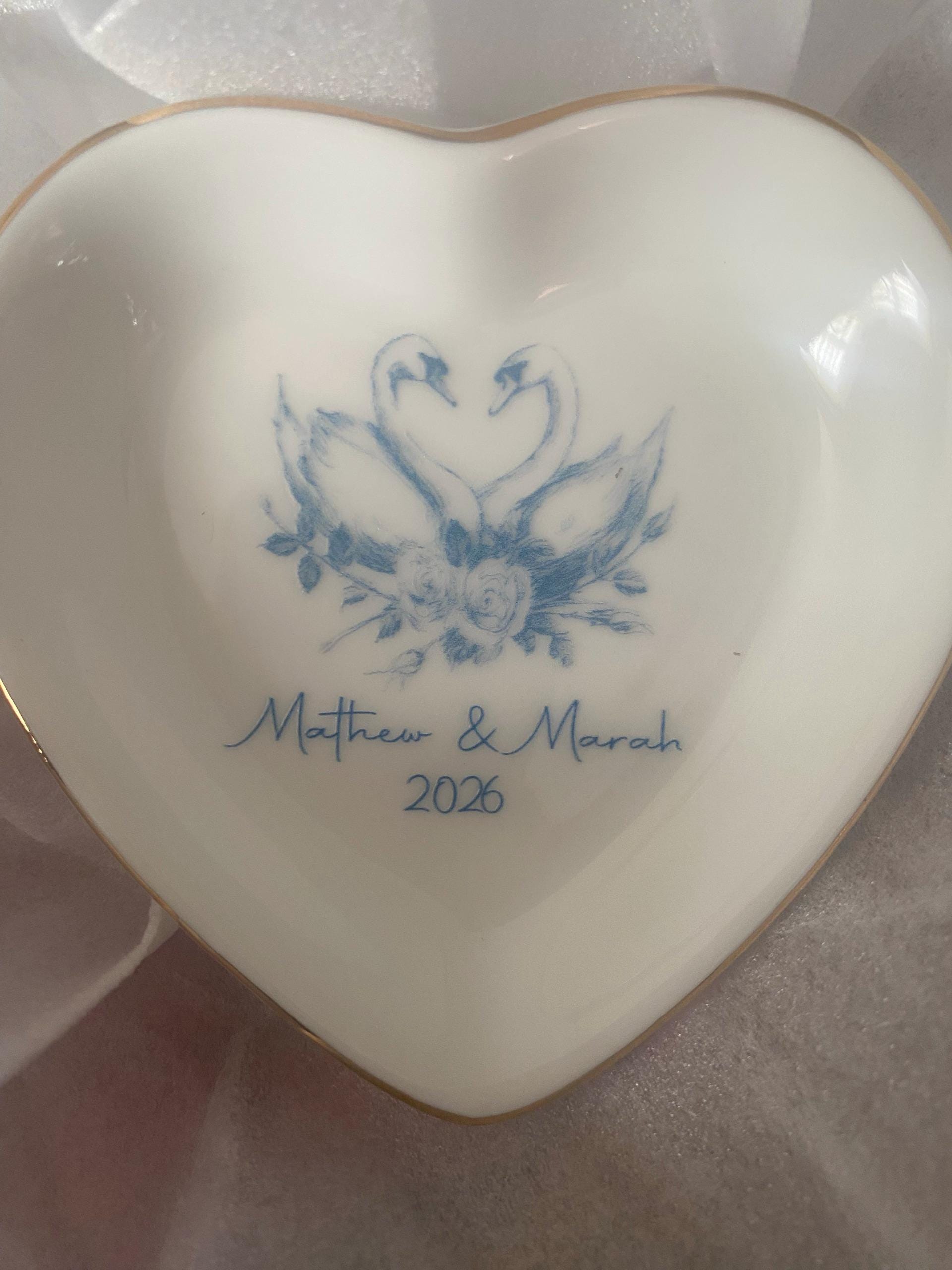 🎄This Custom designed trinket ceramic dish is beautifully crafted and personalized. It will arrive safely wrapped in its own white box. Choose from square, round or heart, each has a gold edge.