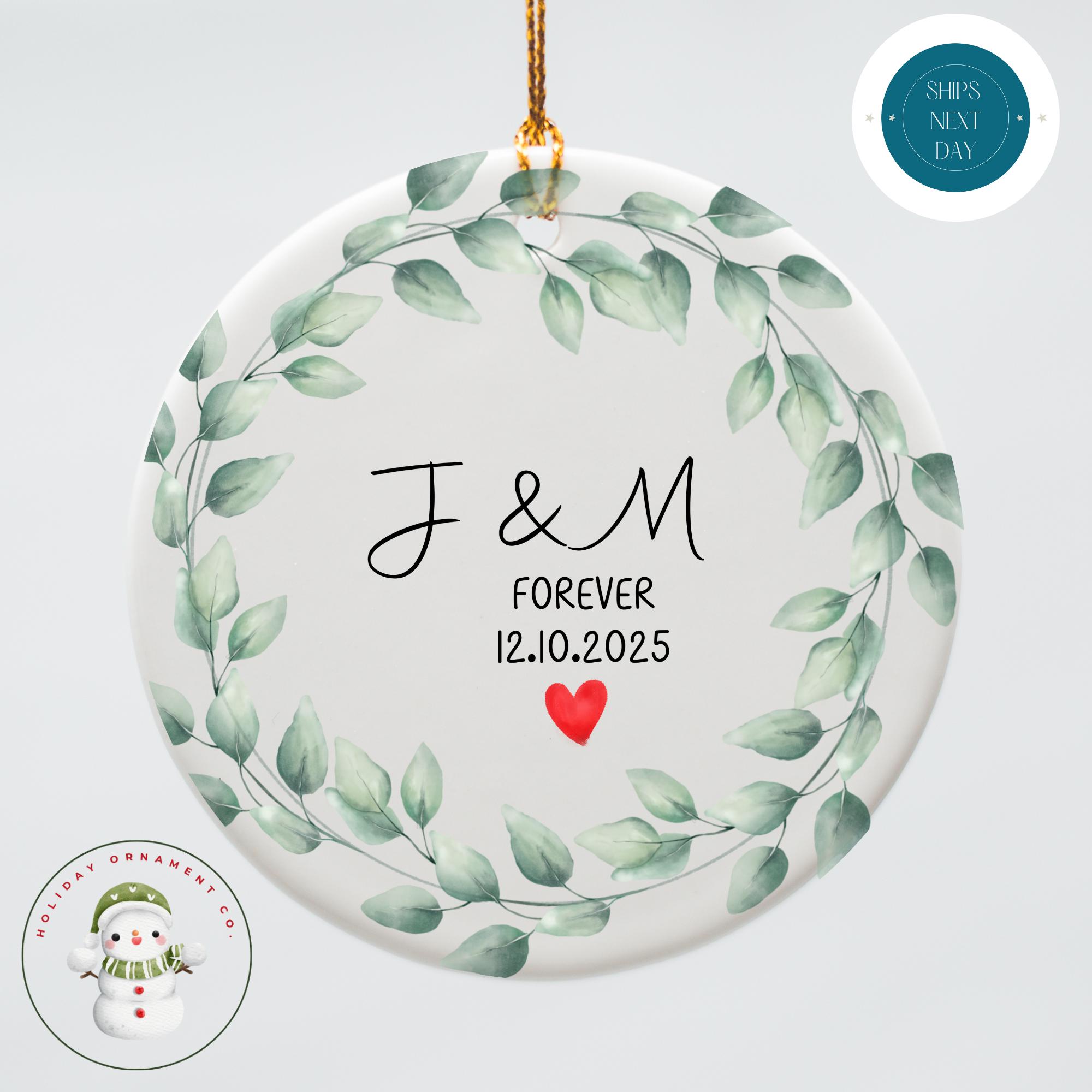 Personalized Forever Love Ceramic Ornament | Keepsake Couples Gift Holiday Ornament