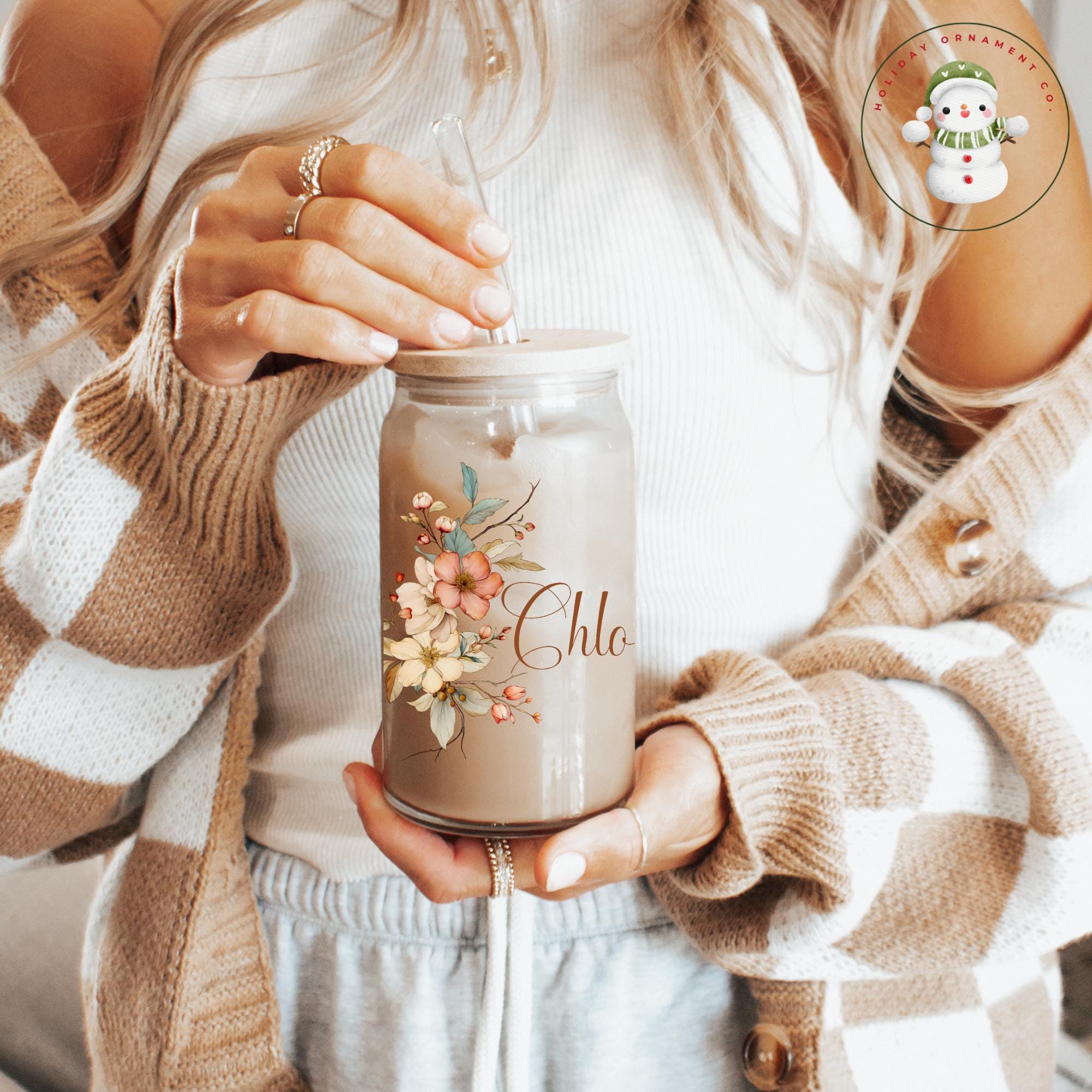 🎄This Custom designed glass tumbler cups come in 16 oz and 20 oz and have a bamboo lid and reusable glass straw.