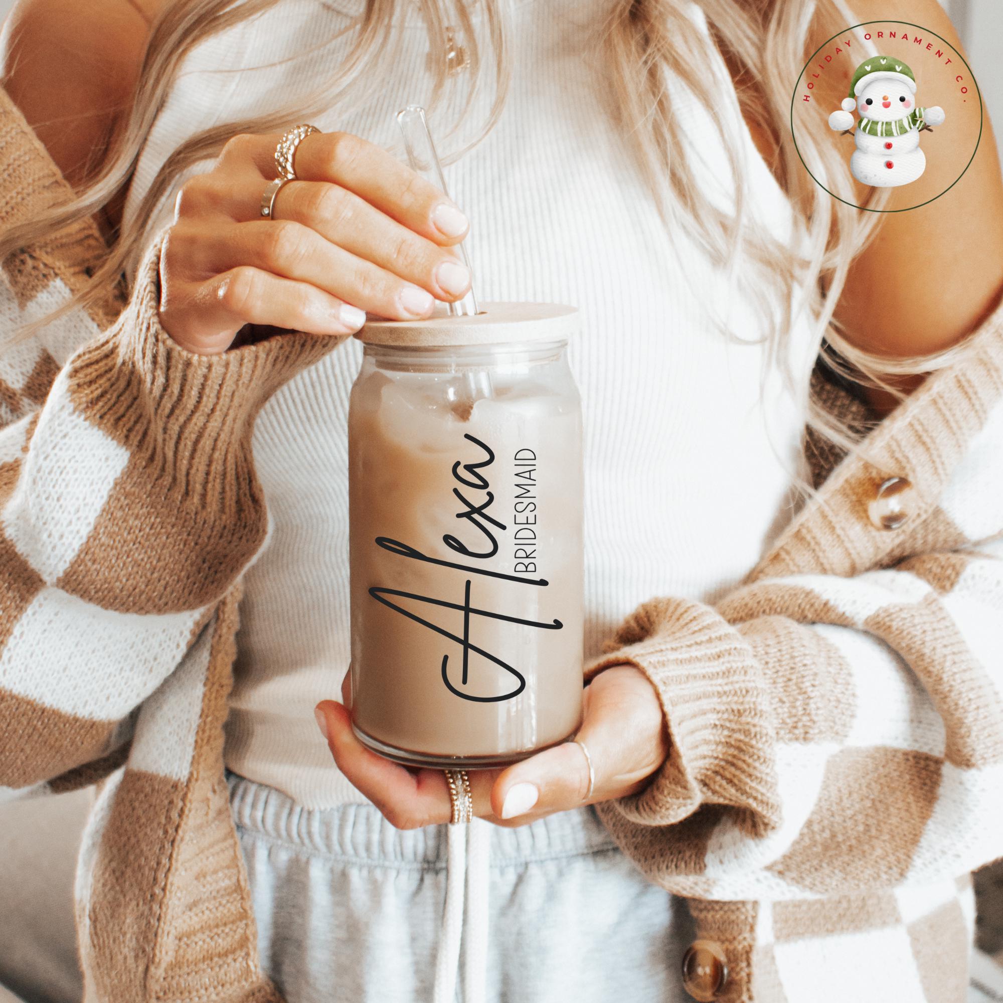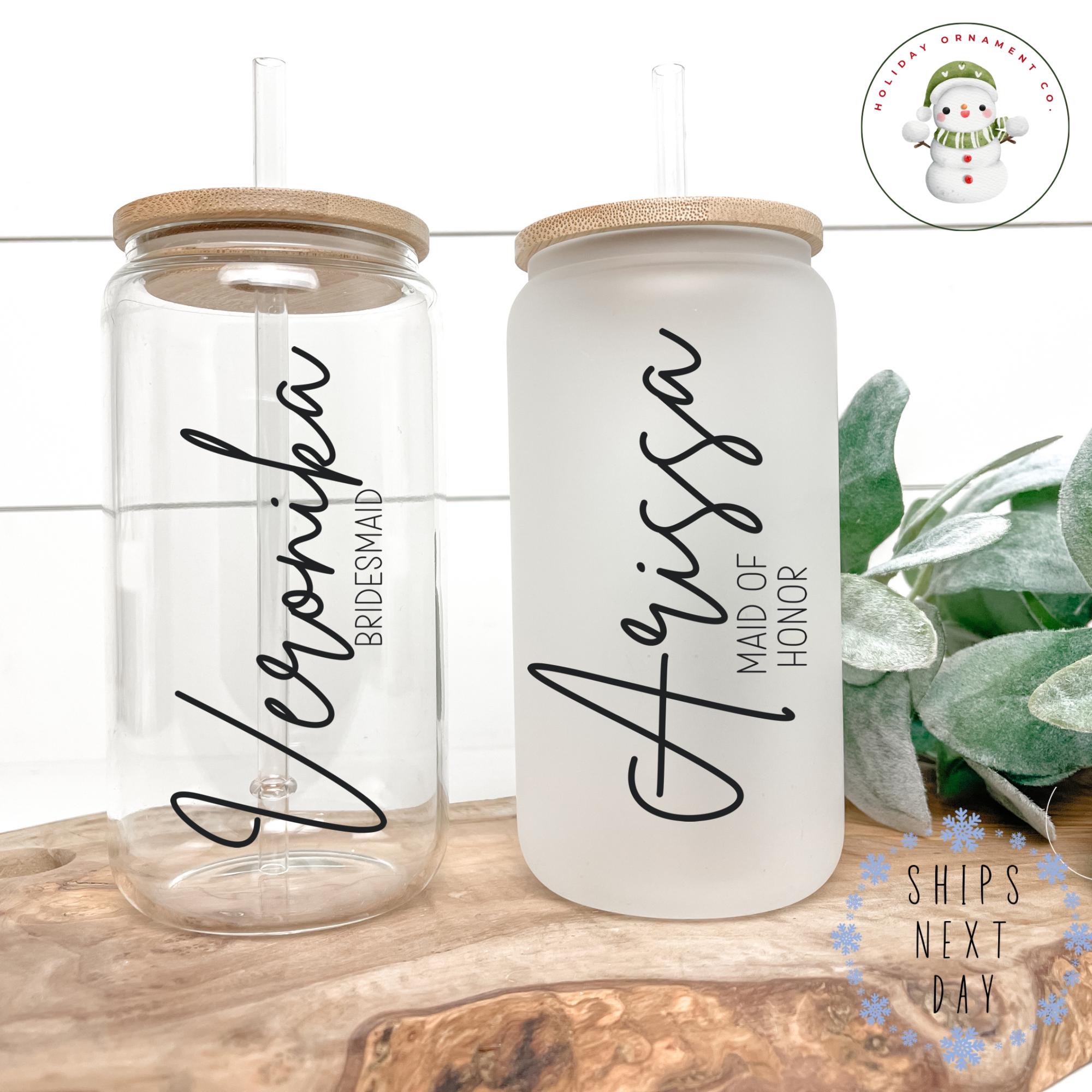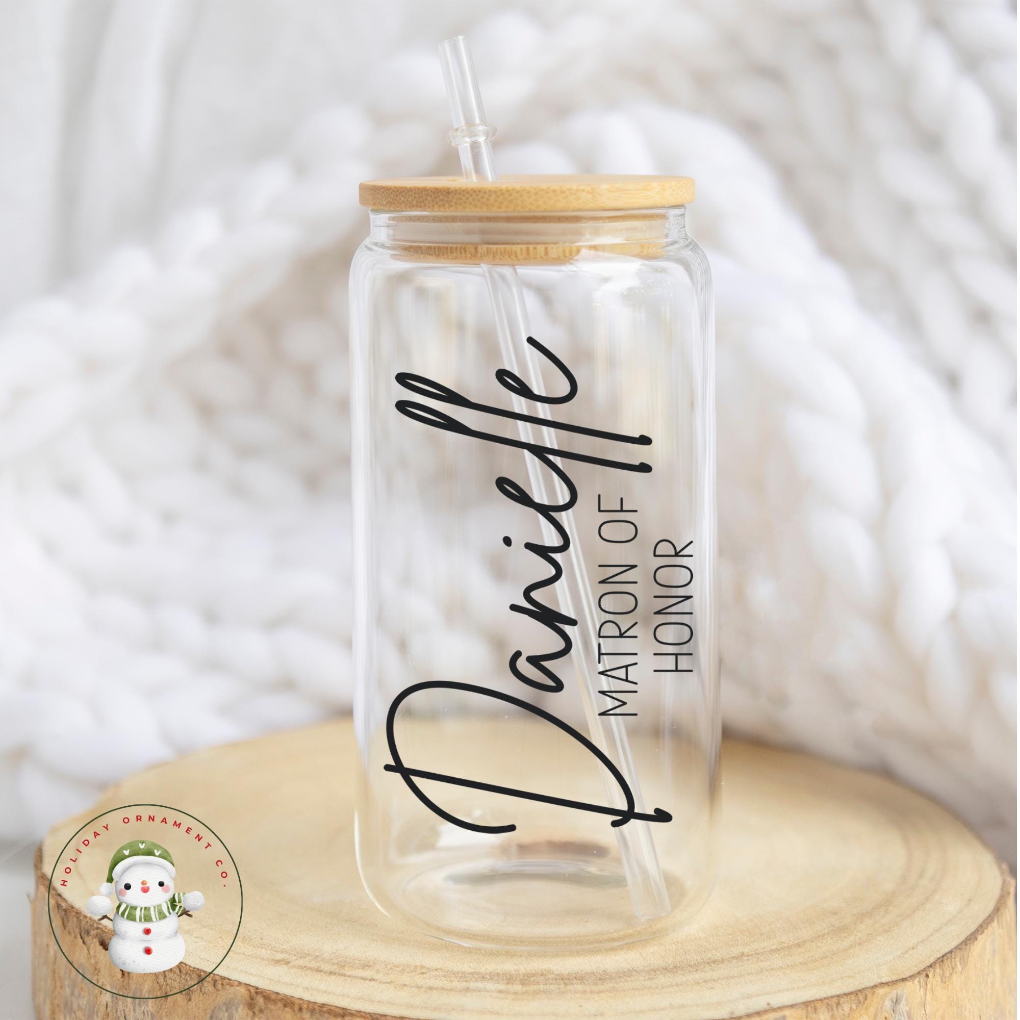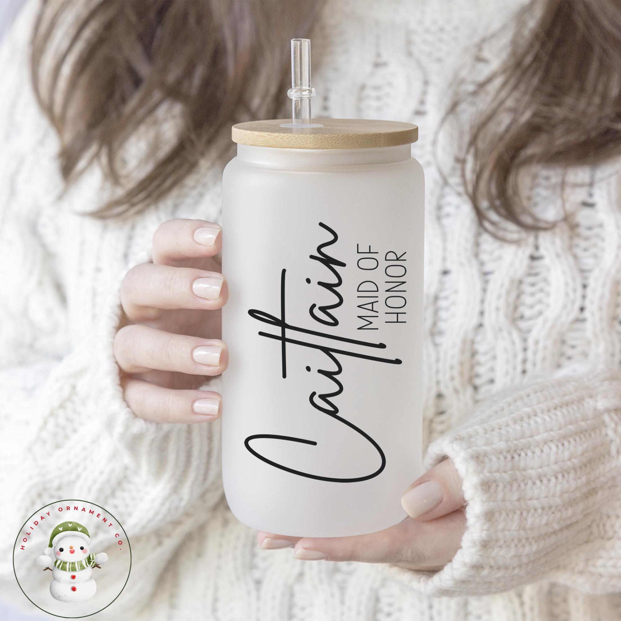 🎄This Custom designed glass tumbler cups come in 16 oz and 20 oz and have a bamboo lid and reusable glass straw.
