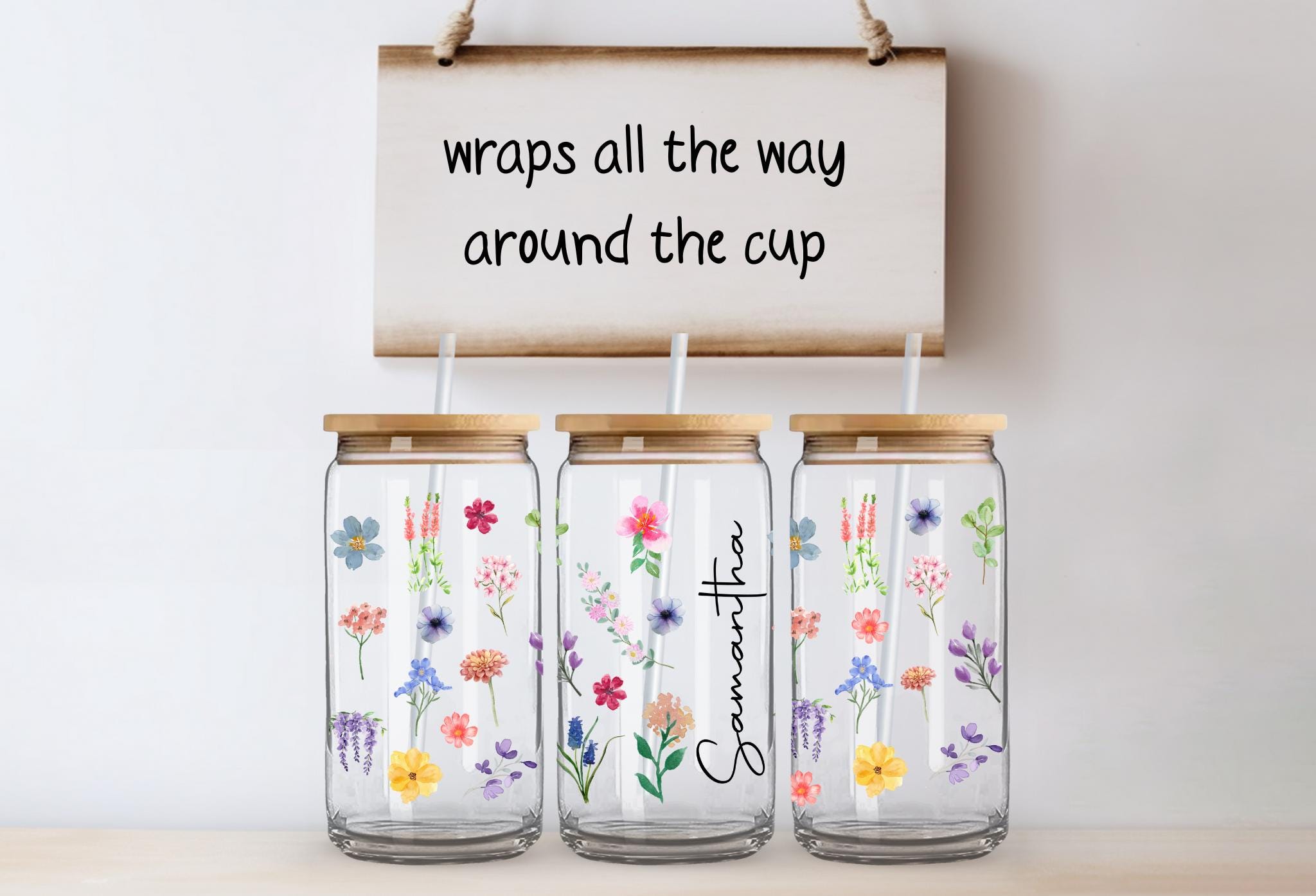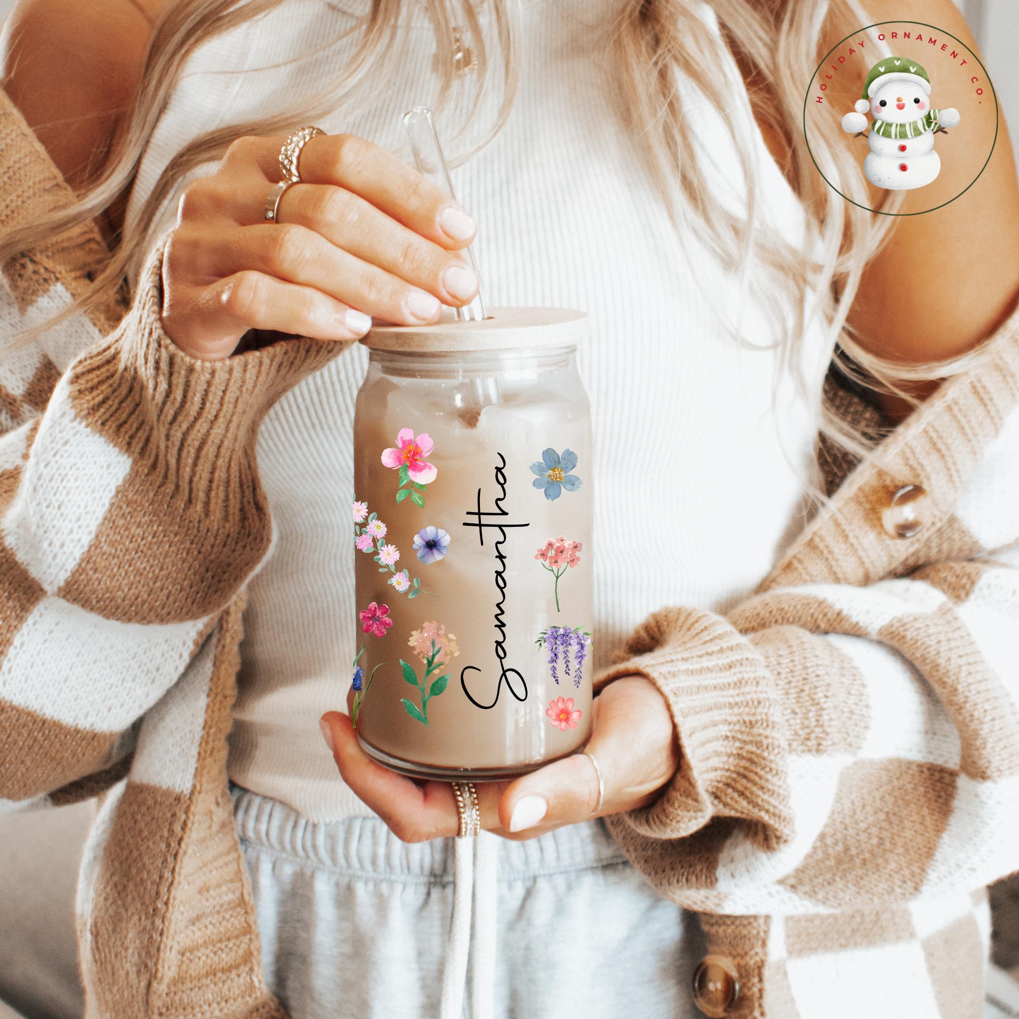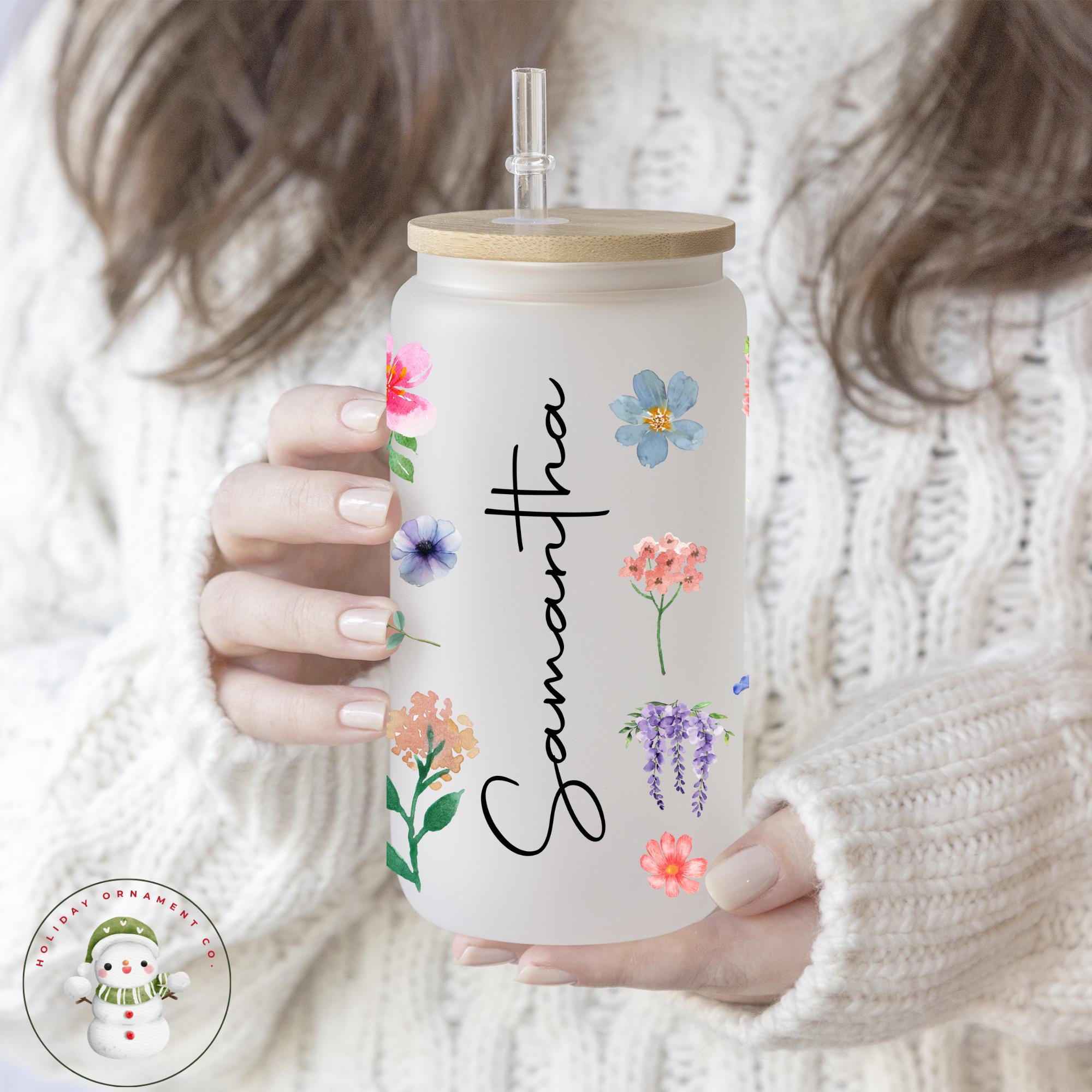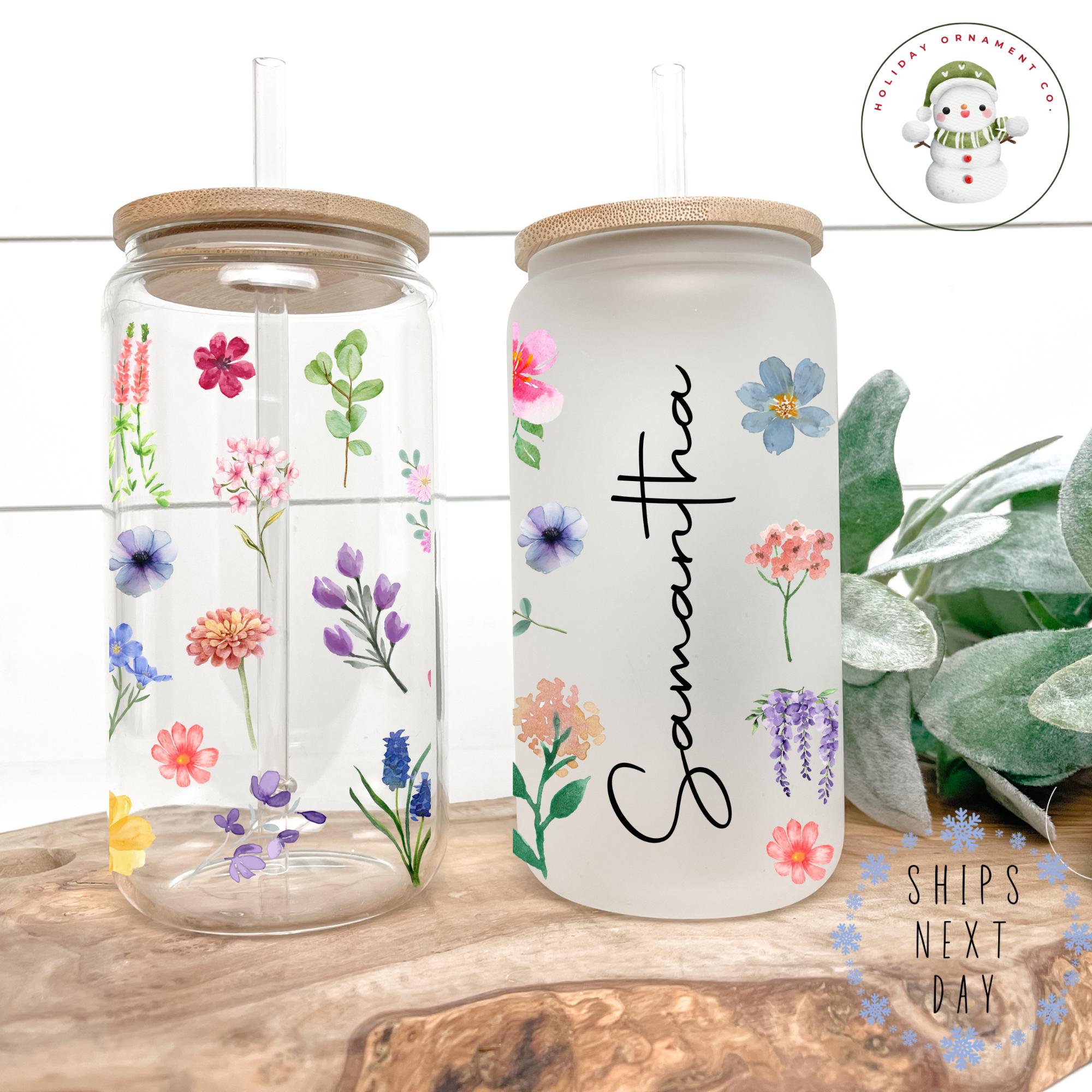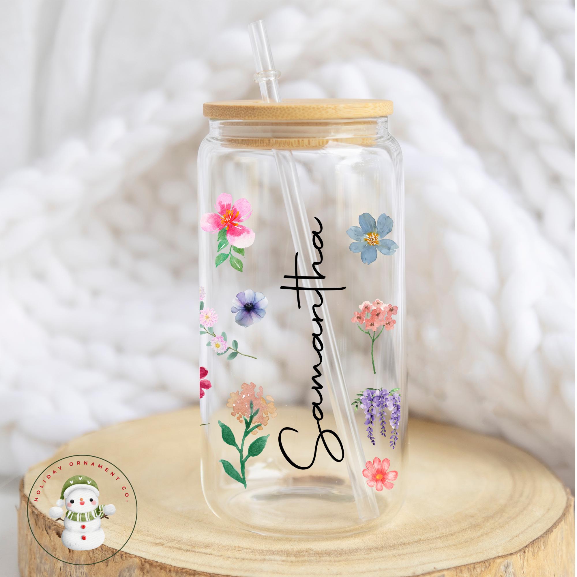 🎄This Custom designed glass tumbler cups come in 16 oz and 20 oz and have a bamboo lid and reusable glass straw.