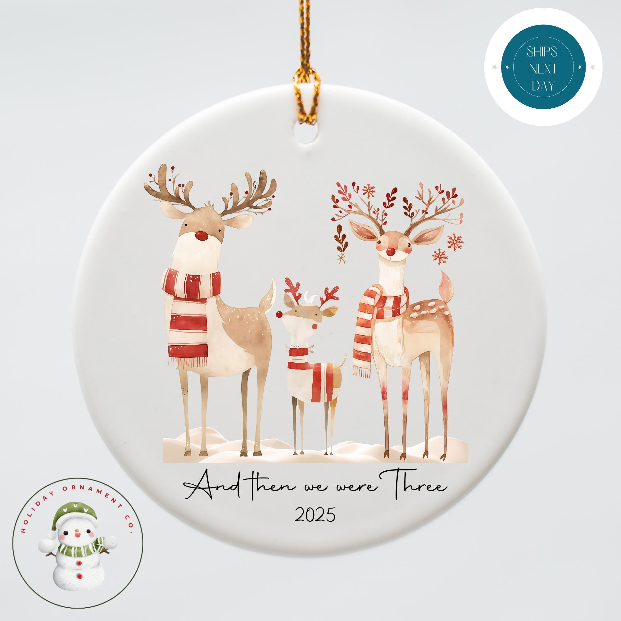 First Christmas As A Family of Three Reindeer Ornament | Peculiar Reindeer Family | Cute Holiday Family Ornament