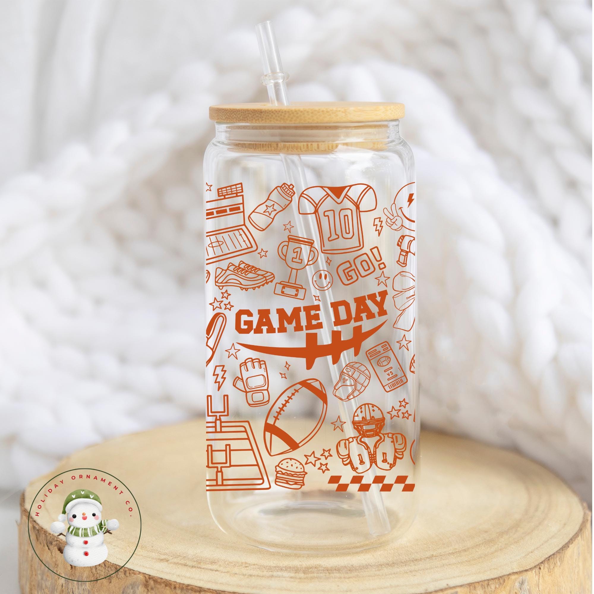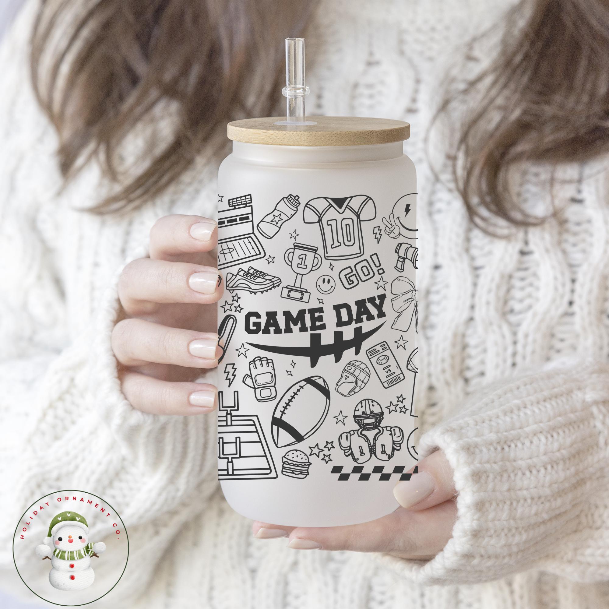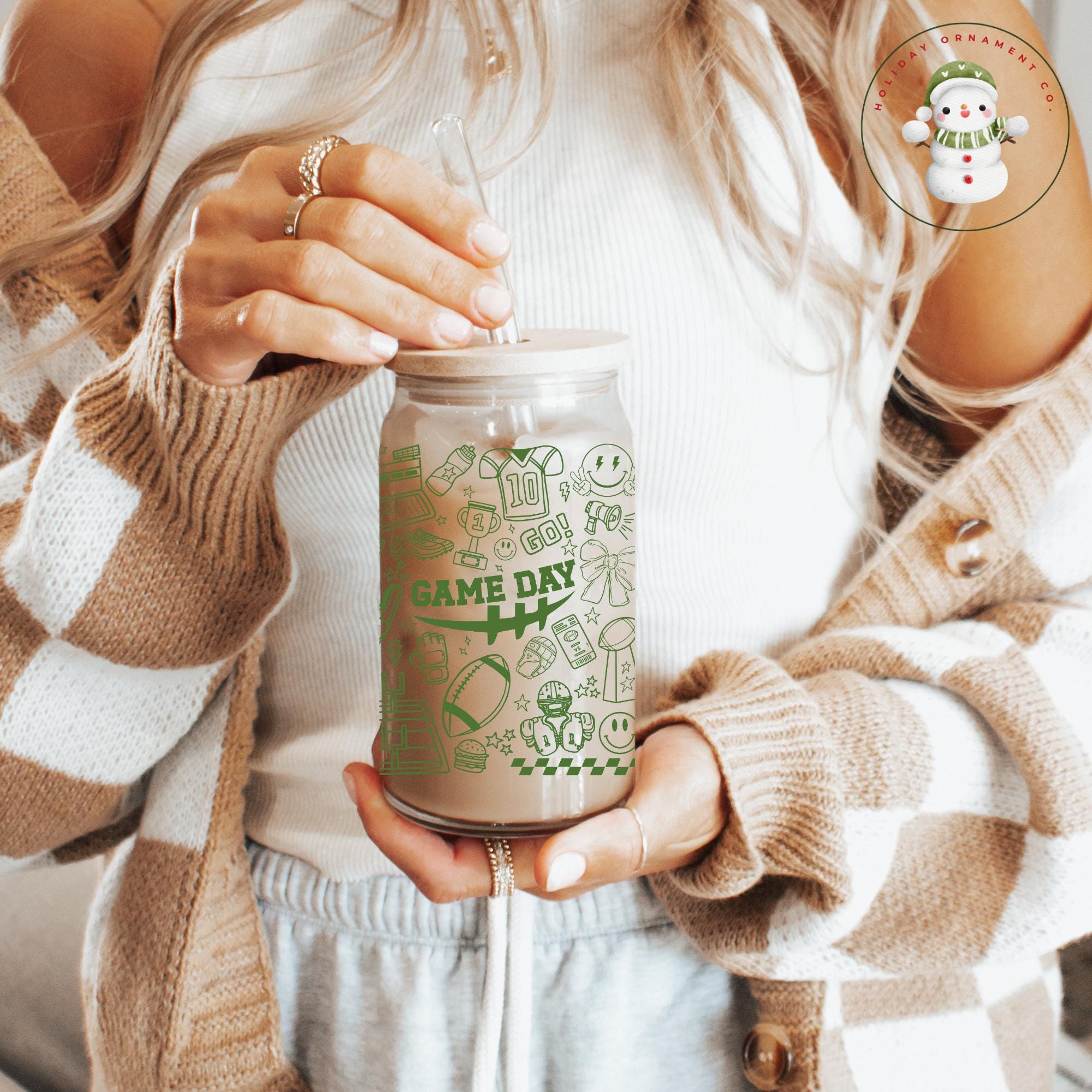🎄This Custom designed glass tumbler cups come in 16 oz and 20 oz and have a bamboo lid and reusable glass straw.