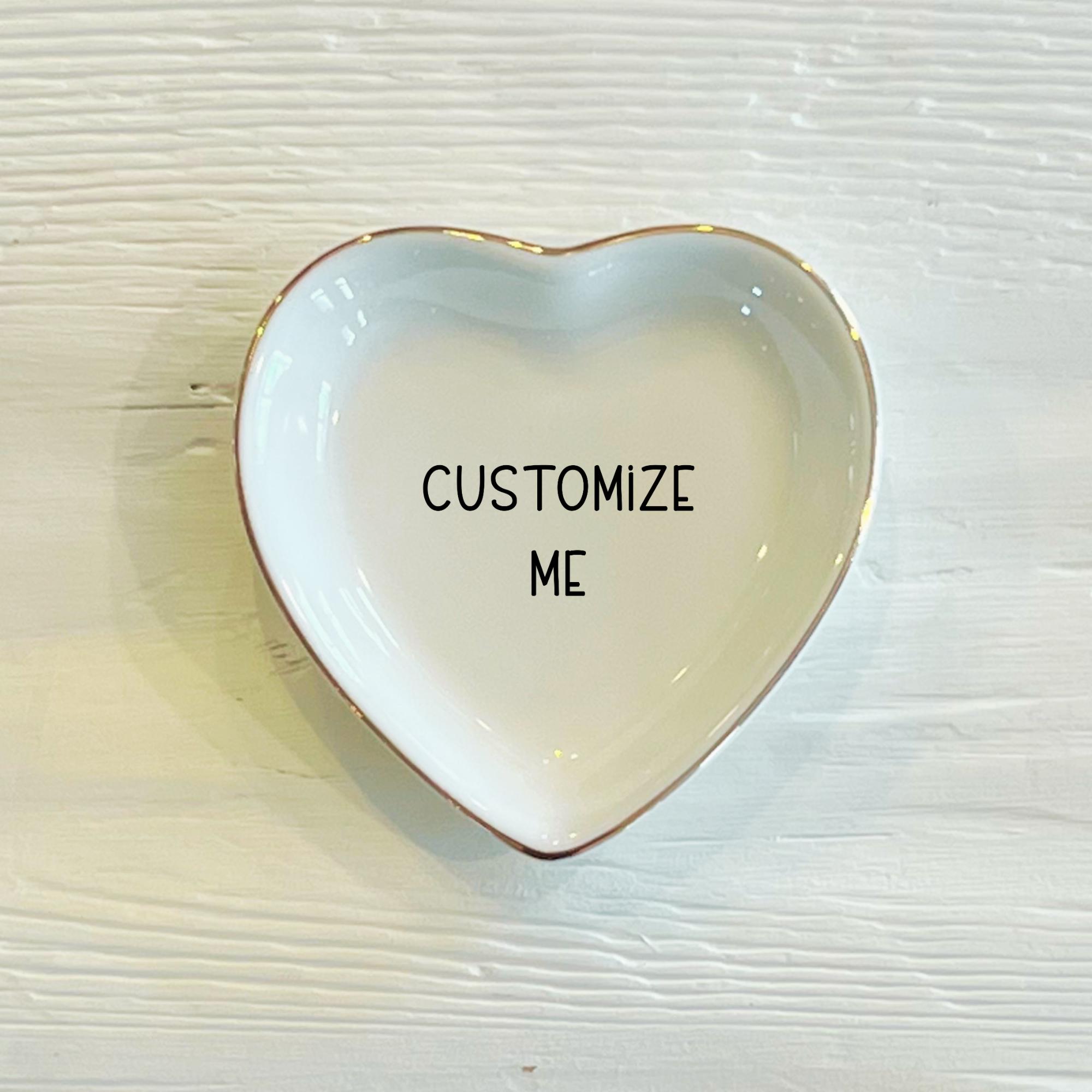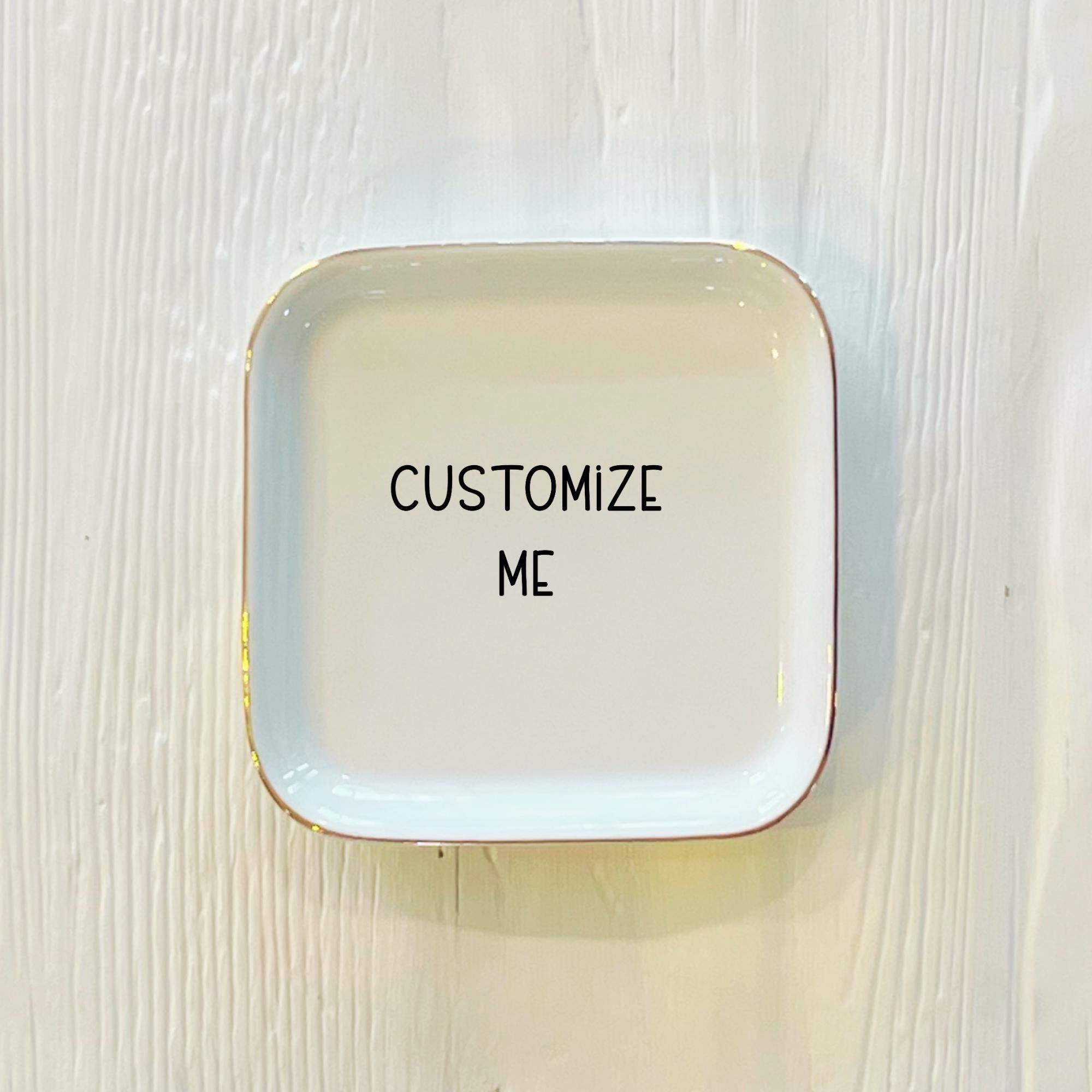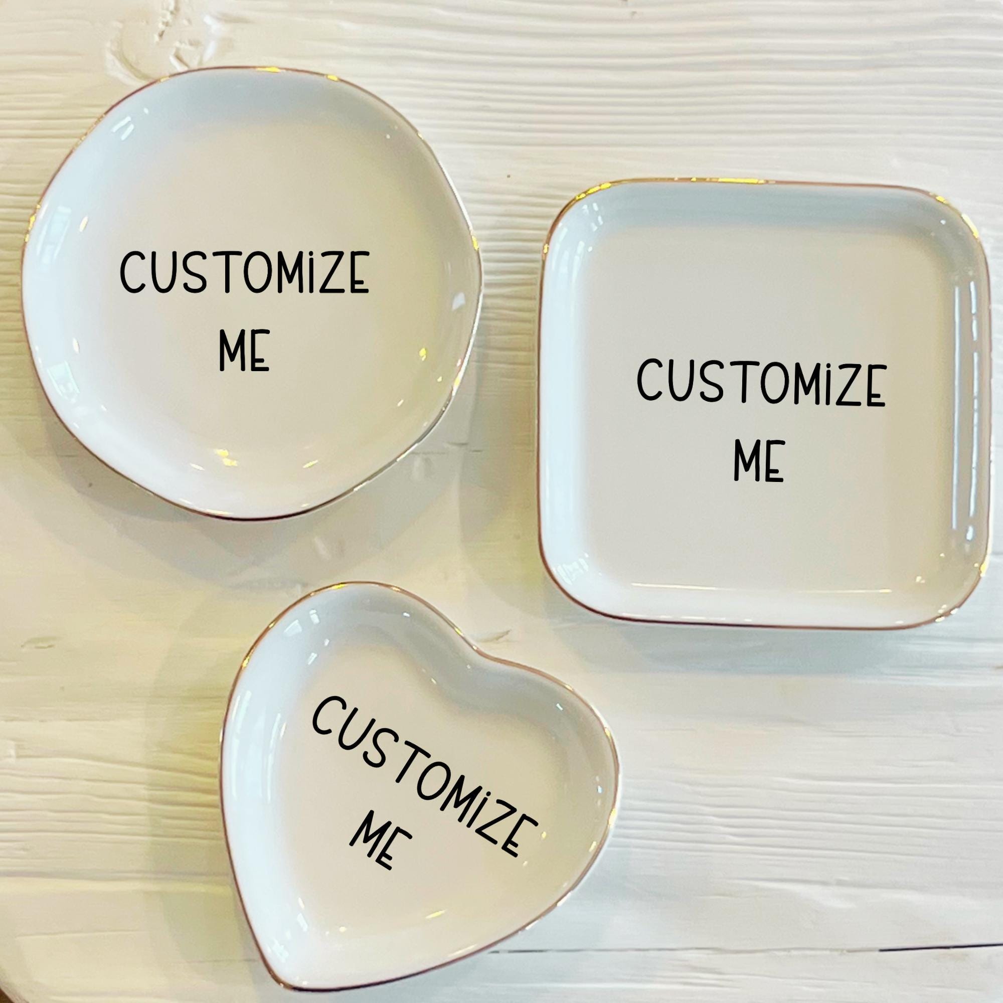 🎄This Custom designed trinket ceramic dish is beautifully crafted and personalized. It will arrive safely wrapped in its own white box. Choose from square, round or heart, each has a gold edge.