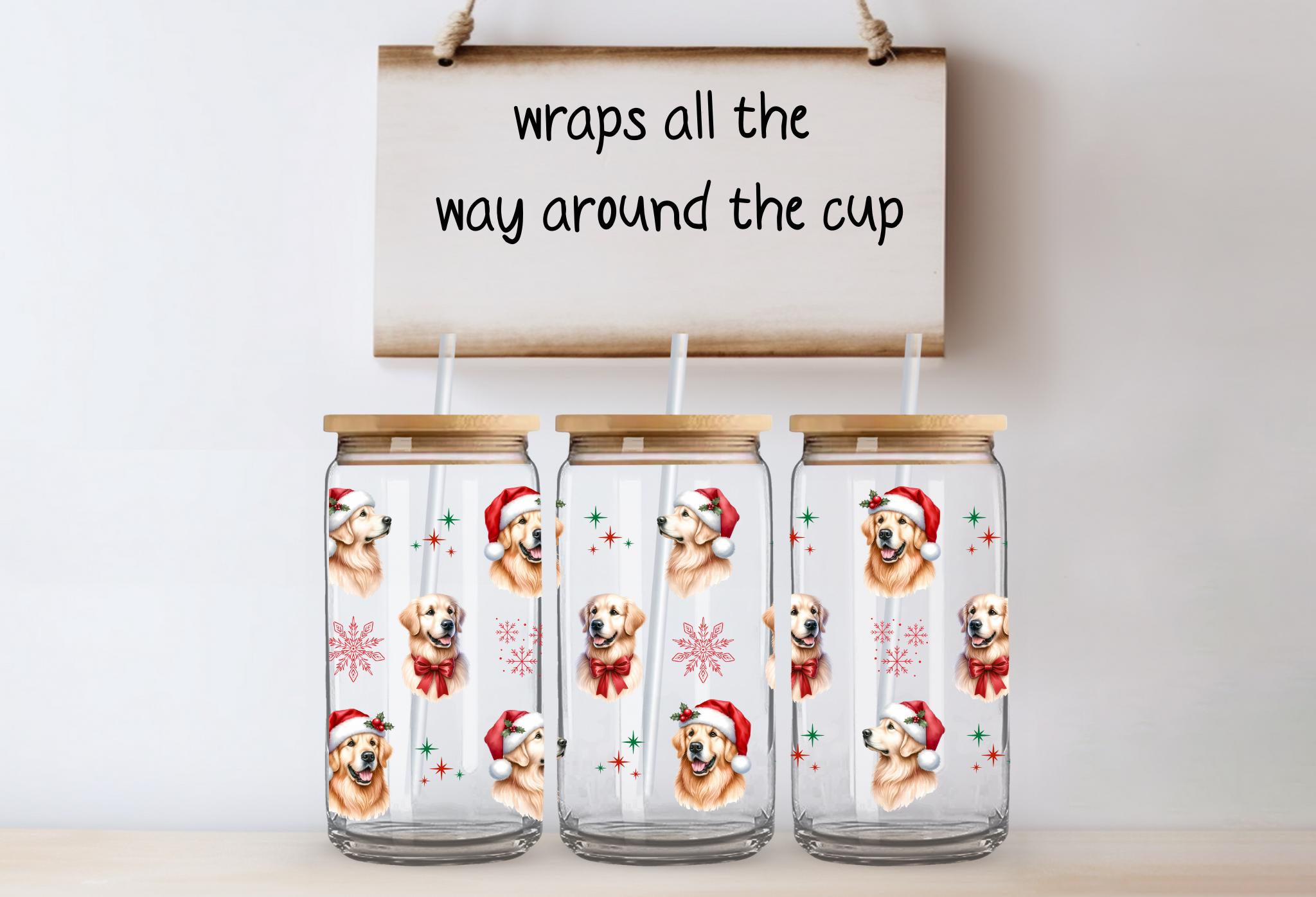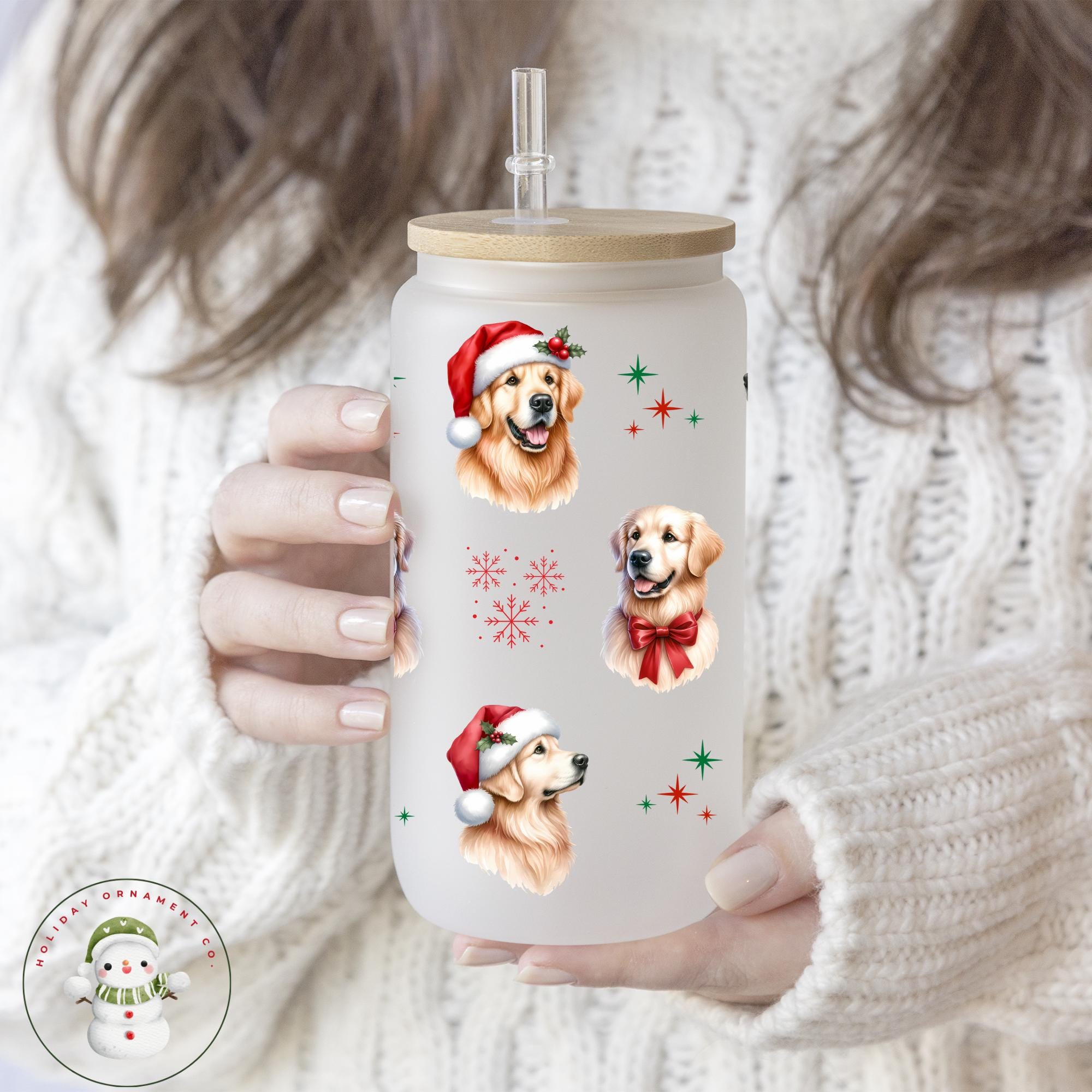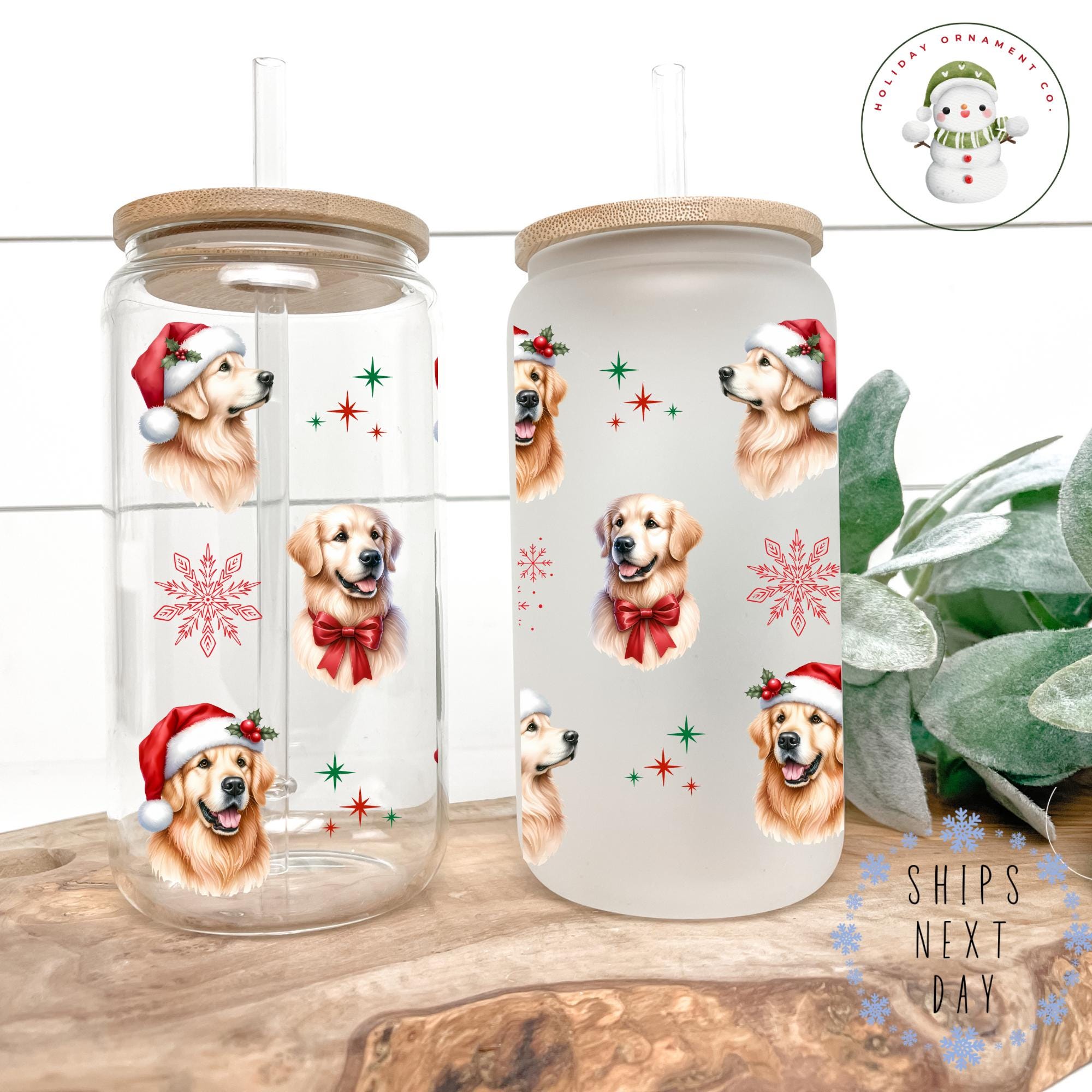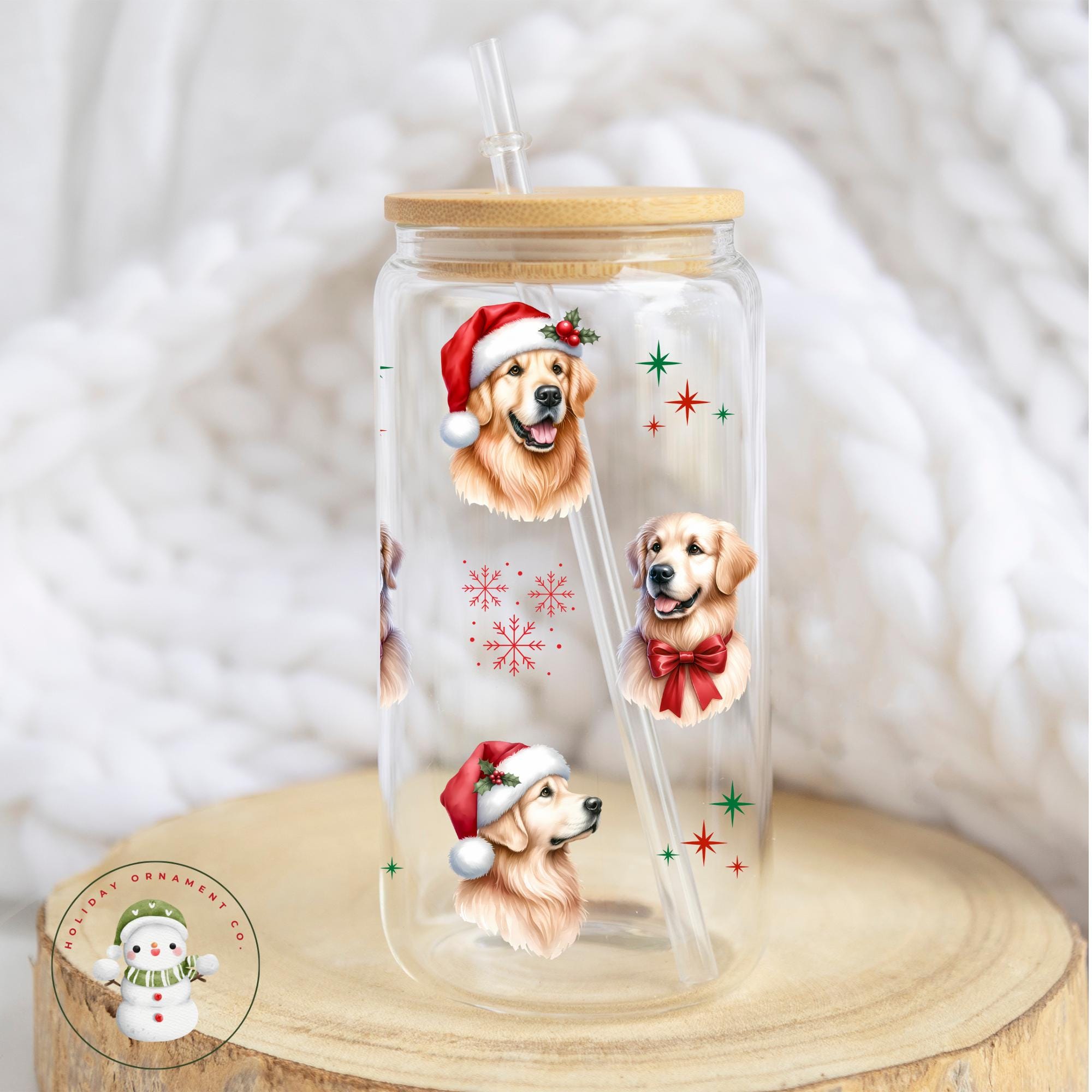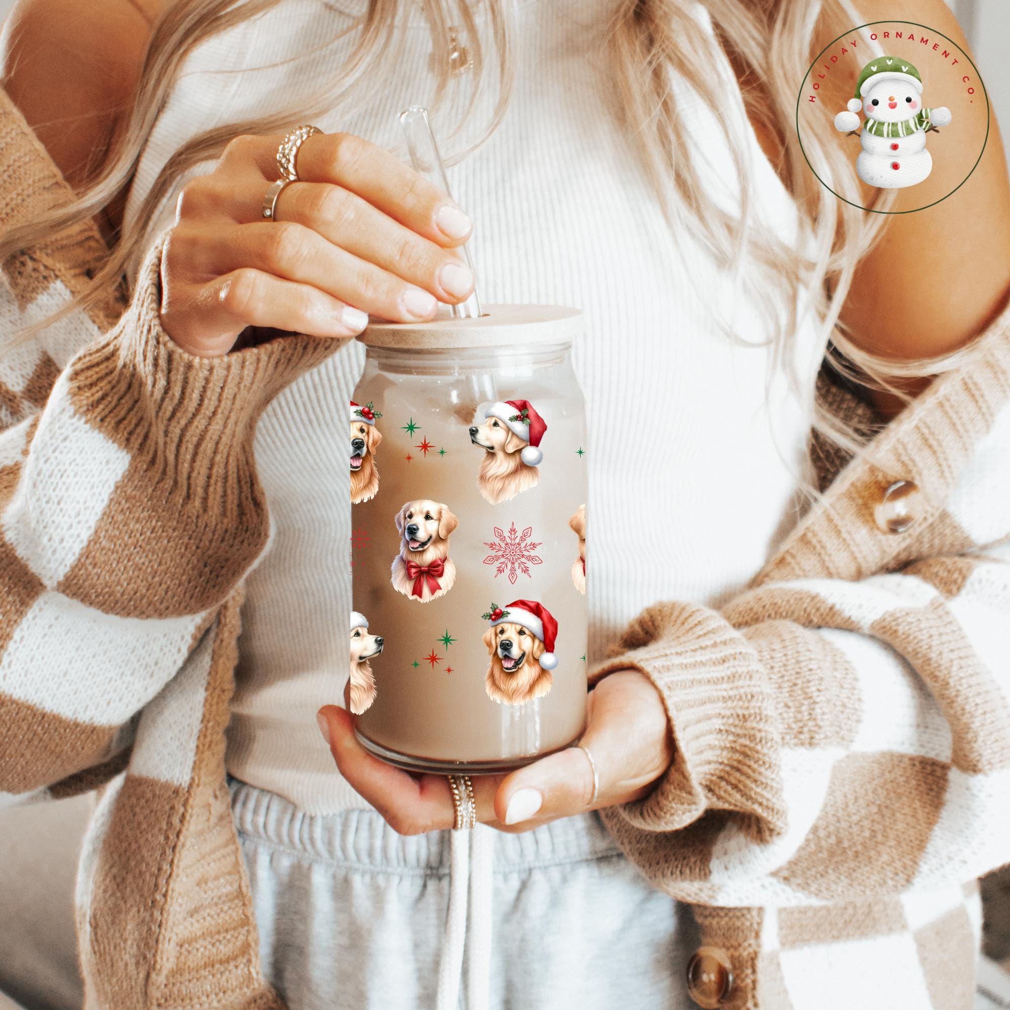 Golden Retriever Christmas Glass Tumbler Libbey Cup: Holiday Iced Coffee Cup (16oz/20oz)