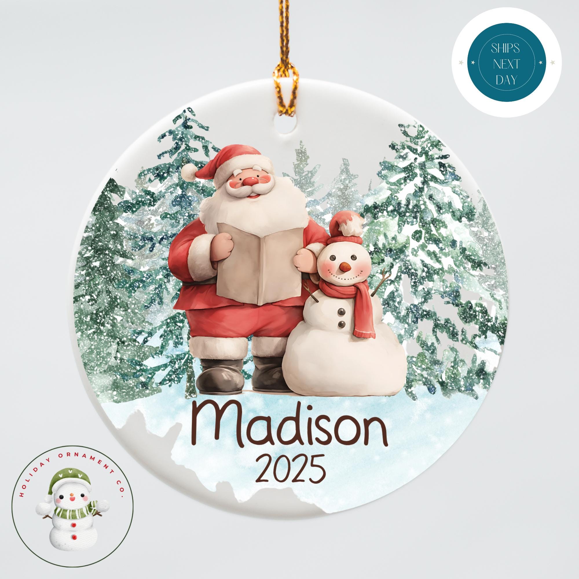 Personalized Santa and Snowman Christmas Ornament | 2025 Holiday Ornament | Sibling Ornament