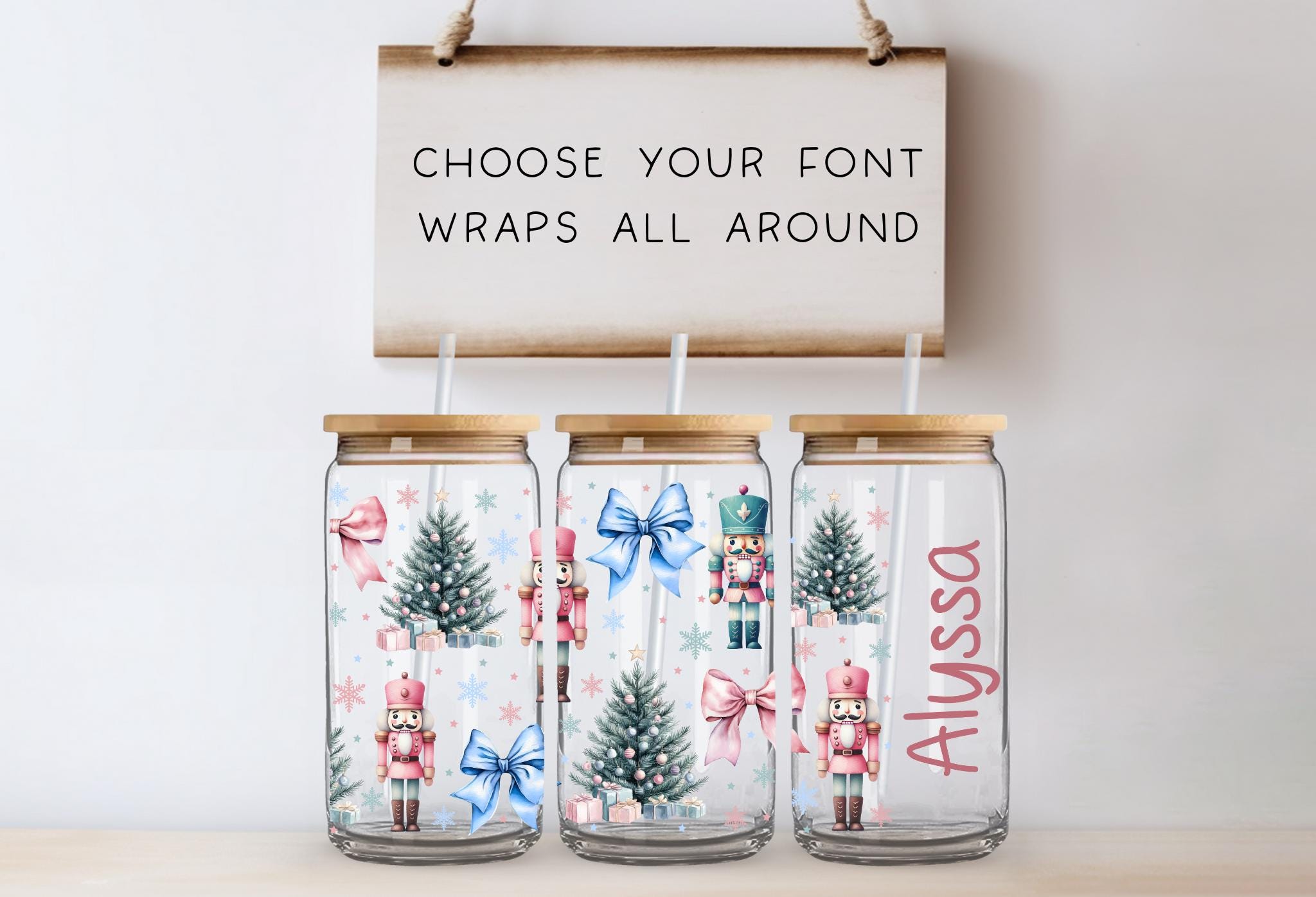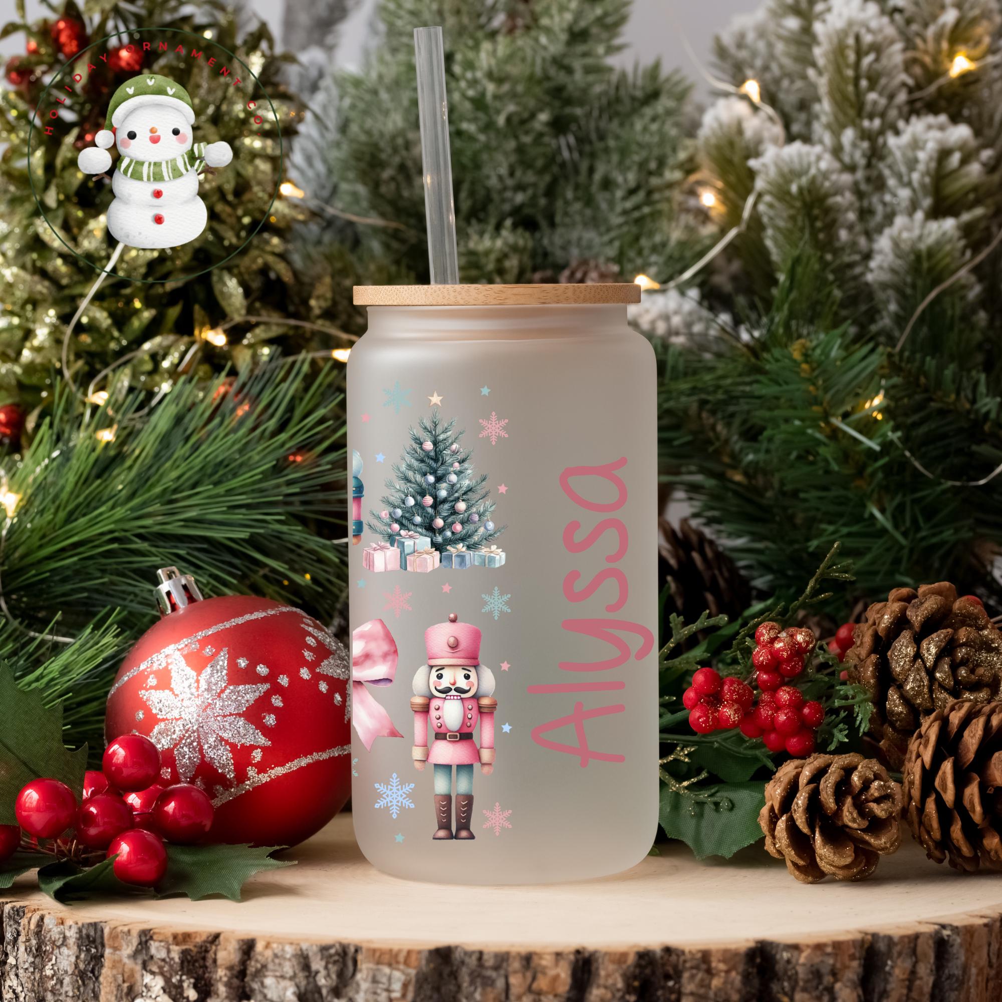 Personalized Nutcracker Christmas Glass Tumbler: Coquette Iced Coffee Cup (16/20 oz)