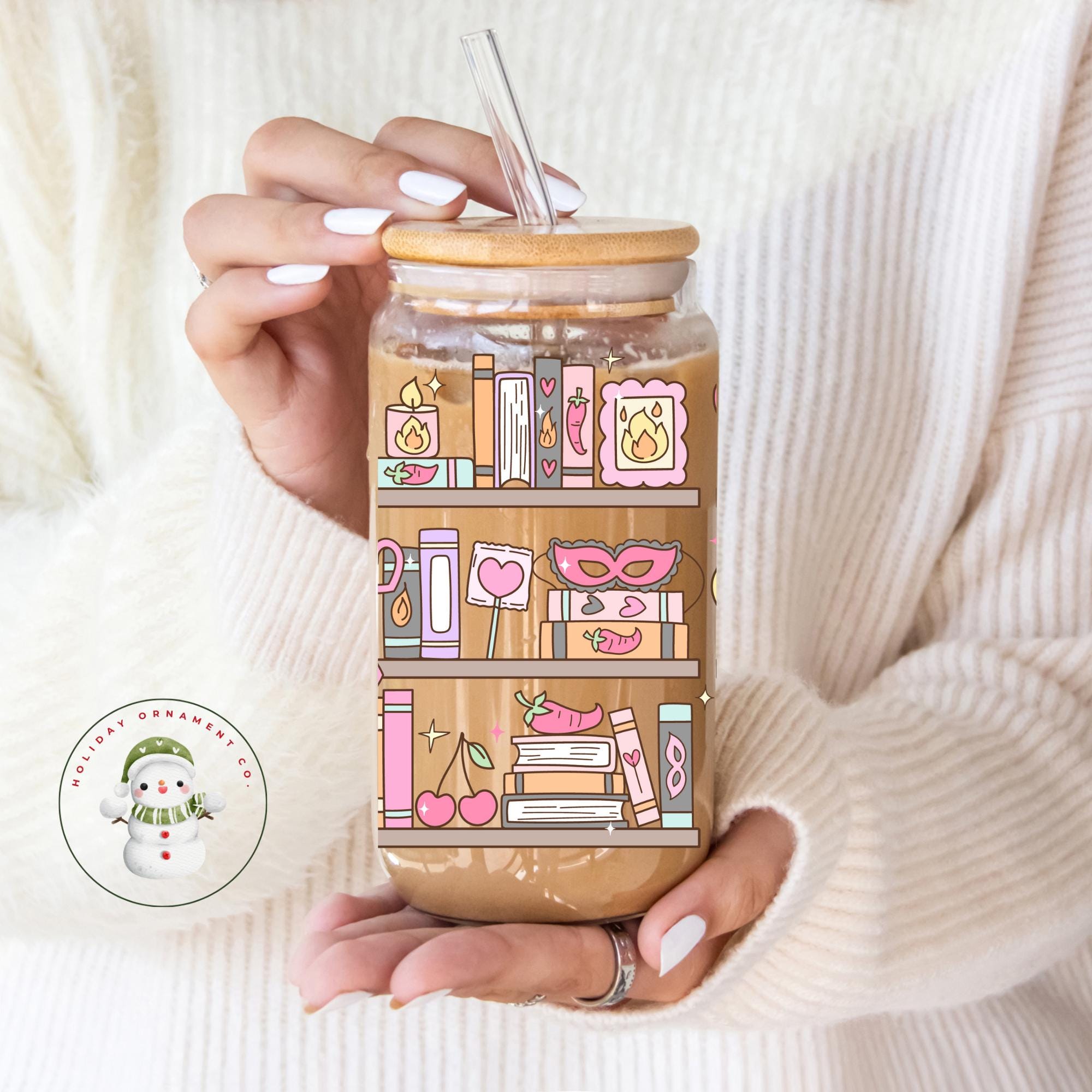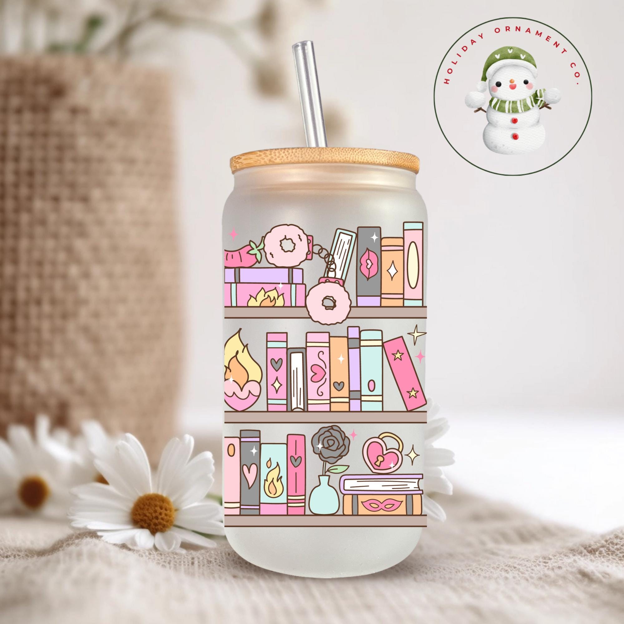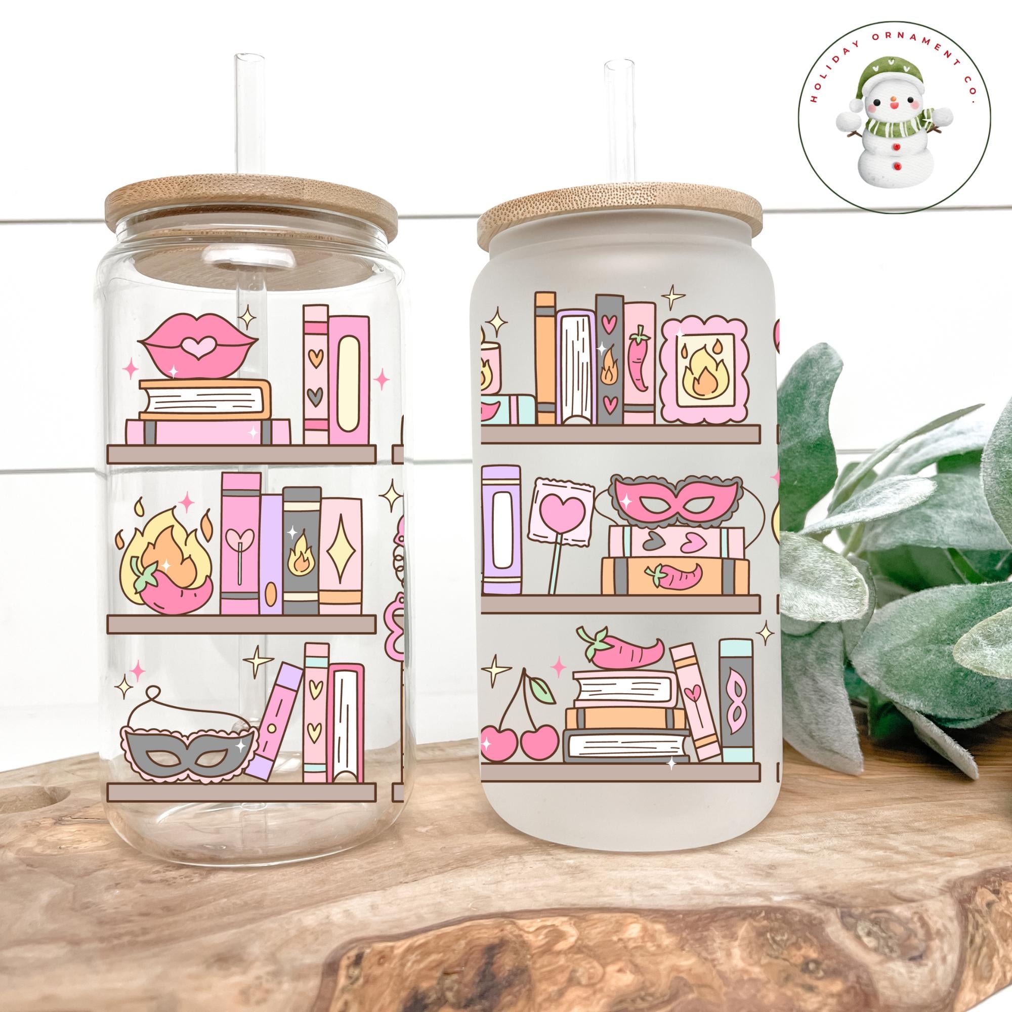 🎄This Custom designed glass tumbler cups comes in 20 oz only and has a bamboo lid and reusable glass straw.
