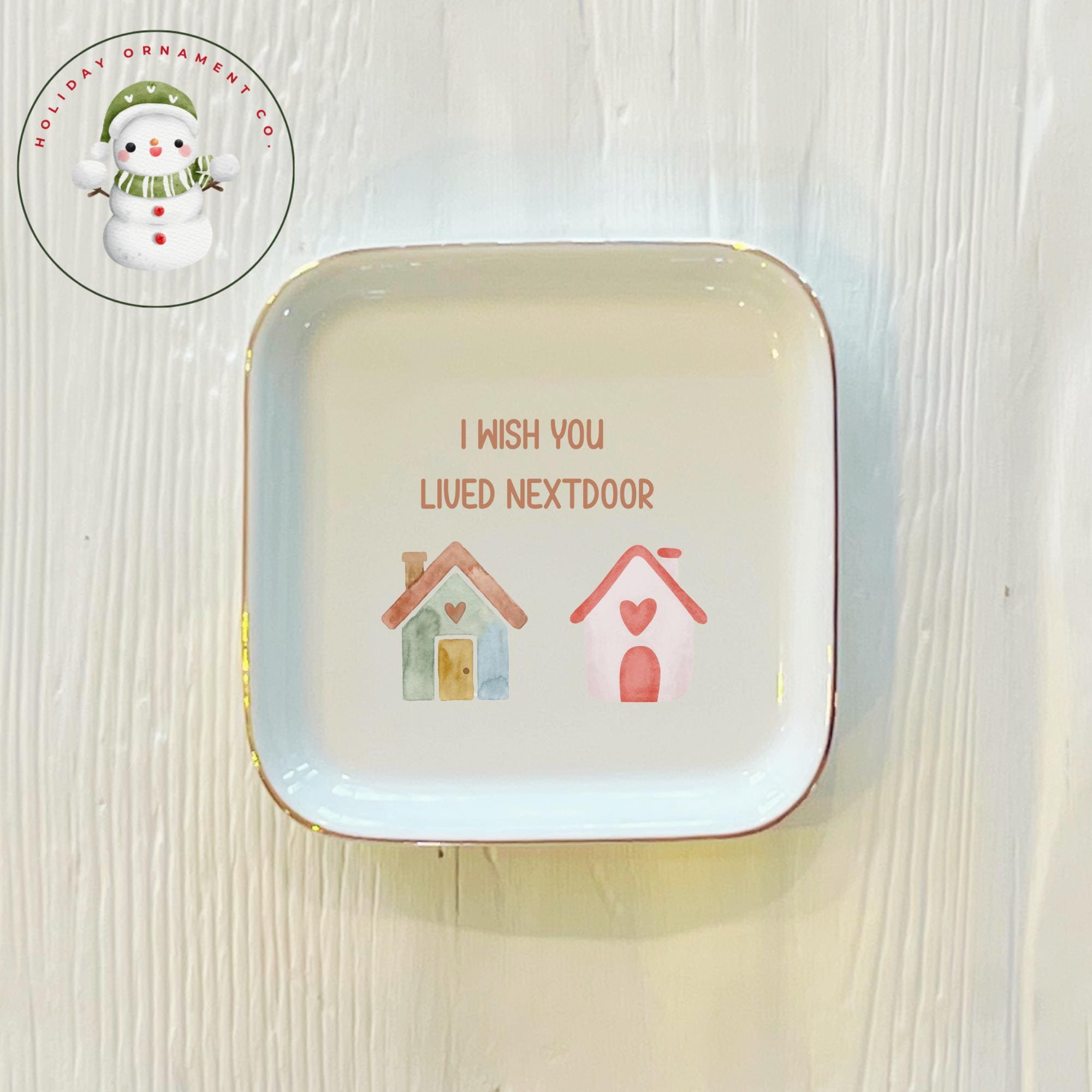 🎄This Custom designed trinket ceramic dish is beautifully crafted and personalized. It will arrive safely wrapped in its own white box. Choose from square, round or heart, each has a gold edge.