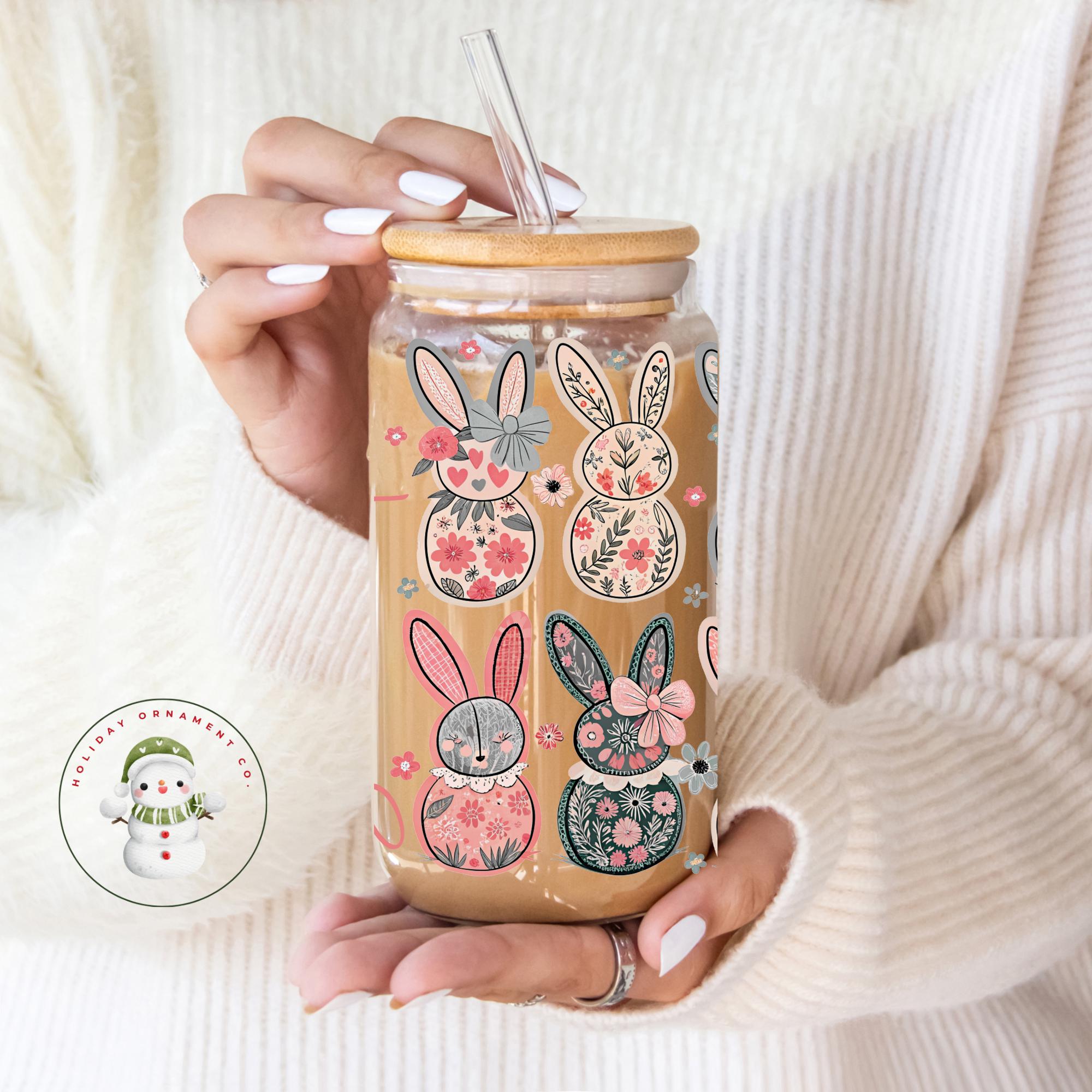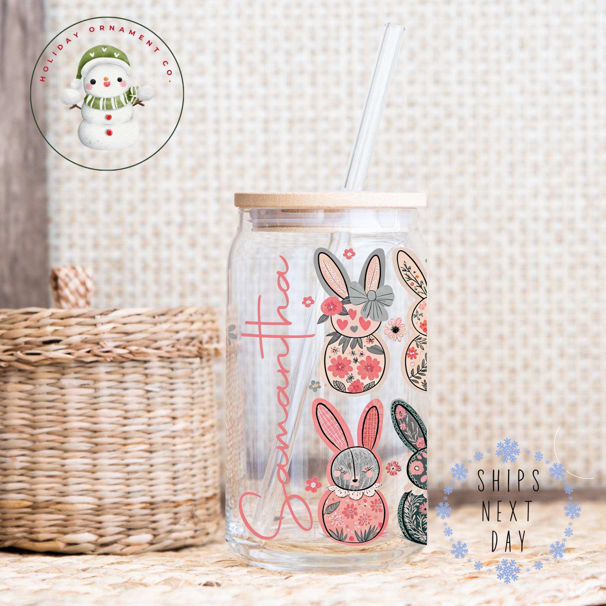 🎄 This Custom designed glass tumbler cups come in 16 oz and 20 oz and have a bamboo lid and reusable glass straw.