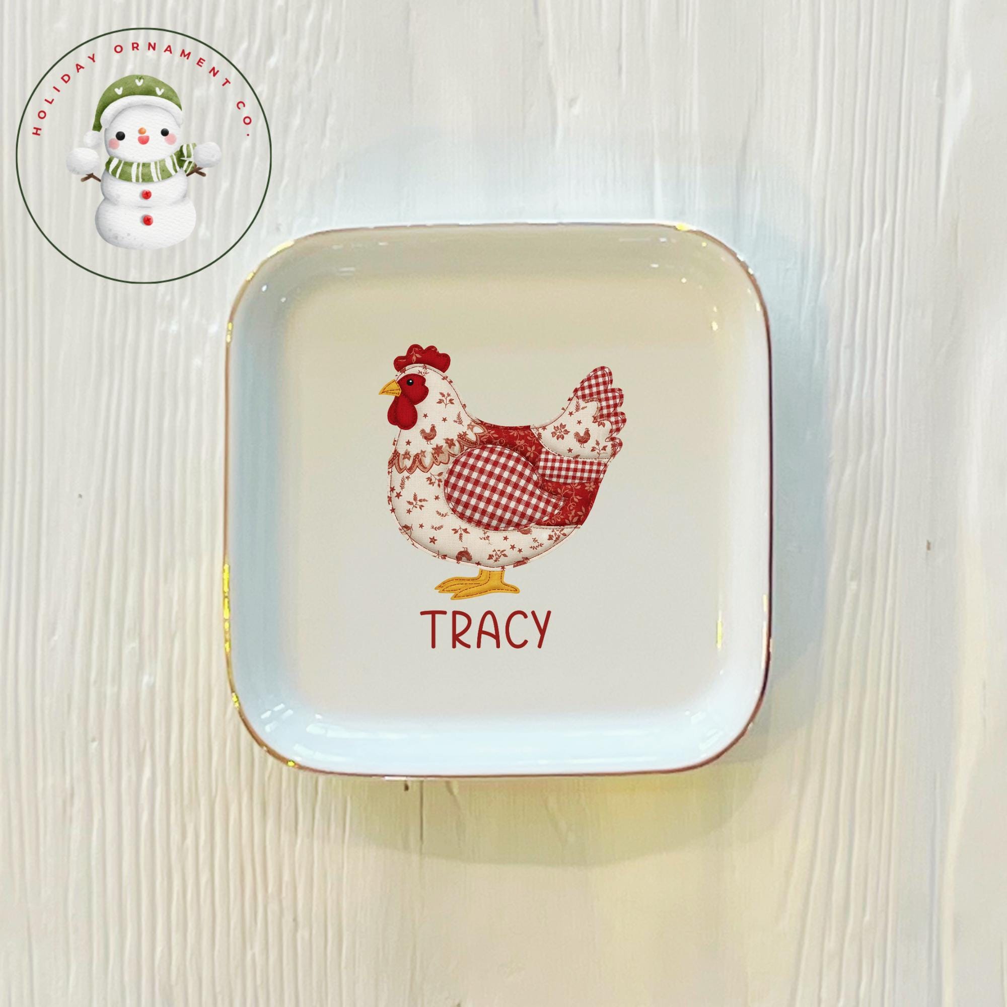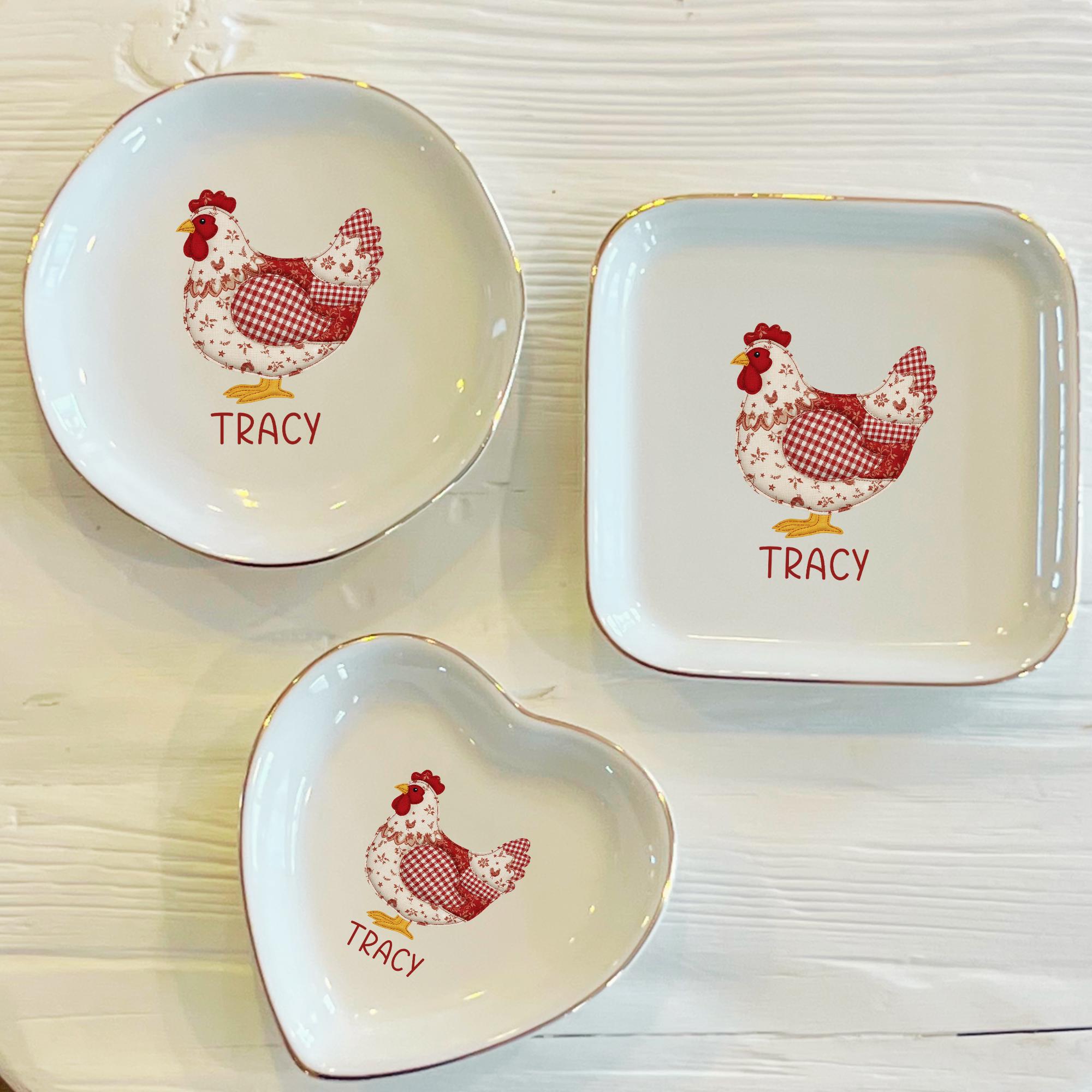🎄This Custom designed trinket ceramic dish is beautifully crafted and personalized. It will arrive safely wrapped in its own white box. Choose from square, round or heart, each has a gold edge.