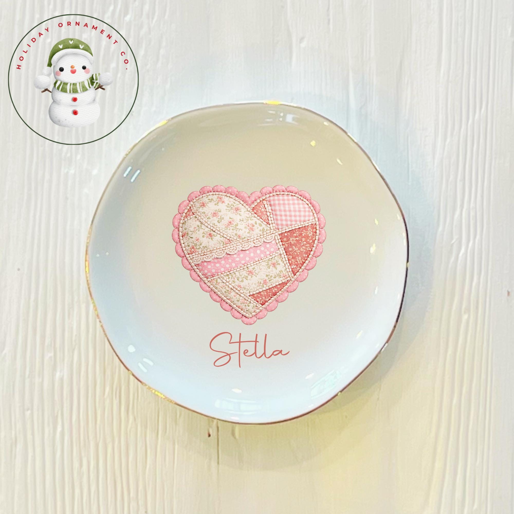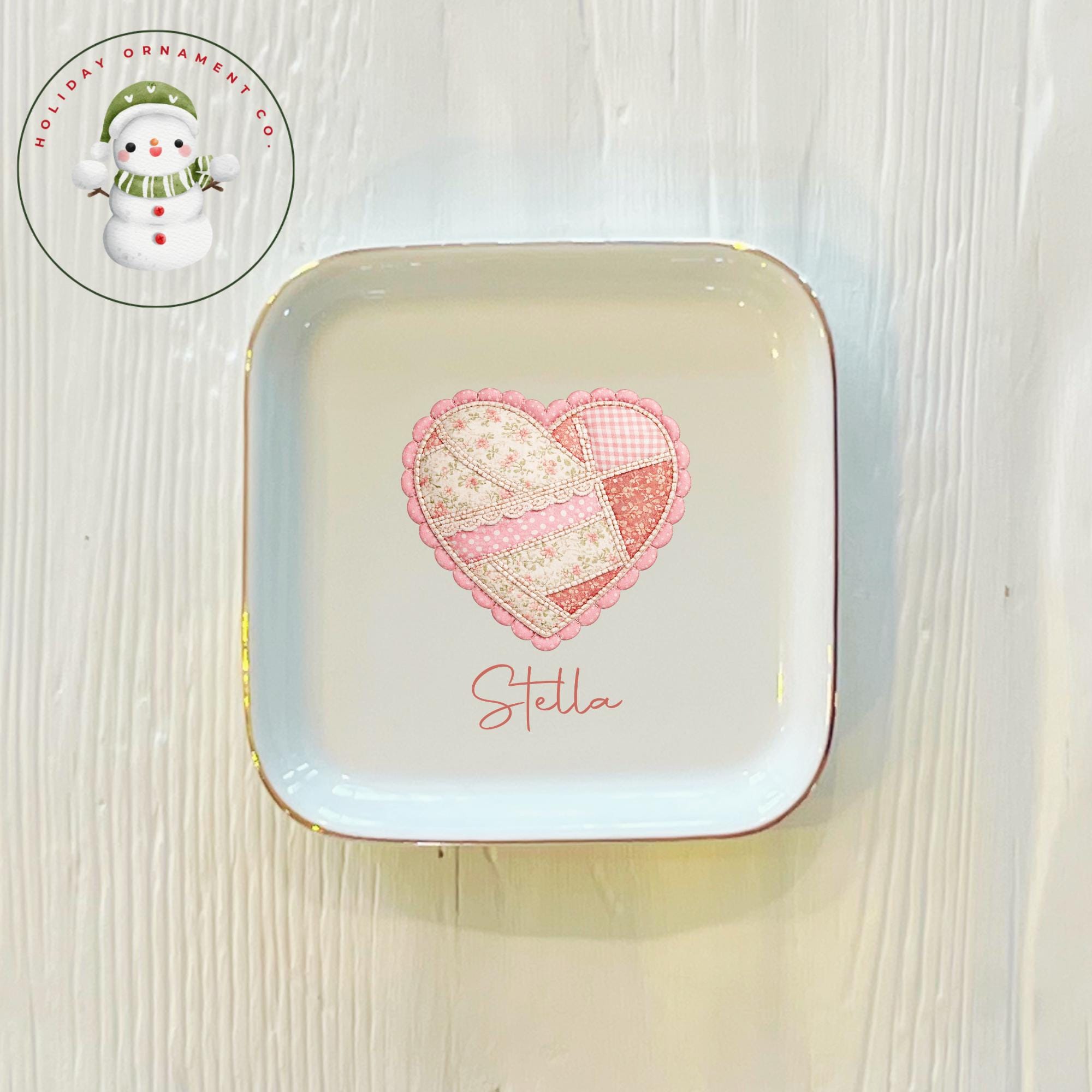 🎄This Custom designed trinket ceramic dish is beautifully crafted and personalized. It will arrive safely wrapped in its own white box. Choose from square, round or heart, each has a gold edge.