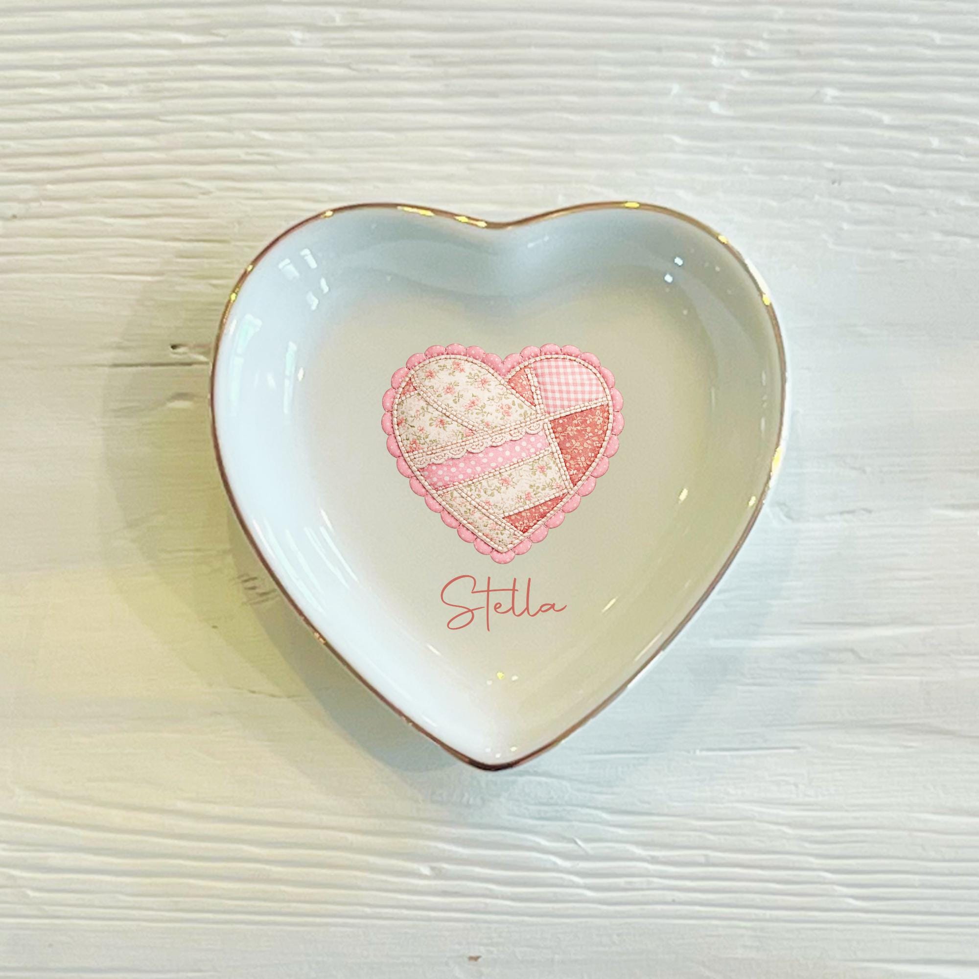 Personalized Patchwork Heart Ring Trinket Dish | Custom Jewelry Tray