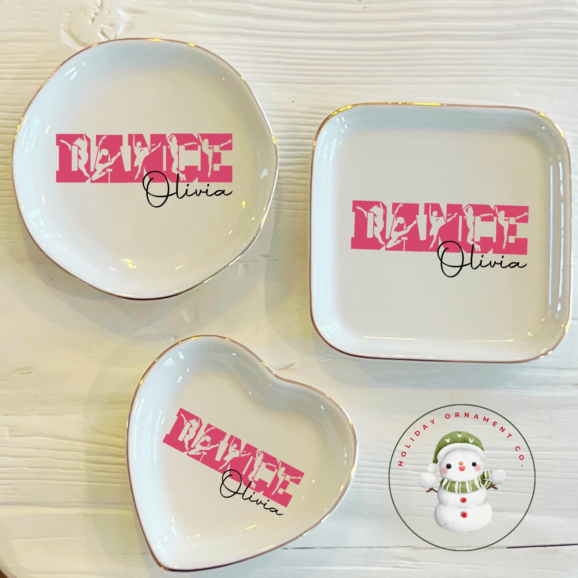 🎄This Custom designed trinket ceramic dish is beautifully crafted and personalized. It will arrive safely wrapped in its own white box. Choose from square, round or heart, each has a gold edge.