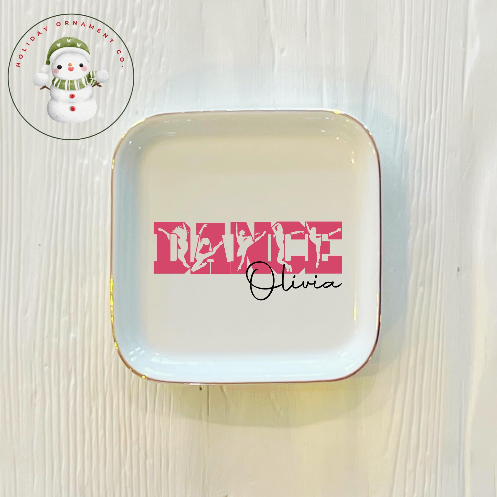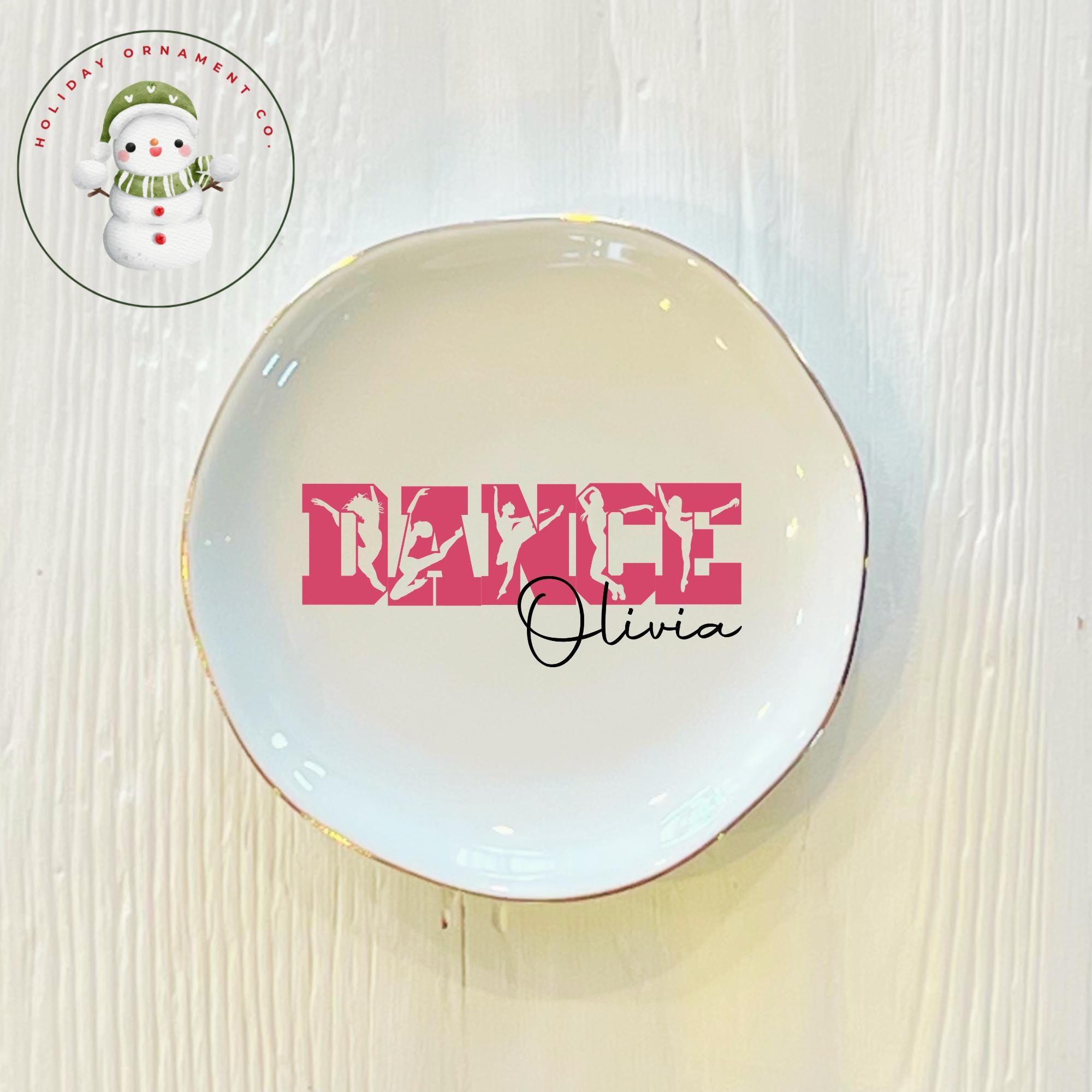 Personalized Dance Ceramic Ring Trinket Dish | Dancer Pink Custom Jewelry Tray