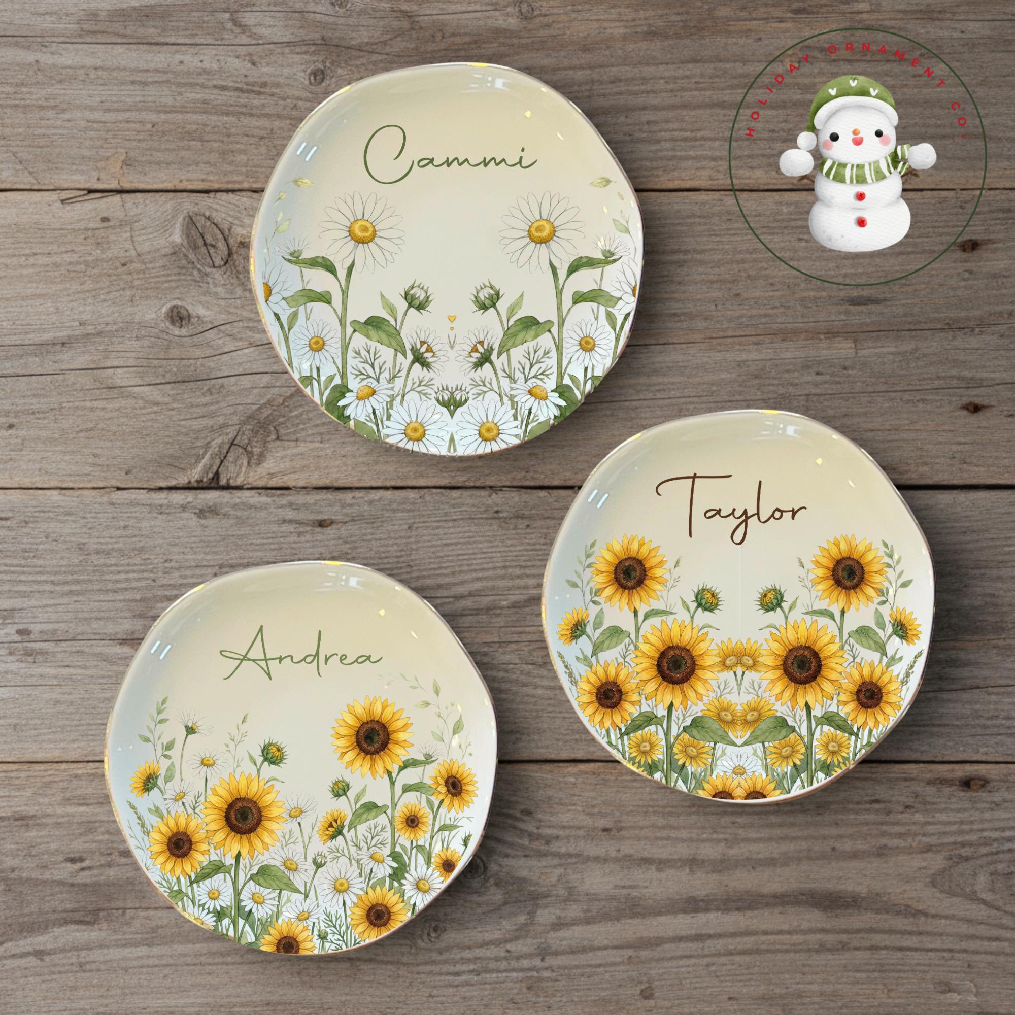 🎄There are Three different designs available in this listing, the daisy and sunflower together, daisies alone, and sunflowers alone. Please choose from the drop down menu which design you would like and add the name in the personalization.