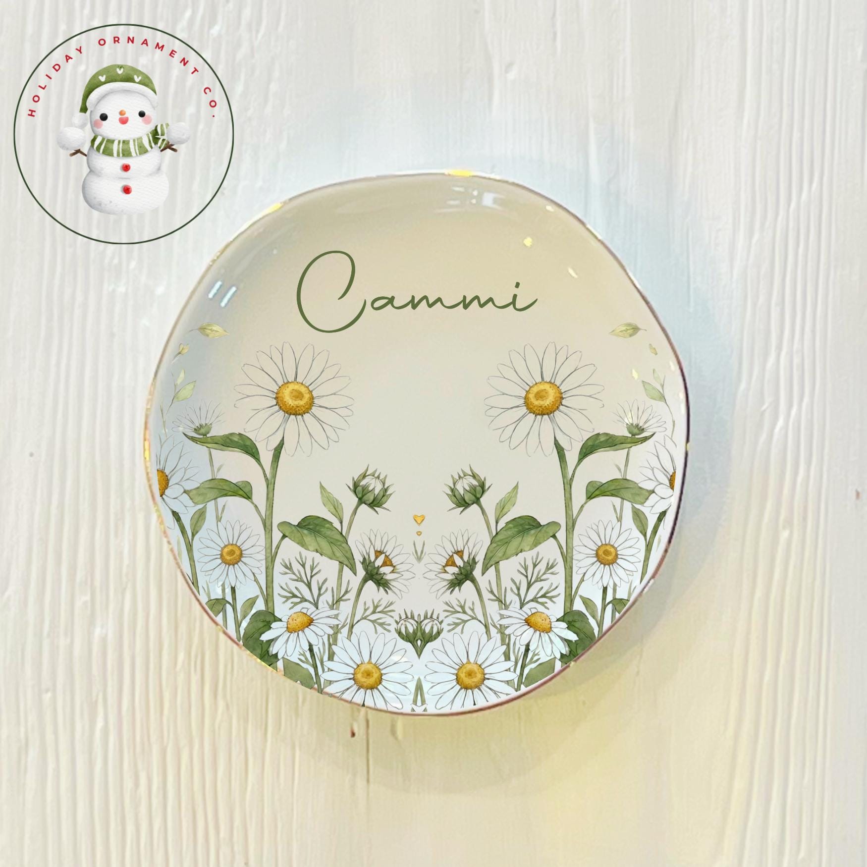 🎄This Custom designed trinket ceramic dish is beautifully crafted and personalized. It will arrive safely wrapped in its own white box. This gorgeous round ring dishes have a gold edge for that special touch. Celebrate your friends and family with these pretty dishes!