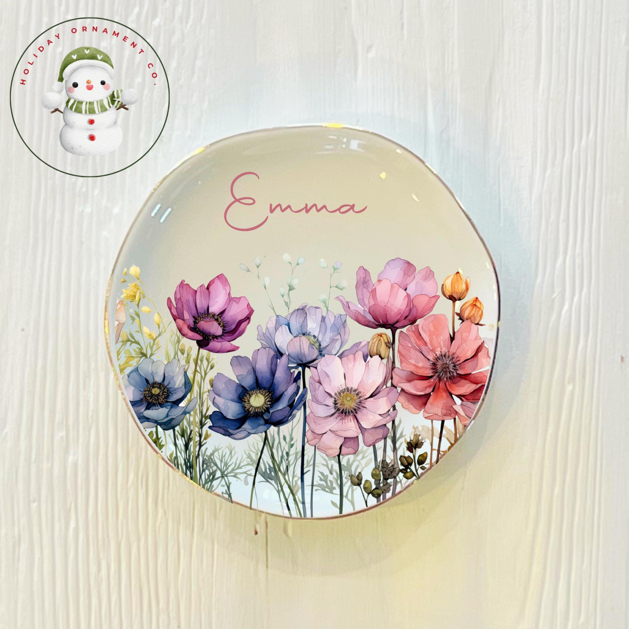 🎄This Custom designed trinket ceramic dish is beautifully crafted and personalized. It will arrive safely wrapped in its own white box. This gorgeous round ring dishes have a gold edge for that special touch. Celebrate the recipients birth month or favorite flower!