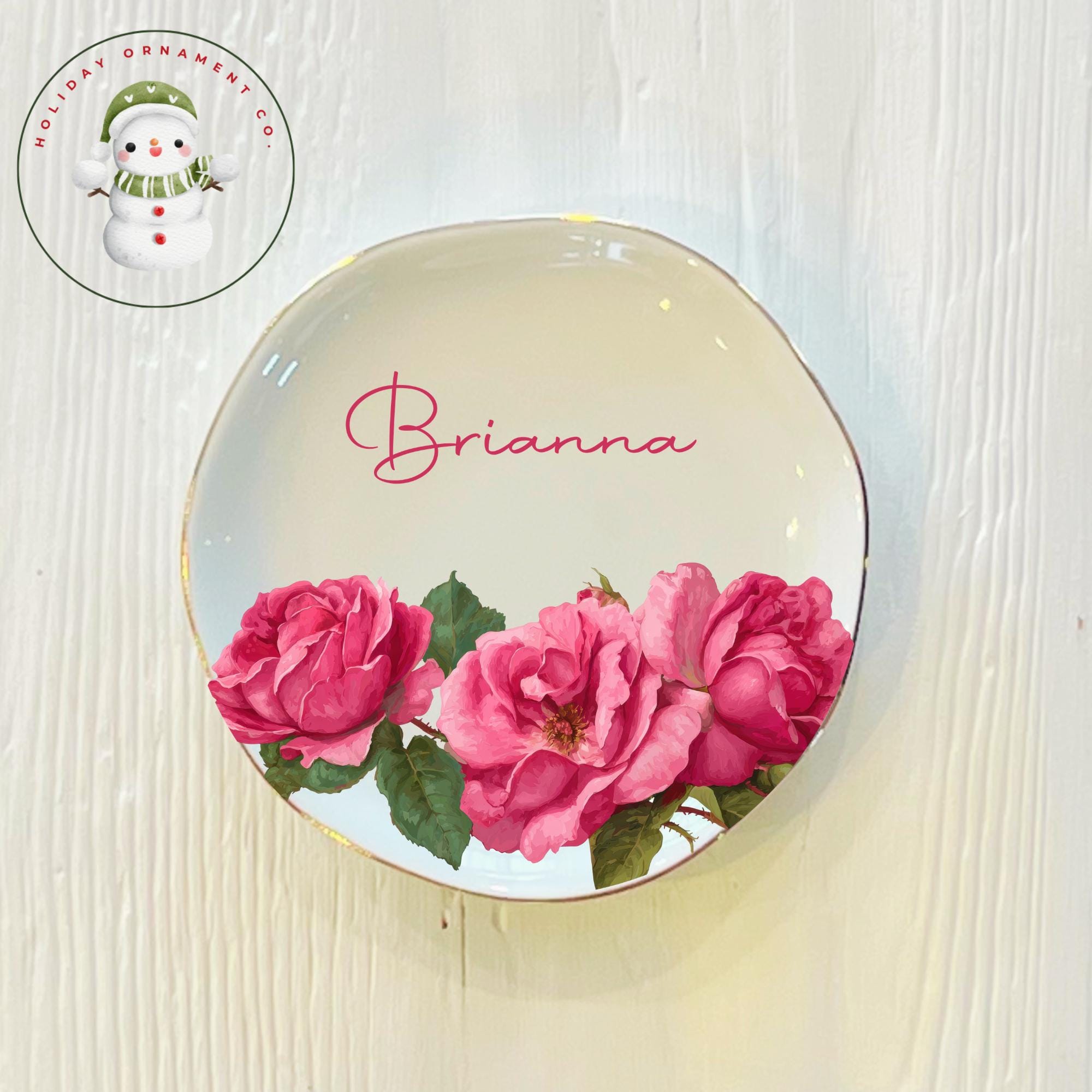 🎄This Custom designed trinket ceramic dish is beautifully crafted and personalized. It will arrive safely wrapped in its own white box. This gorgeous round ring dishes have a gold edge for that special touch. Celebrate the recipients birth month or favorite flower!