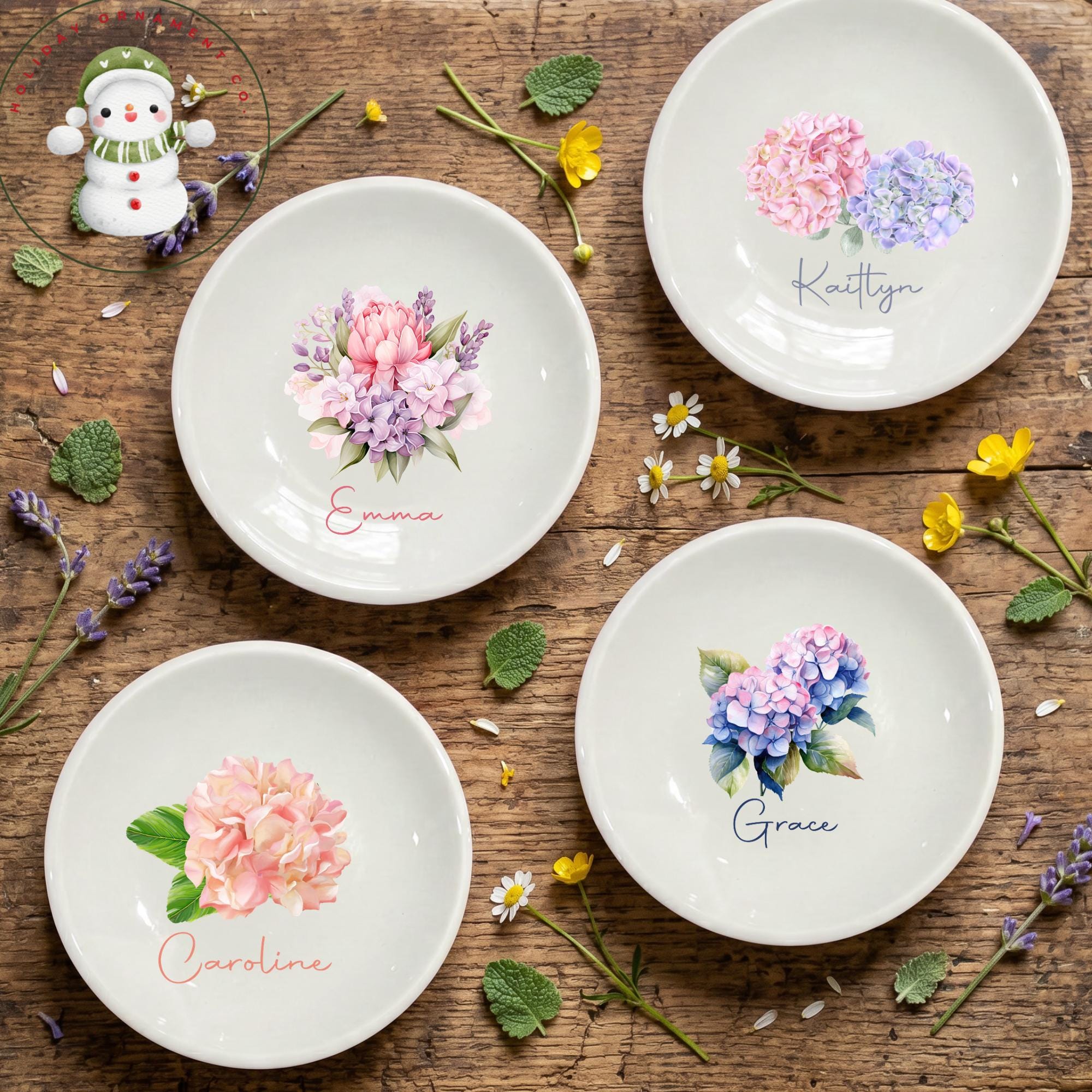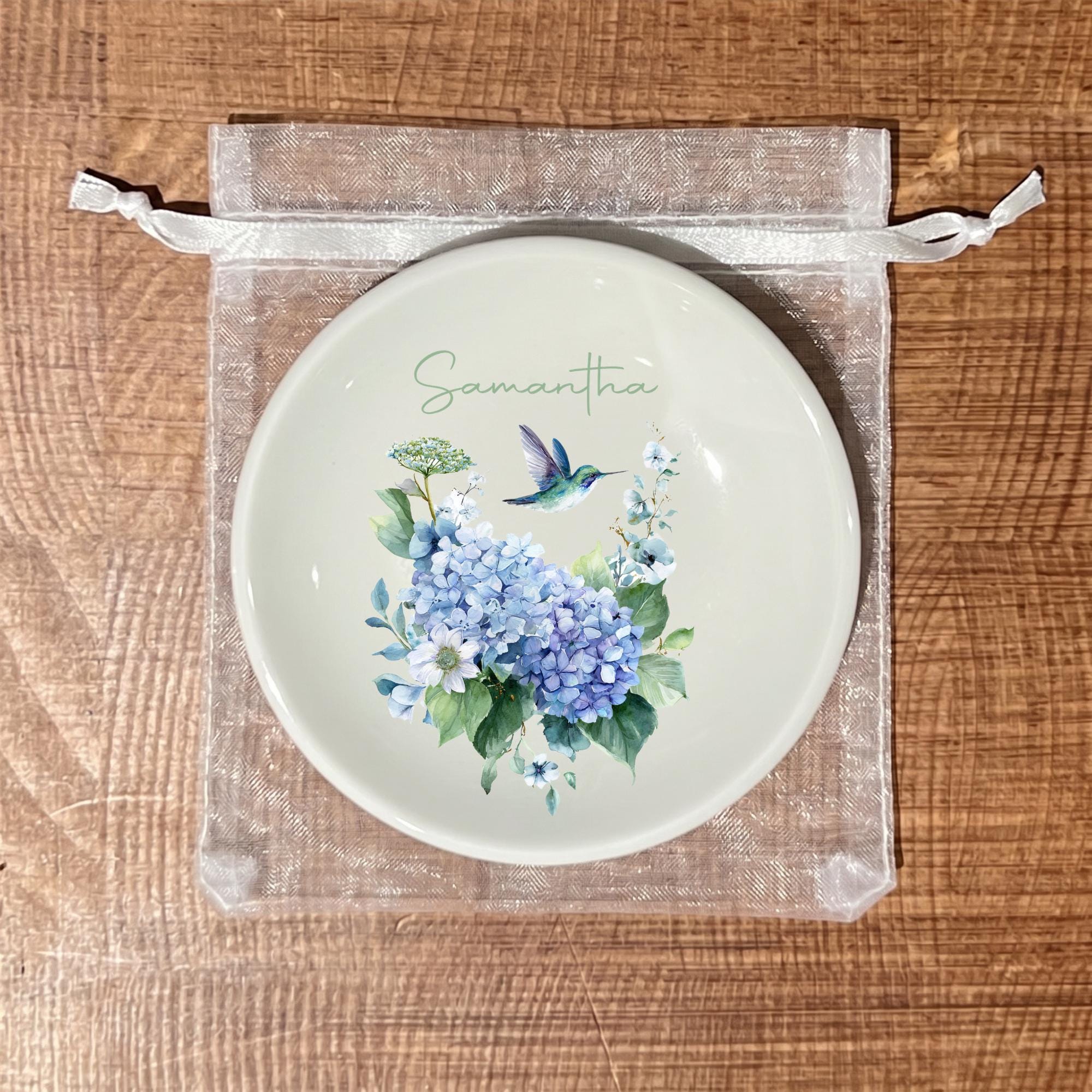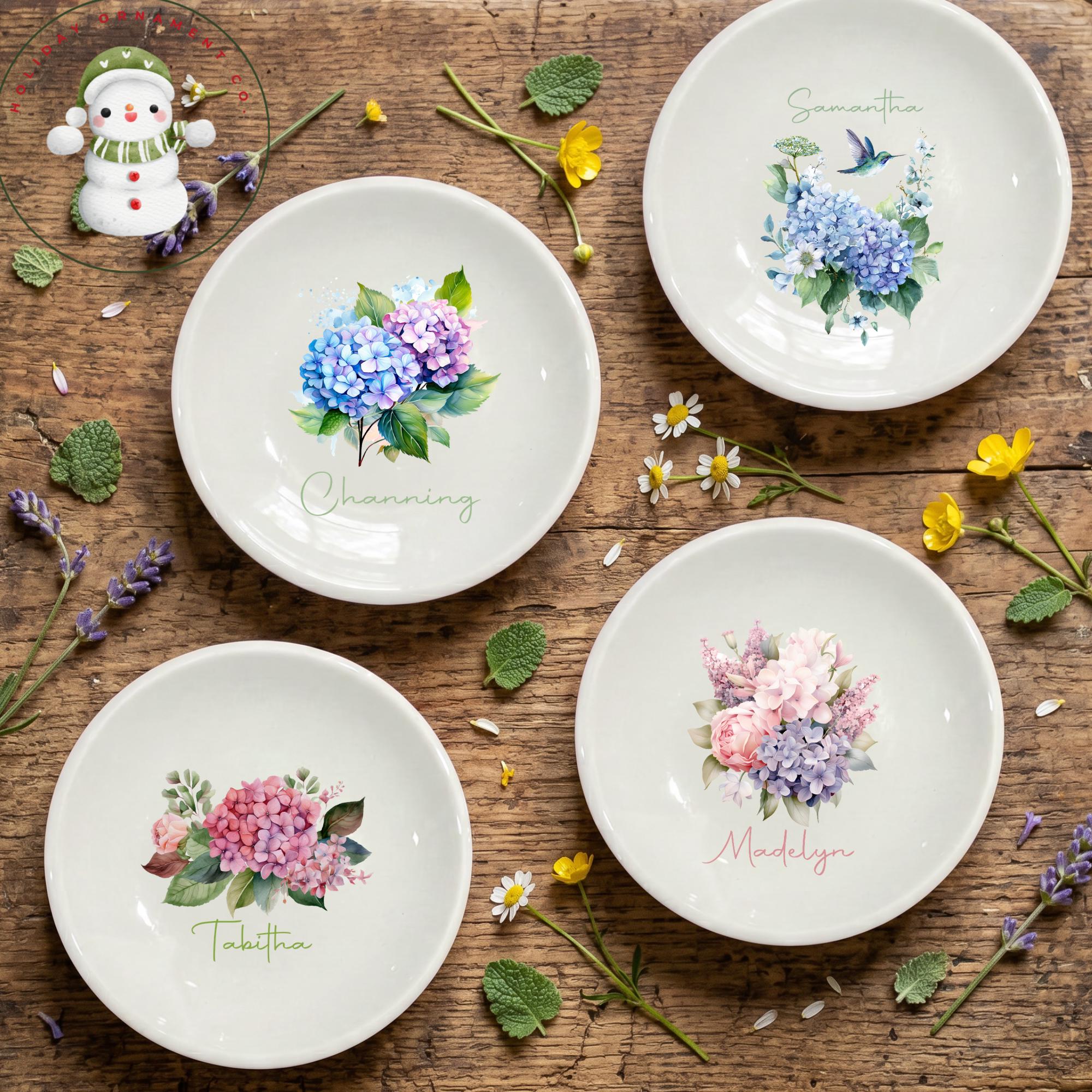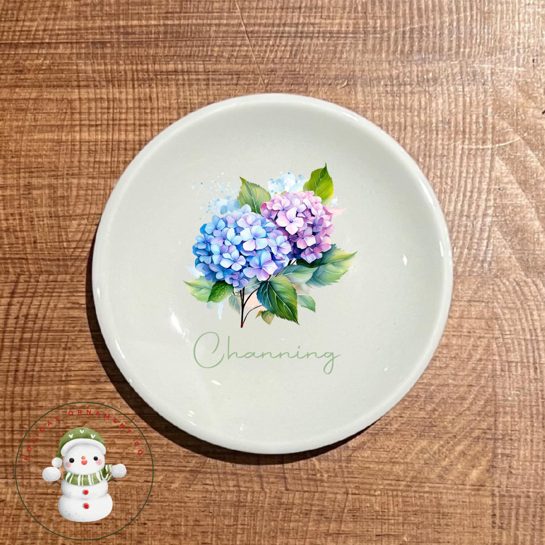 🎄This Custom designed trinket ceramic dish is beautifully crafted and personalized. These gorgeous round ring dishes have the option of 8 different designs, perfect for a shower or wedding favor! They will each come in their own organza draw string bag.