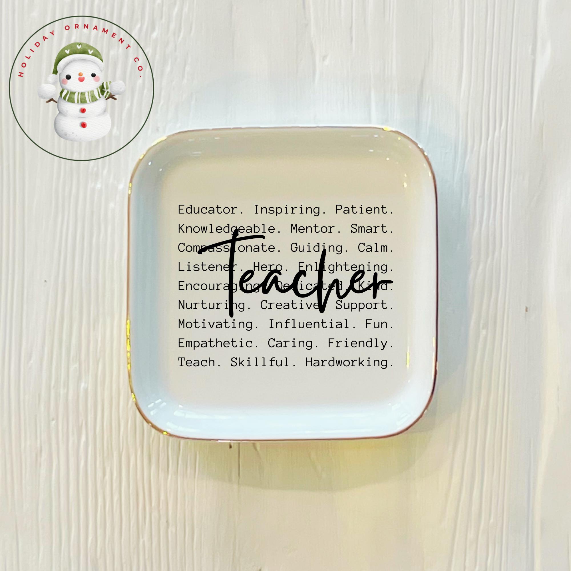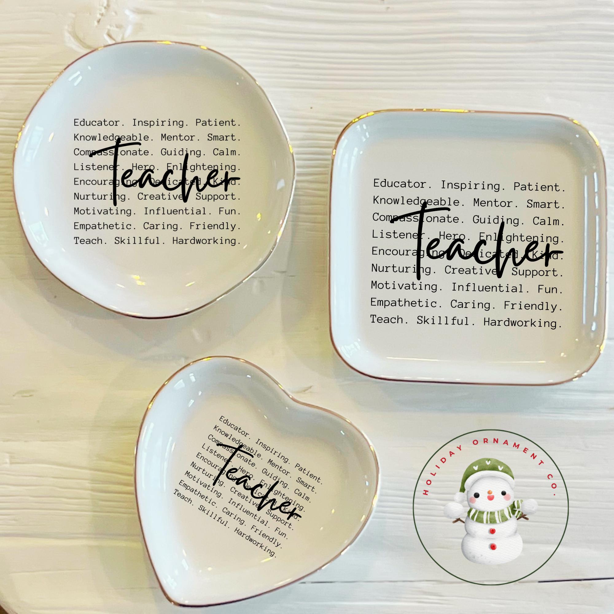 🎄This Custom designed trinket ceramic dish is beautifully crafted and personalized. It will arrive safely wrapped in its own white box. Choose from square, round or heart, each has a gold edge.